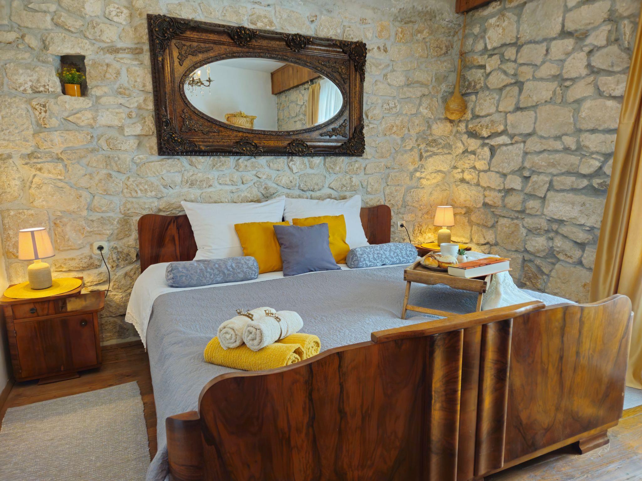 House "Sonja". In the hamlet Podašpilje 7 km from the centre of Omiš, 38 km from the centre of Makarska, 8 km from the sea. Private: property with trees. Terrace, garden furniture, barbecue. In the house: internet access, washing machine. Parking at the house. Supermarket 8 km, restaurant 3 km, bus stop 14.1 km, rocky beach 8 km. Please note: airfield 50 km from the property.