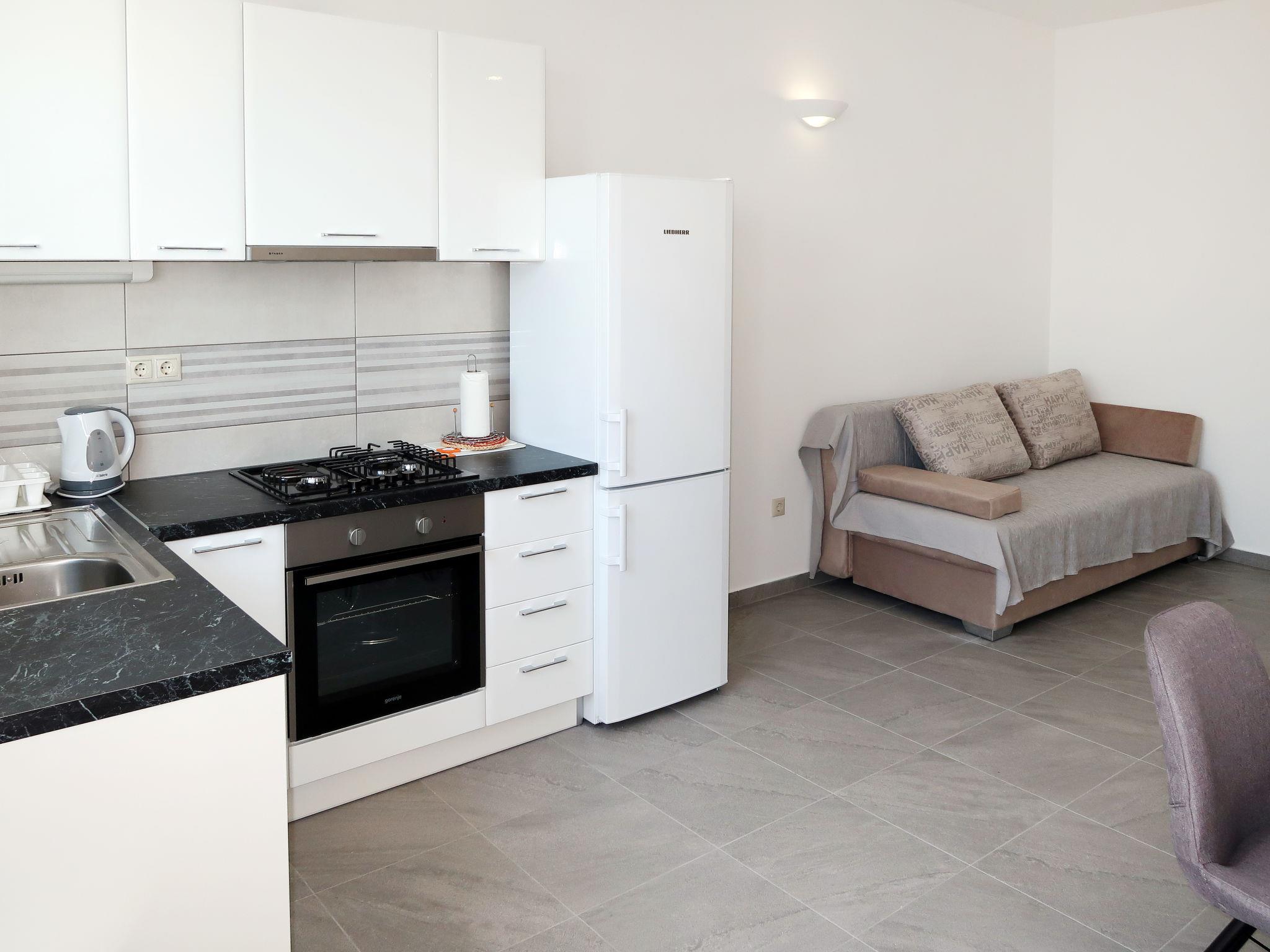 "Lada", 2-room bungalow 45 m2. Living/dining room with 1 double sofabed (150 cm, length 200 cm), satellite TV (flat screen), air conditioning. Exit to the balcony. 1 room with 1 double bed (180 cm, length 200 cm), air conditioning. Open kitchen (1 hot plate, oven, dishwasher, 3 gas rings, toaster, kettle, freezer, electric coffee machine). Shower/WC. No heating option. Balcony. Balcony furniture. Marvellous view of the sea. Facilities: Internet (WiFi, free).