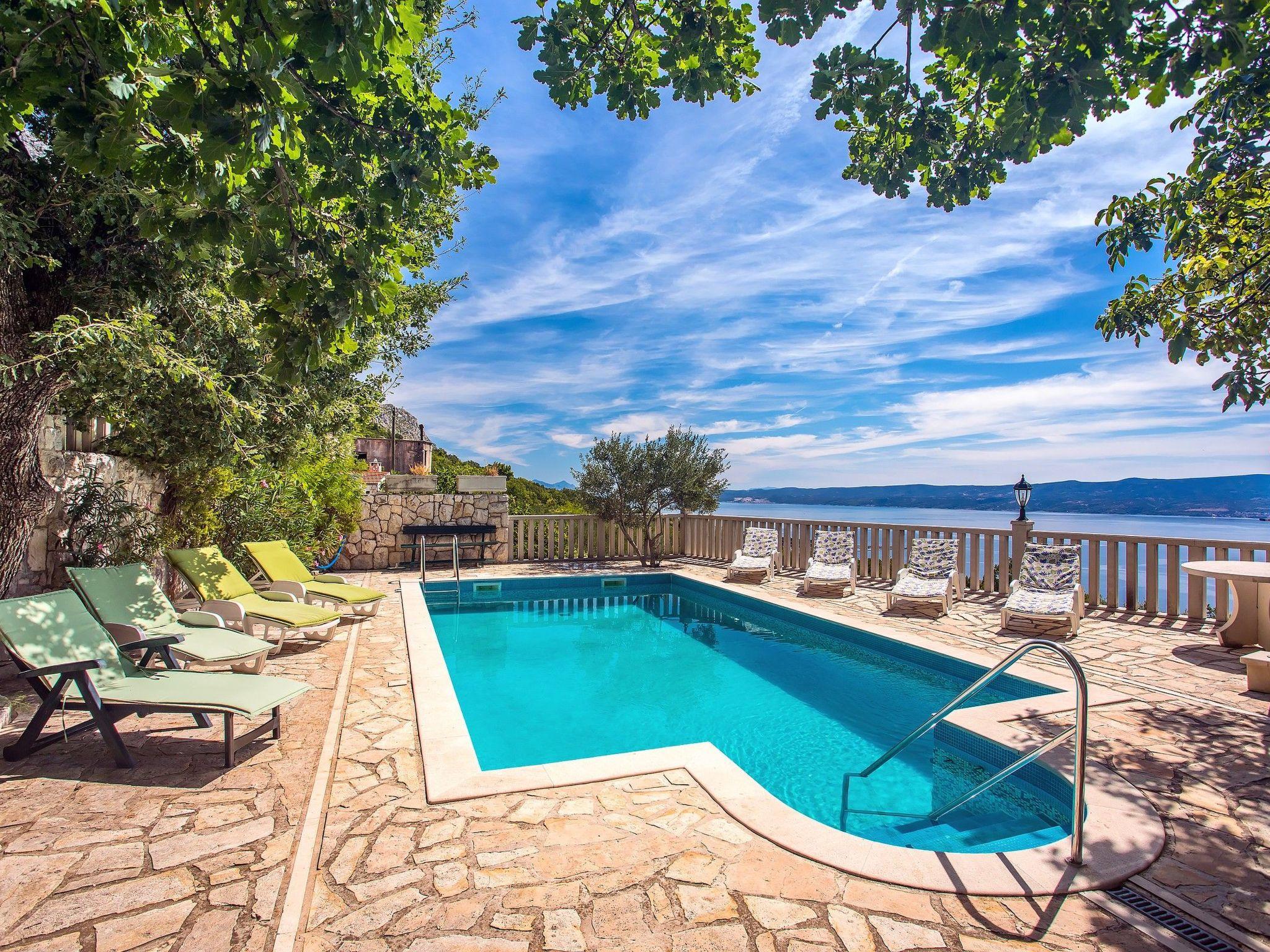 Villa Jolie, villa for 8 persons with private pool and breathtaking viewsBeautiful stone house on three floors, with two separate flats for up to 8 persons. Absolutely unique 150 years old piece of Croatian history will provide you with all modern amenities like air condition units, fully equipped kitchens and many more, but this house will offer something that money can not buy: truly amazing position with spectacular views and maximum privacy for your perfect stress free holidays. Yet, house is located very near beautiful beaches and cities like Omis and Split.You can expect cozy, authentic dalmatian stone house with all modern amenities for up to 8 persons situated on the top of the hill, in the few centuries old village. If you are in search for stress free holidays for your family in the property with spectacular views, great privacy and amazing pool area look no more, you are on the right place. Still, you are just 3 kilometers away from the sea and cities Omis and Split are just 20 minutes away.