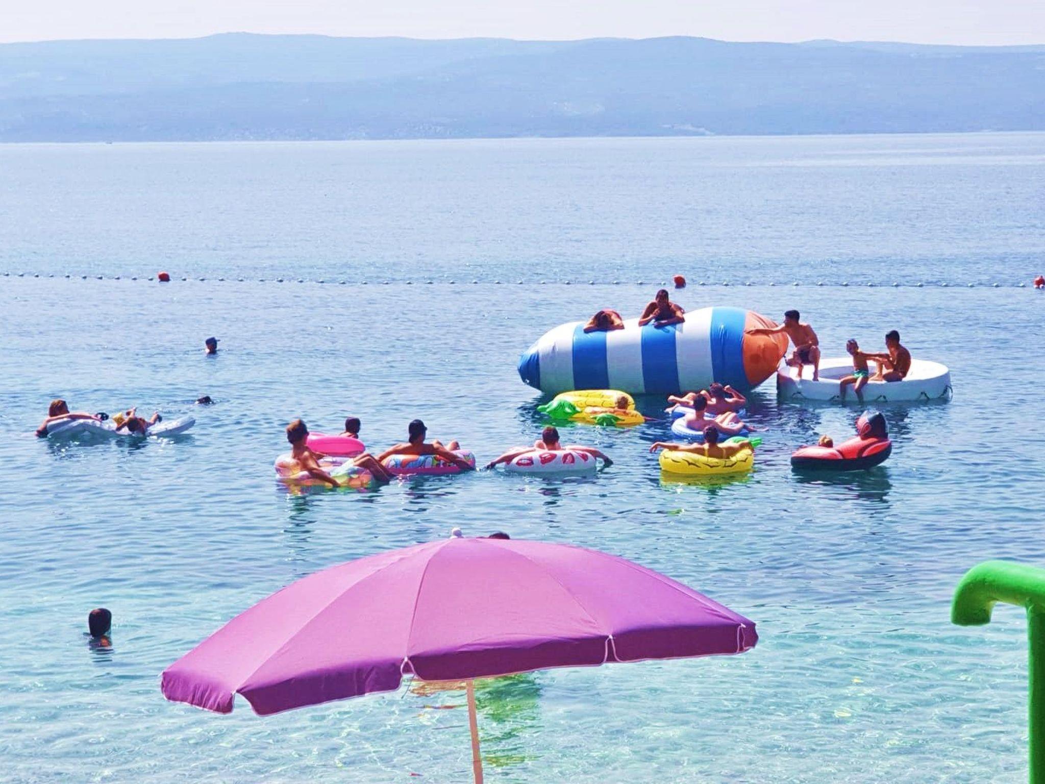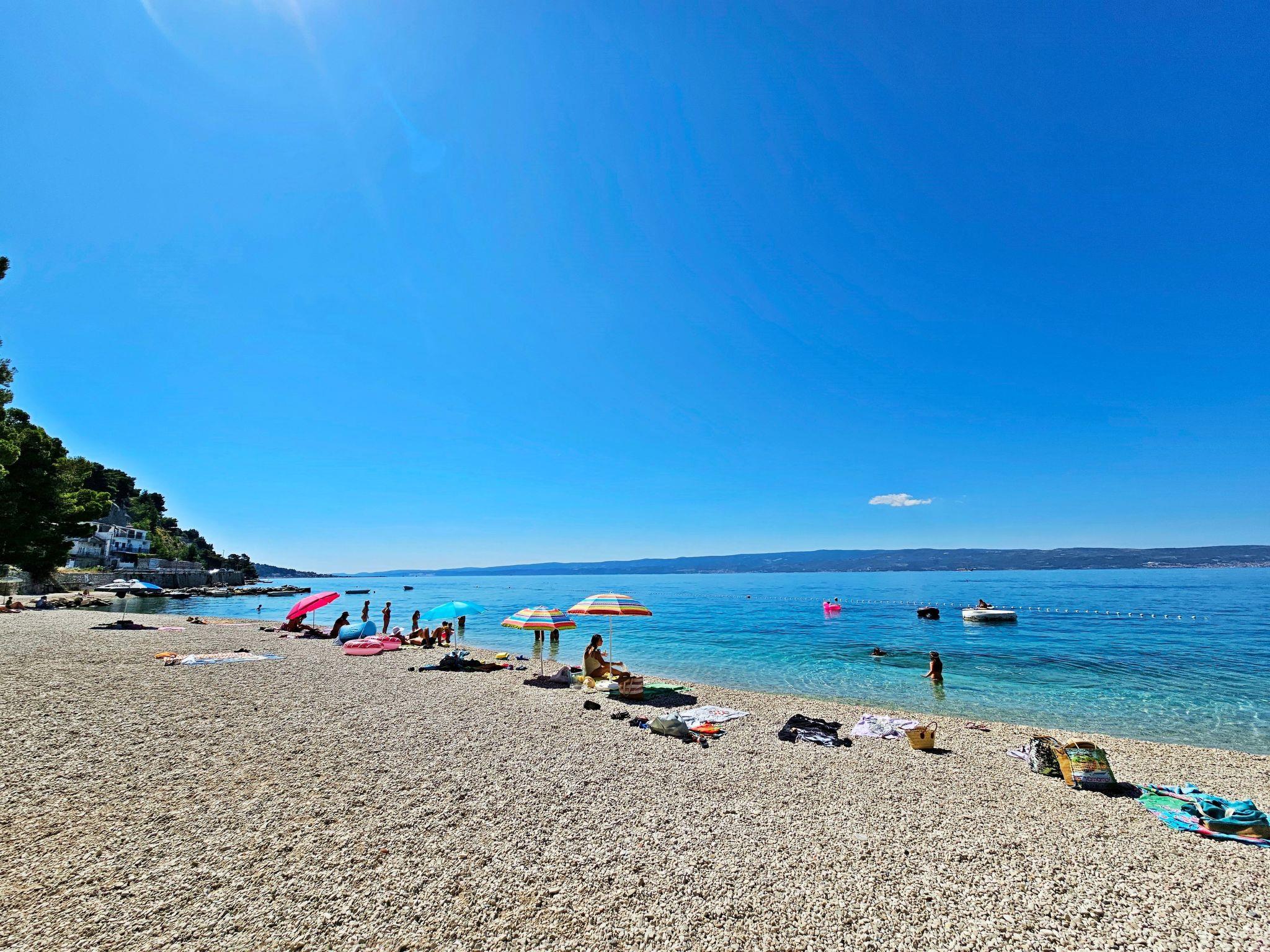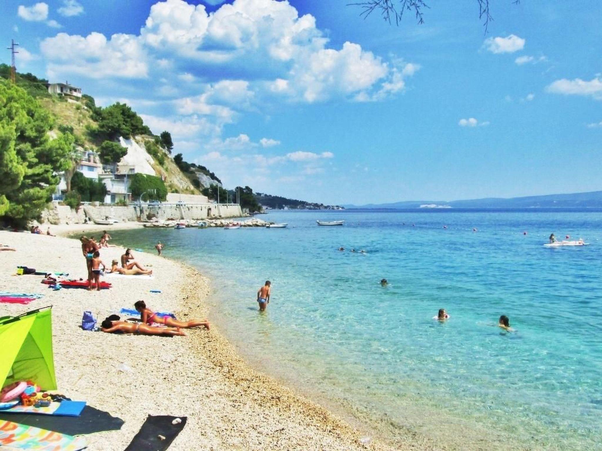 The pebbled beach is just 30 metres away and so you can spend the day swimming, fishing and enjoying other water sports activities with the family and children. You can find many restaurants, cafés and bars, as well as a children’s playground, in the immediate vicinity. Various public events are held in summer, such as music festivals, the summer of culture and folk dancing. Active holiday-makers can go jogging, climbing on natural cliffs, on diving tours, windsurfing and rafting on the Cetina River. You can visit the ancient Greek ruins near Salona. The airport is about 27 kilometres away. It is 16km to the harbour which offers days trips by boat. Krka National Park is 65km away.