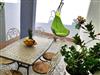The 70m² holiday apartment is on the first floor and can accommodate up to six people. It has two bedrooms, one with a comfortable double bed and one with three single beds. The living room has a sofa bed and the open kitchen in a retro style is fully-equipped with a hob, oven, fridge, freezer compartment and kettle. A dining table with chairs, a flatscreen TV, a safe, wireless Internet access and air conditioning are also provided. The bathroom has a shower and a washing machine. There is a separate toilet.