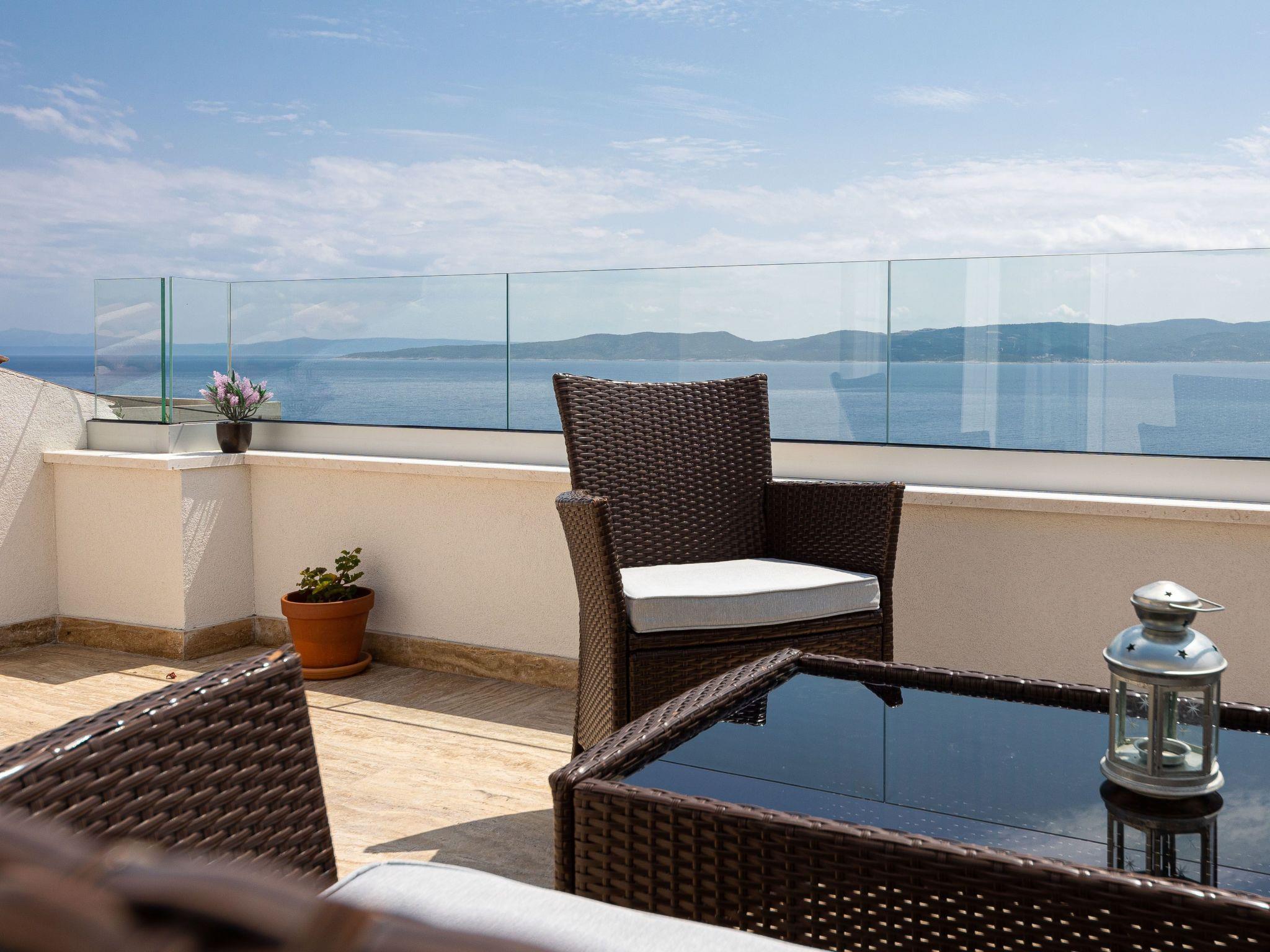 Two of the bedrooms, located on the first floor, open up to a large balcony, offering a panoramic view of the sea, promising serene mornings and tranquil evenings.