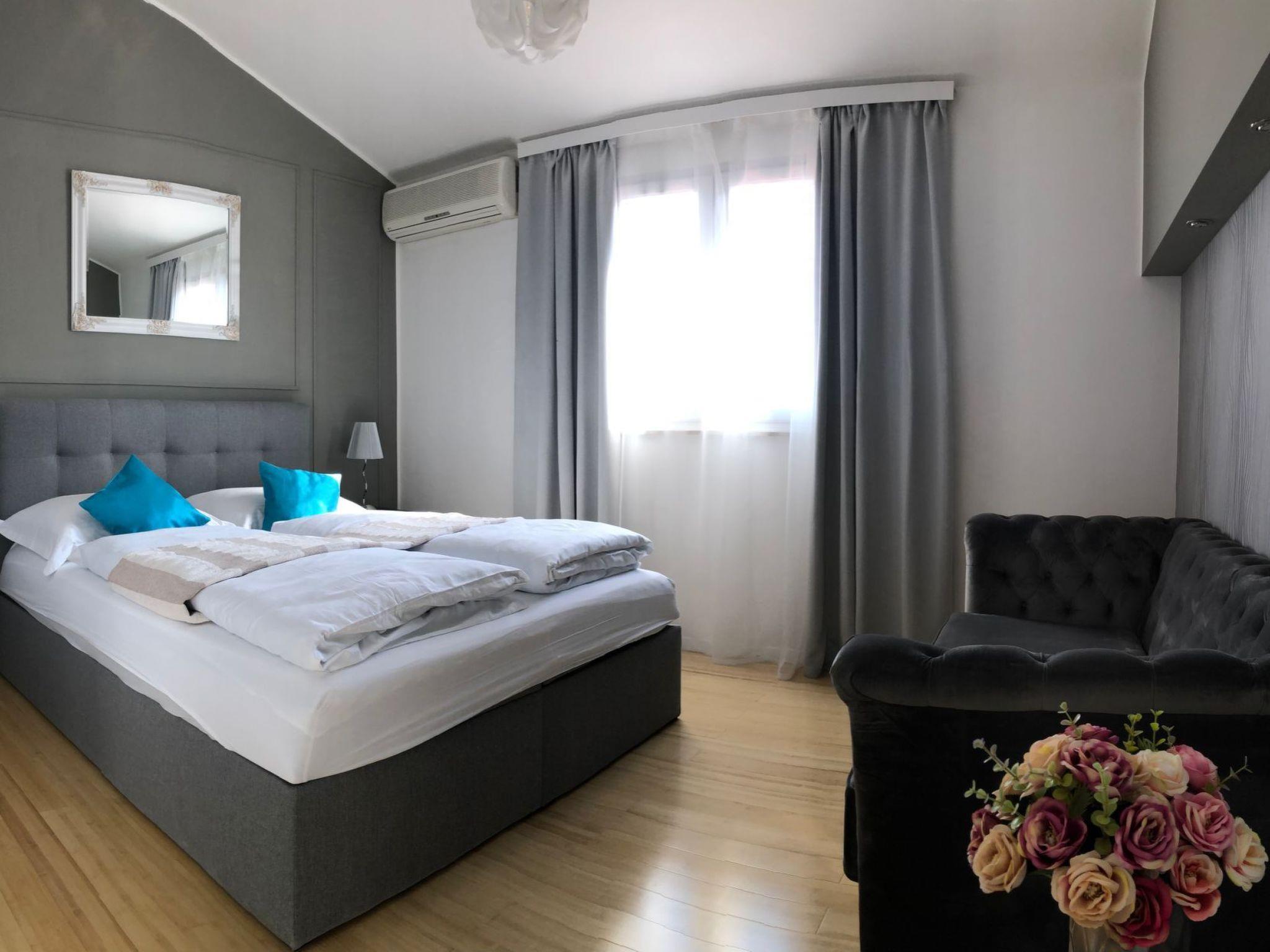 The house is on a plot of 600m2. We are on the sea side and the house is 250m2 big. On the ground floor is the kitchen with dining room and living room (100m2). On the 1st floor we have 3 rooms with bathroom, balcony with sea view. On the 2nd floor there are also 3 rooms with sea view. On the ground floor there is a laundry room with washing machine, iron and ironing board. You can go directly from the living room or from the kitchen to the garden or to the pool. We also have an outdoor stone barbecue. Car parking is on the plot right next to the house. Fully equipped kitchen (toaster, microwave, coffee machine, kettle...). Living room equipped with LCD satellite TV and WI-Fi. We rent a villa/holiday house for 12+2 persons only 20m. from the well-kept sandy beaches in Duce. The house with its garden and pool offers an oasis of peace and relaxation for a family or a group of friends who want to spend days together.