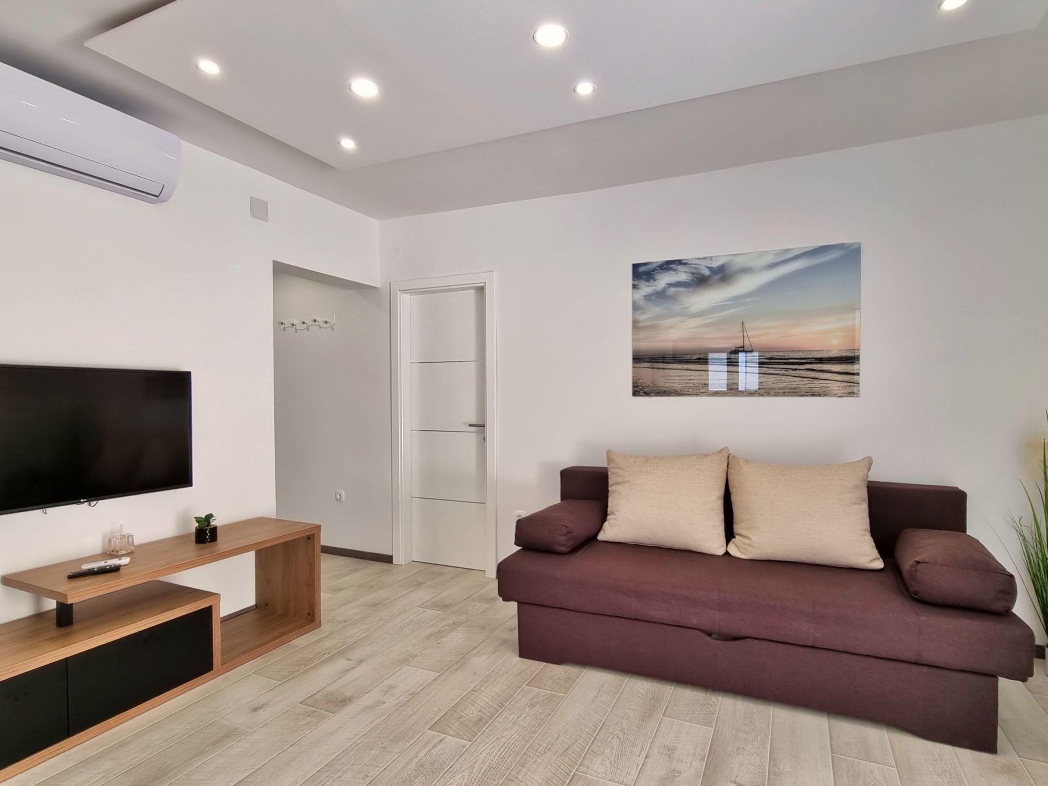 The apartment is located in Duce, only 200 m away from the nearest sandy beach and approximately 2 km away from the center of Omis city.