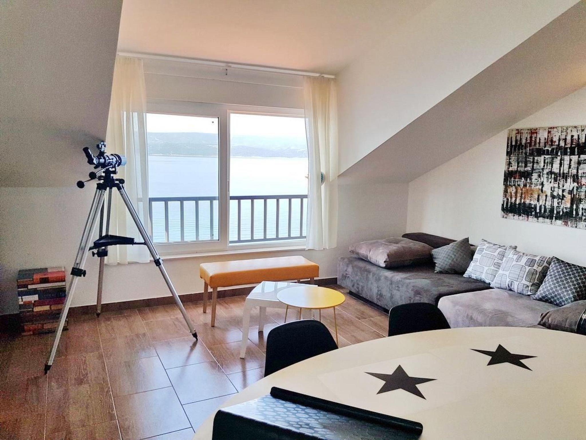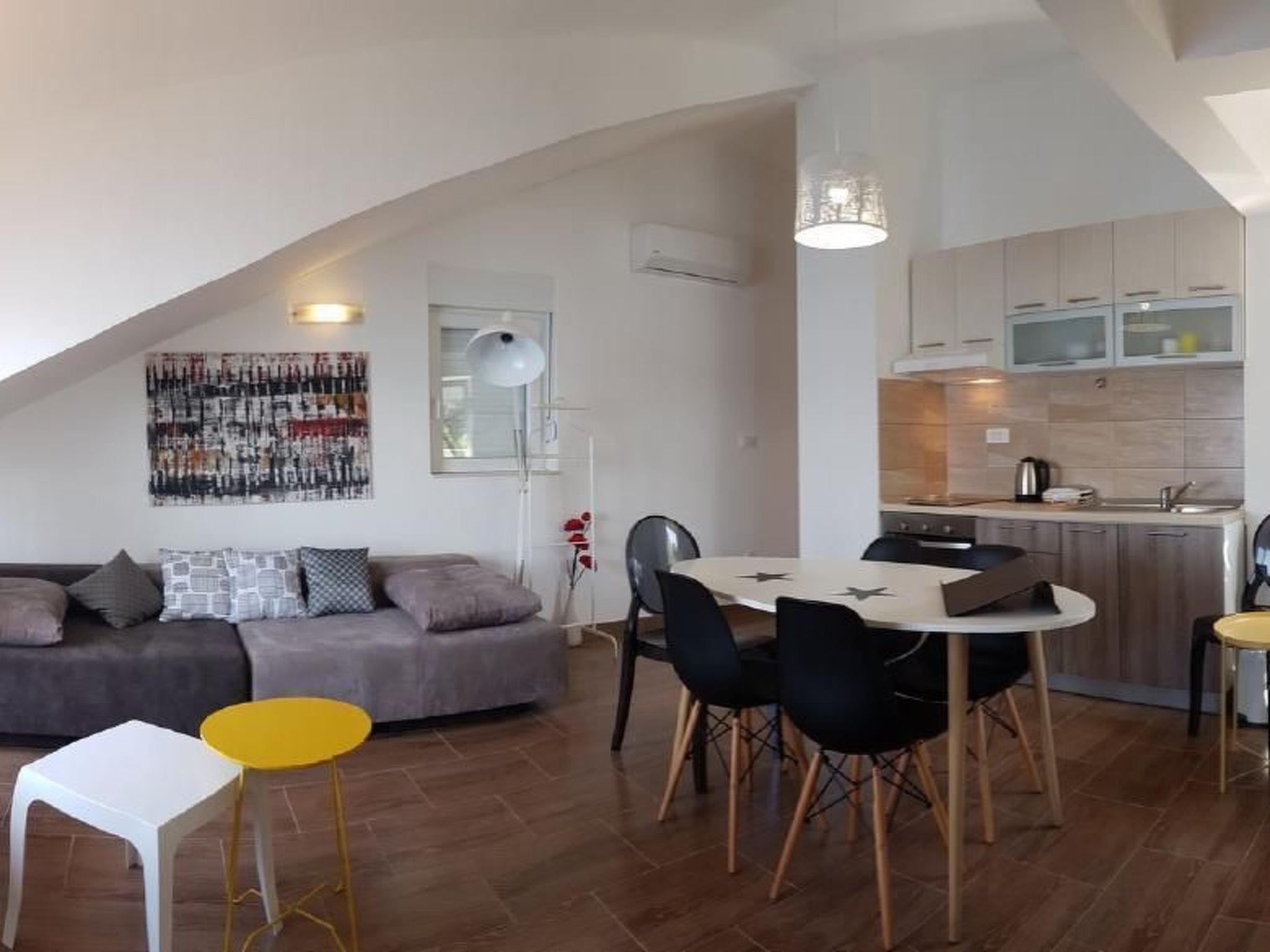 The holiday home can only be rented as 1 'ne unit complete 2 flats together. The beach can be reached via approx. 100 steps. It is gravel - fine gravel. In the neighbourhood there are various possibilities to be active in the water like: Jet - and water ski, banana, boat hire and much more. It is well maintained, new, modern and well equipped, with fully fitted kitchens. It is located below the coastal road with a view of the sea and a wonderful view of the island of Brac opposite. The beach can be reached directly by about 100 steps. Large terraces and balconies.