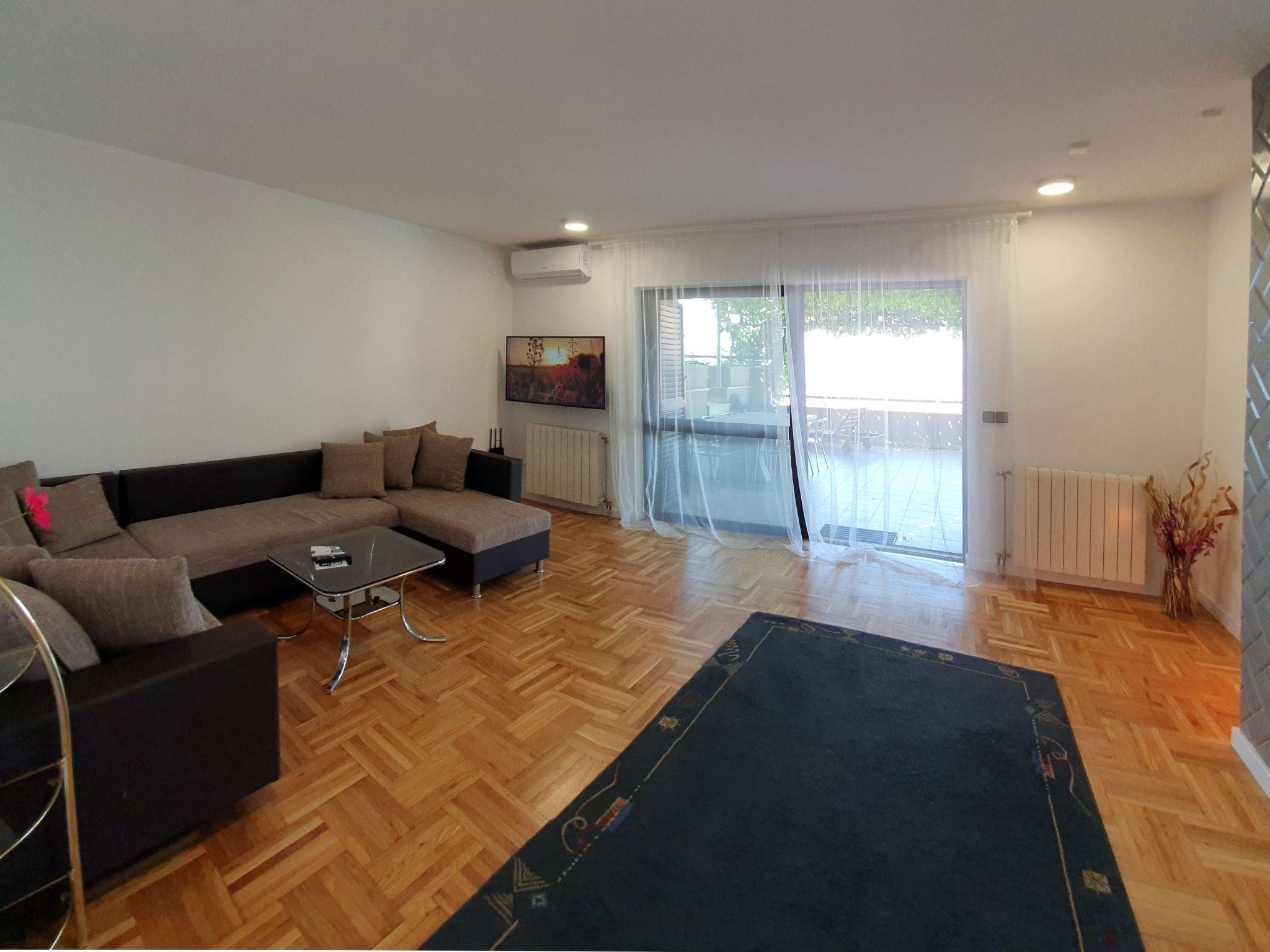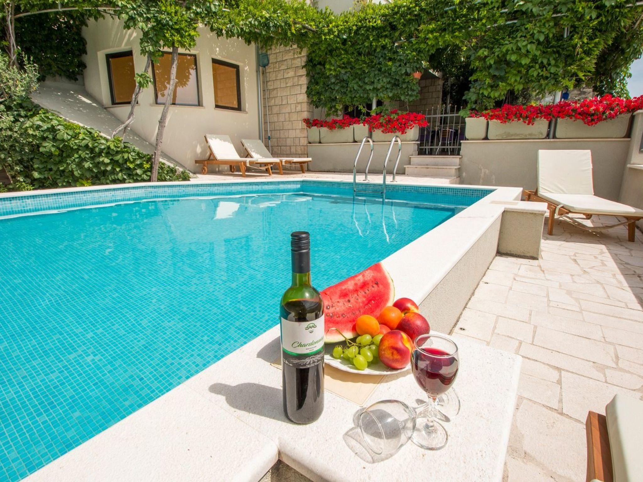 Holiday house Omiš is made up of three parts with a joint entrance and separate entrances to each of the three apartments. The house is located in leafy surrounds and has two large terraces with natural shade and a swimming pool. Each of the apartments has a separate bathroom, kitchen, dining room and living room. Two of the apartments are two bedroom apartments. Each of them has two double bedrooms with an extra bed in the living room. The biggest apartment has four bedrooms, six beds and an extra bed in the living room. On the terrace there is a large stone table which can be used for common dining. The two naturally shaded terraces provide full comfort for spending the day in the open. On the third terrace you can find a private pool which can only be used by the guests of the house.