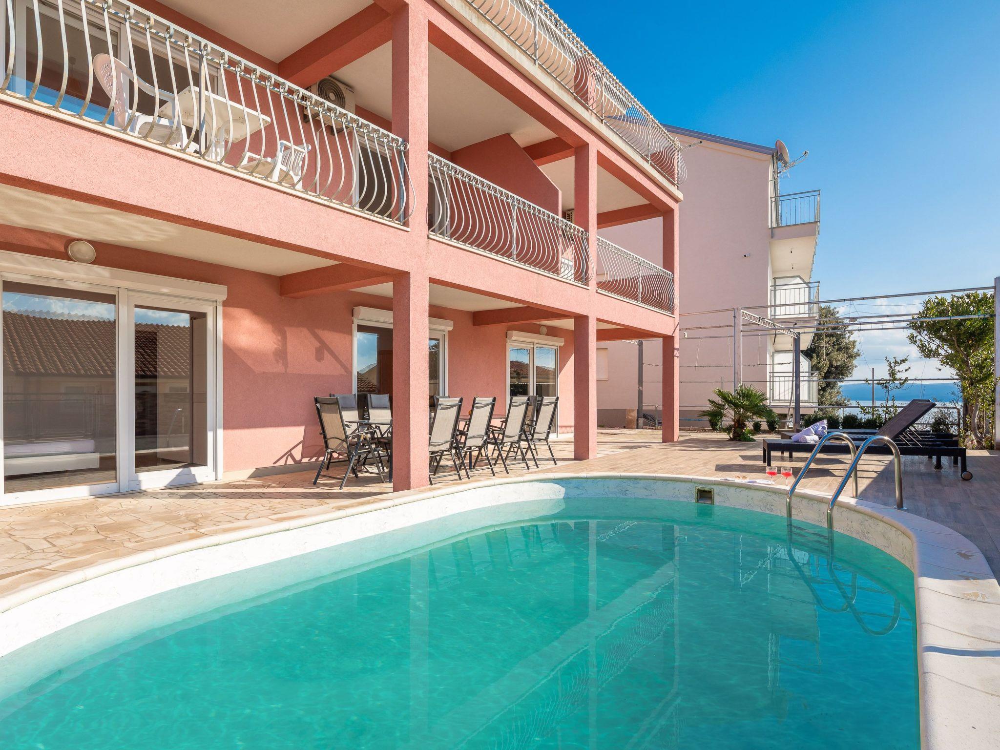 Set in Stanici in the Split-Dalmatia region, this Villa - Solaris Holiday Home offers accommodation with sea view for 12 persons with 6 bedrooms, 4 bathrooms, free parking and WiFi, air conditioning, large kitchen with dining area and living room, access to outdoor swimming pool, BBQ, and sunbathing area.