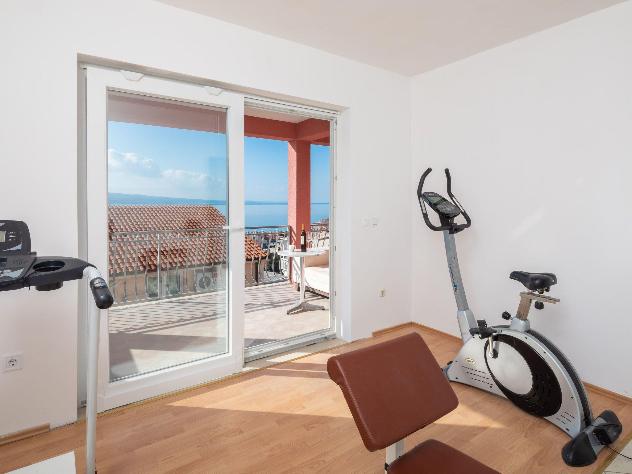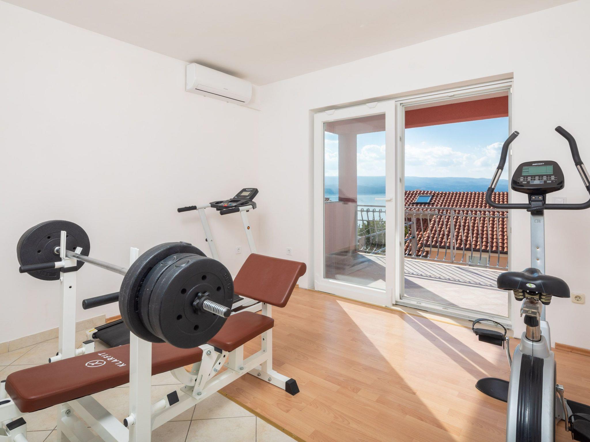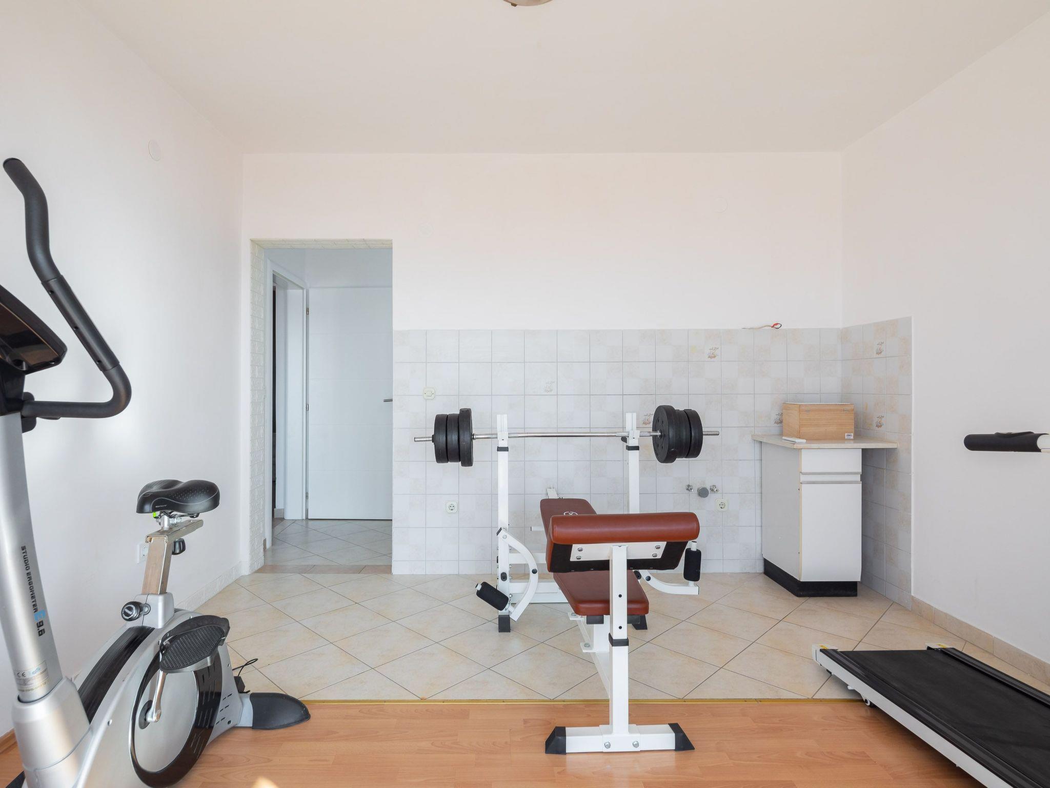 The house is connected with external stairs. First floor of the house consists of two bedrooms. One bedroom is with double bed, bathroom with shower and air conditioning. There is a mini gym attached to this bedroom. The room has a sea view balcony.
