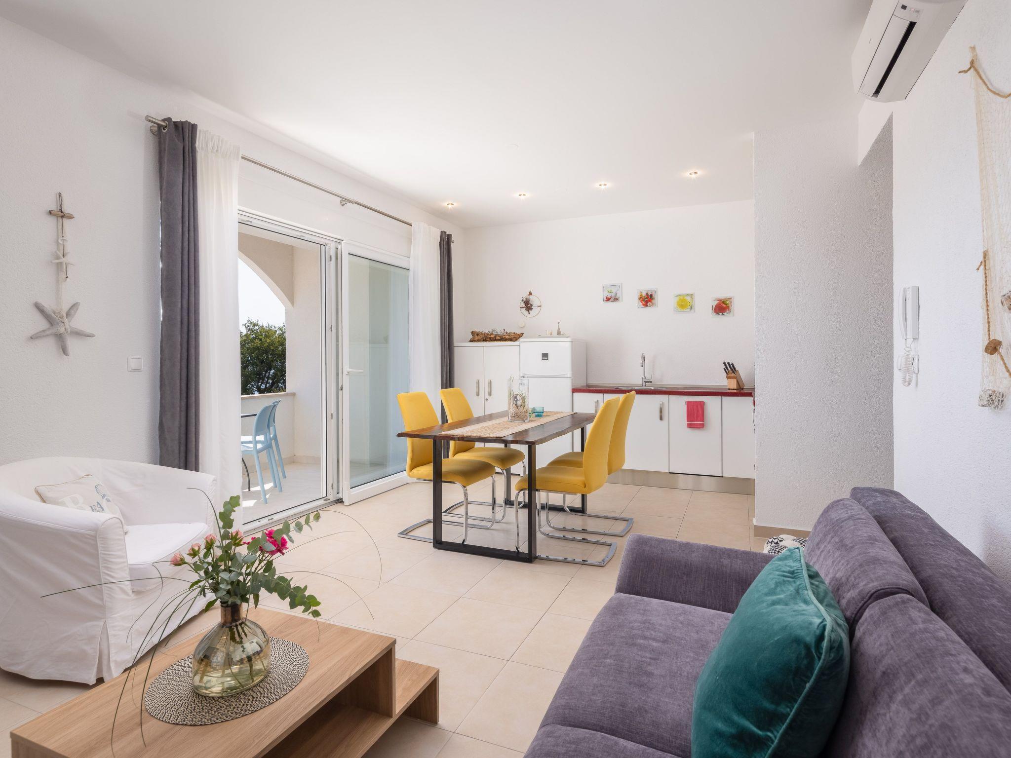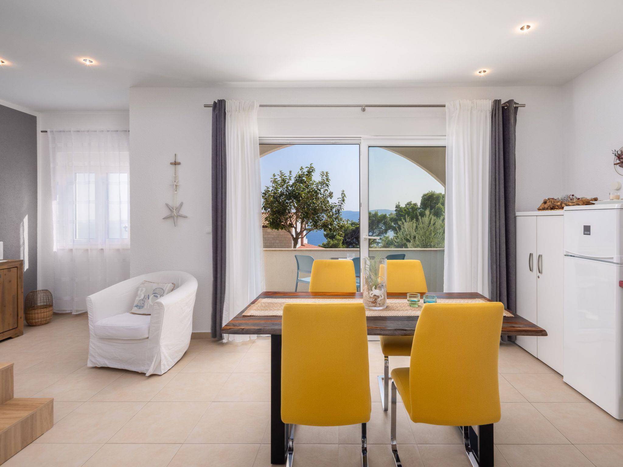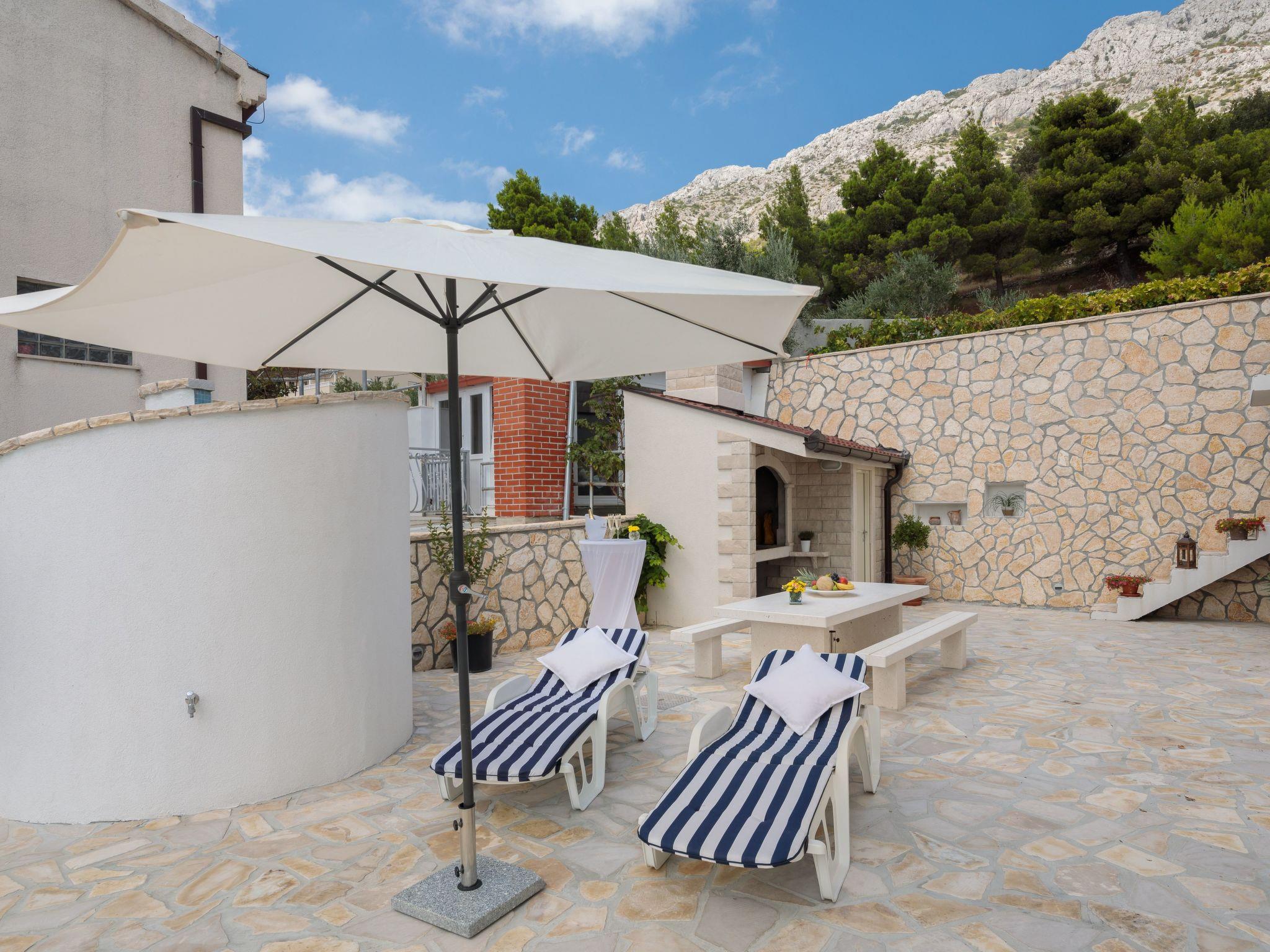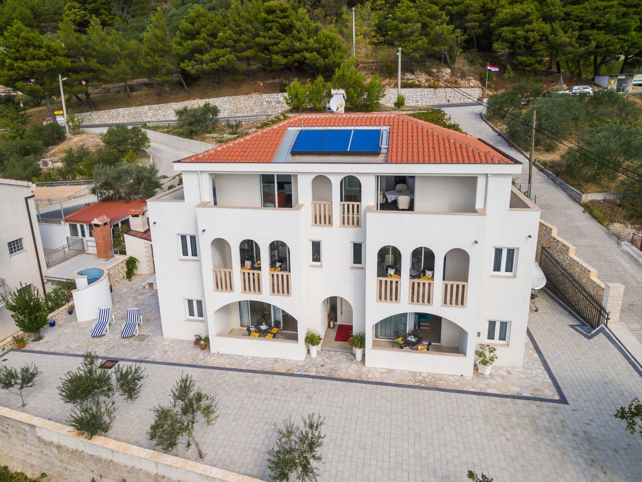 Enjoy your holiday in this exclusive Mediterranean-style apartment building. This gem offers a breathtaking and unobstructed panoramic view of the sea, the nearby Makarska Riviera and the island of Brac in the background. Your holiday home consists of four separate residential units with separate entrances.