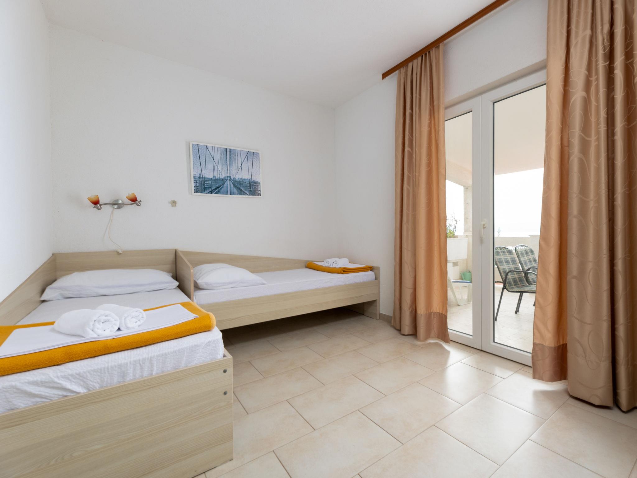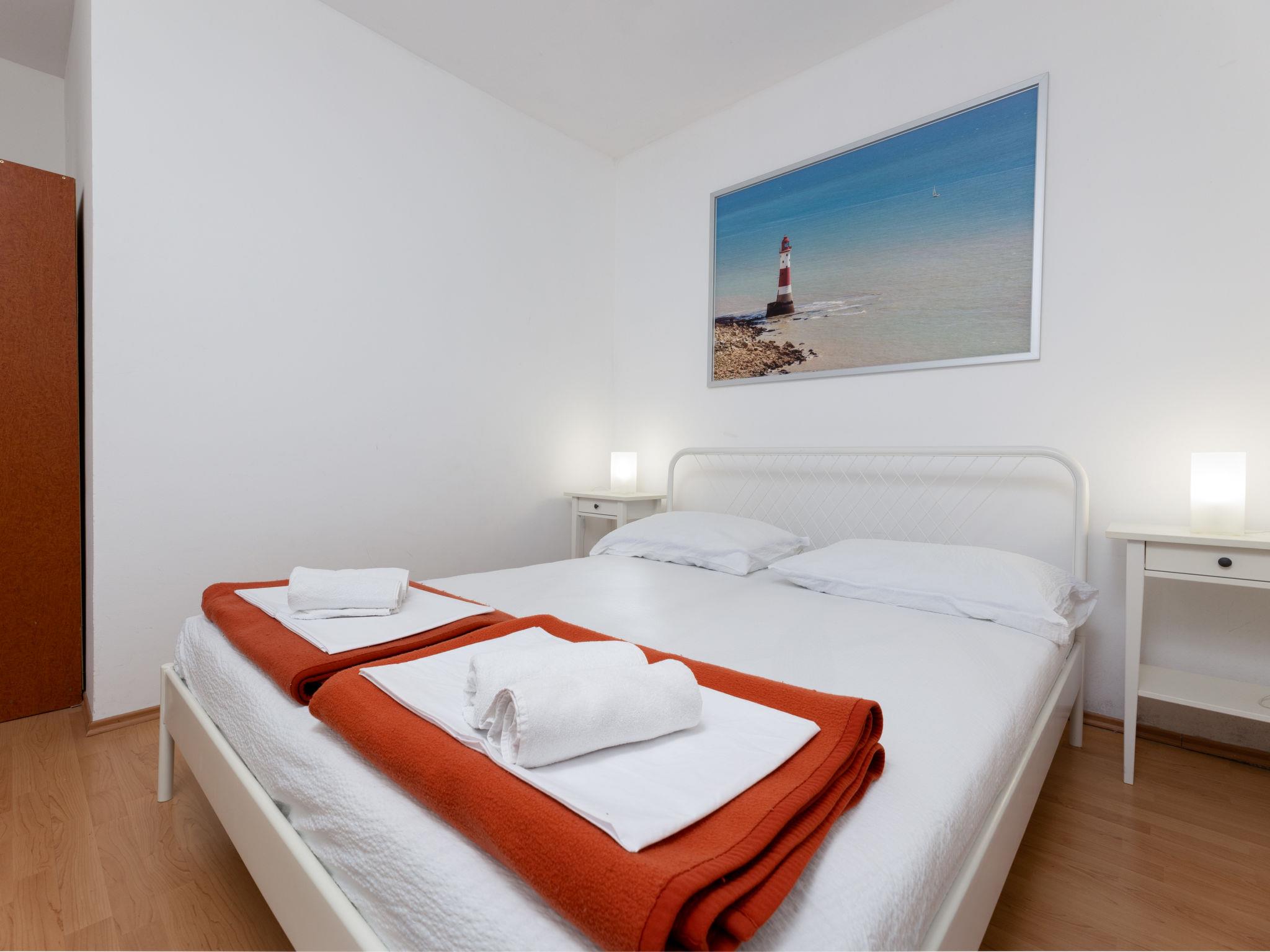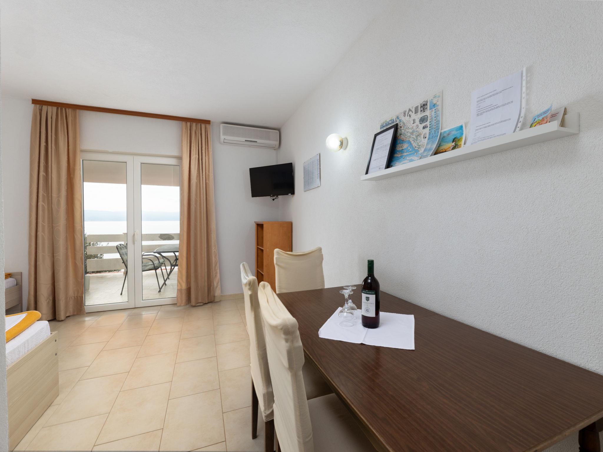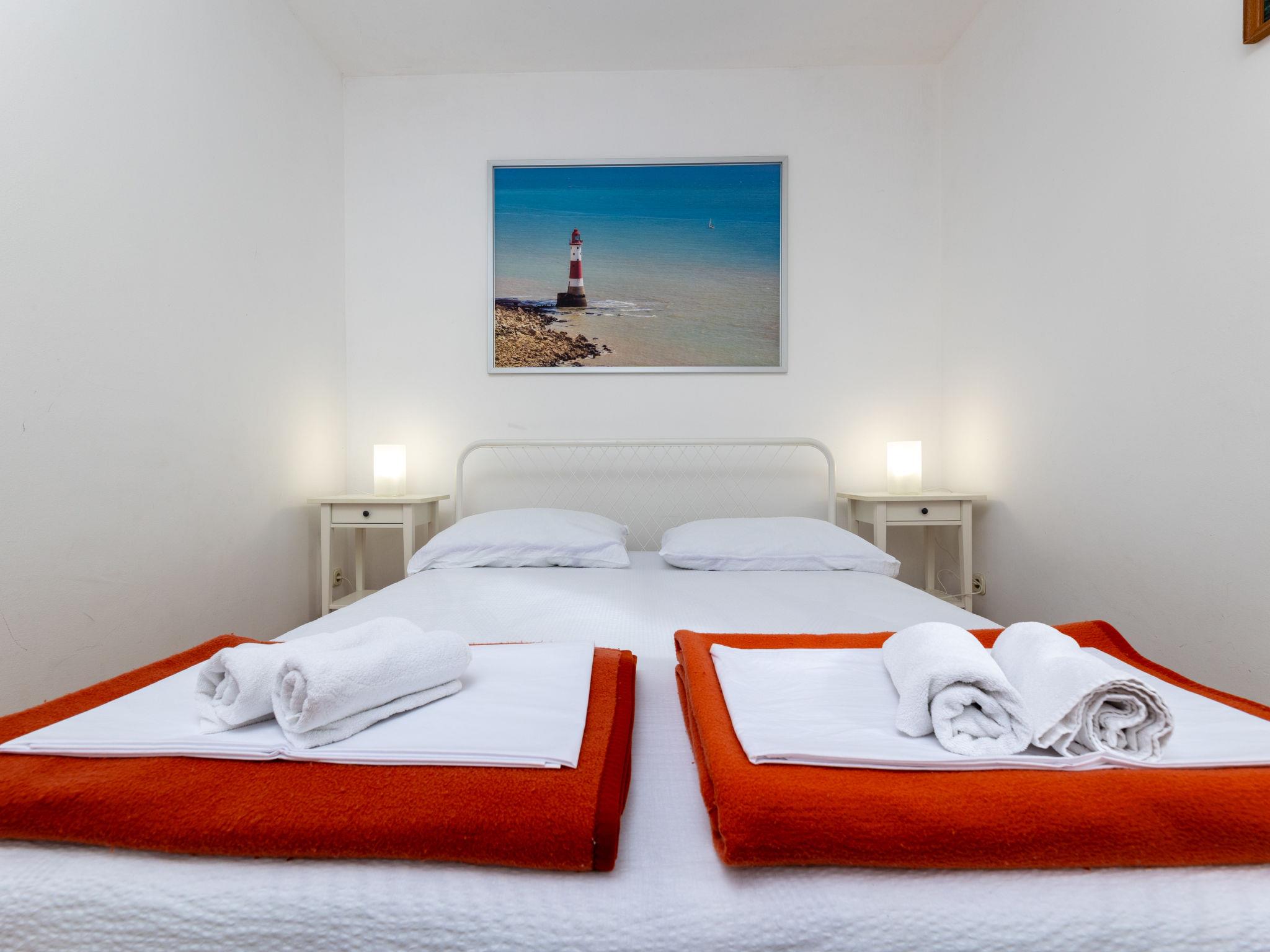 "A1", 2-room apartment 39 m2 on 1st floor, south facing position. Living/sleeping room with 2 beds (90 cm, length 200 cm), satellite TV (flat screen), air conditioning. Exit to the terrace. 1 room with 1 french bed (180 cm, length 200 cm). Open kitchen (4 hot plates, microwave, freezer). Shower/WC. No heating option. Terrace 13 m2, roofed. Balcony furniture. Marvellous view of the sea. Facilities: Internet (WiFi, free).
