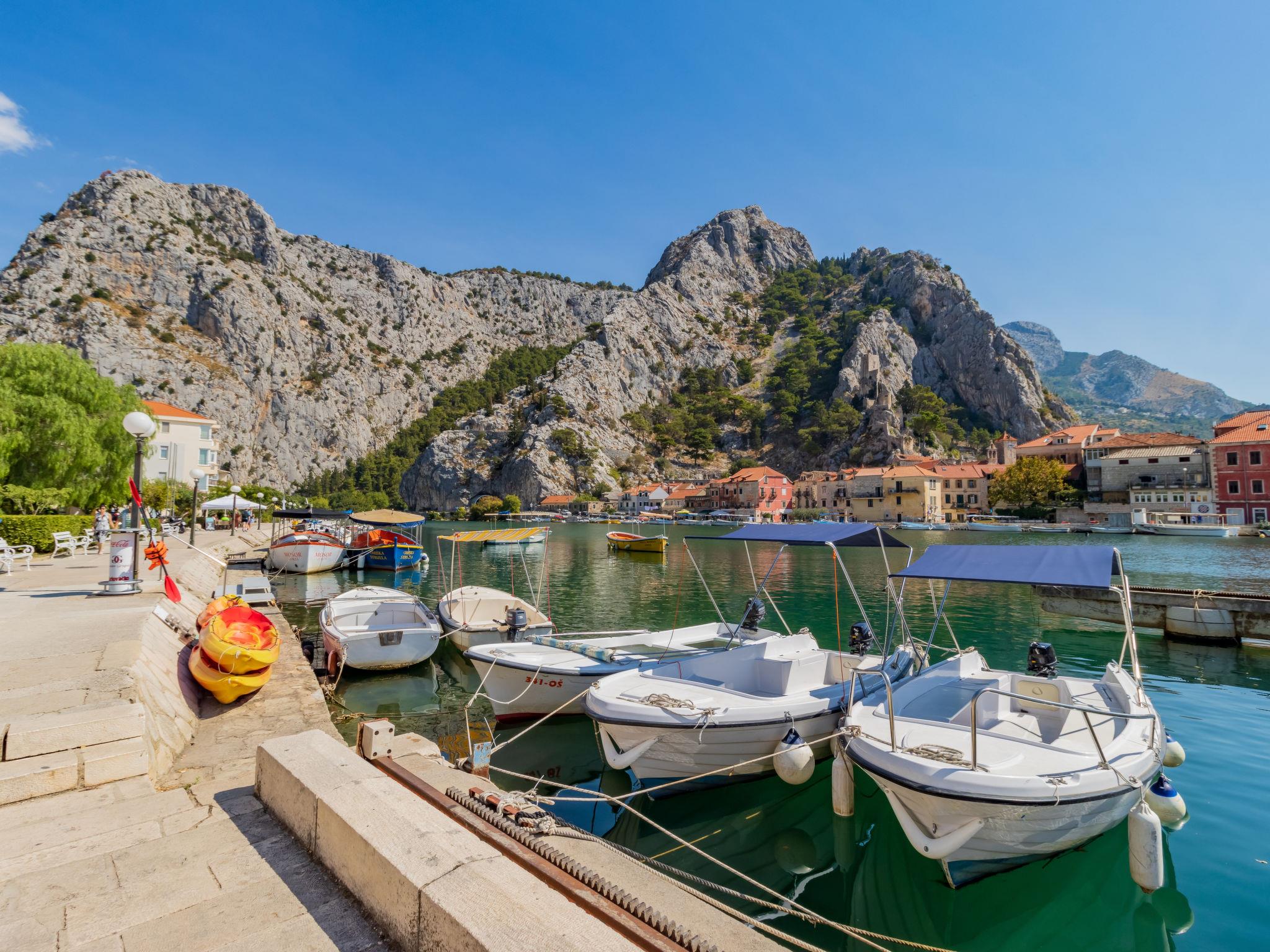 Pisak 16 km from Omiš: Apartment house "Loncar". 400 m from the centre of Pisak, in a quiet, sunny position, 20 m from the sea, 20 m from the beach, direct access to the beach. For shared use: outdoor shower, pergola (30 m2), barbecue. In the house: internet access, washing machine (extra), tumble dryer (for shared use, extra). Parking at the house on the premises. Bus stop 1.3 km.
