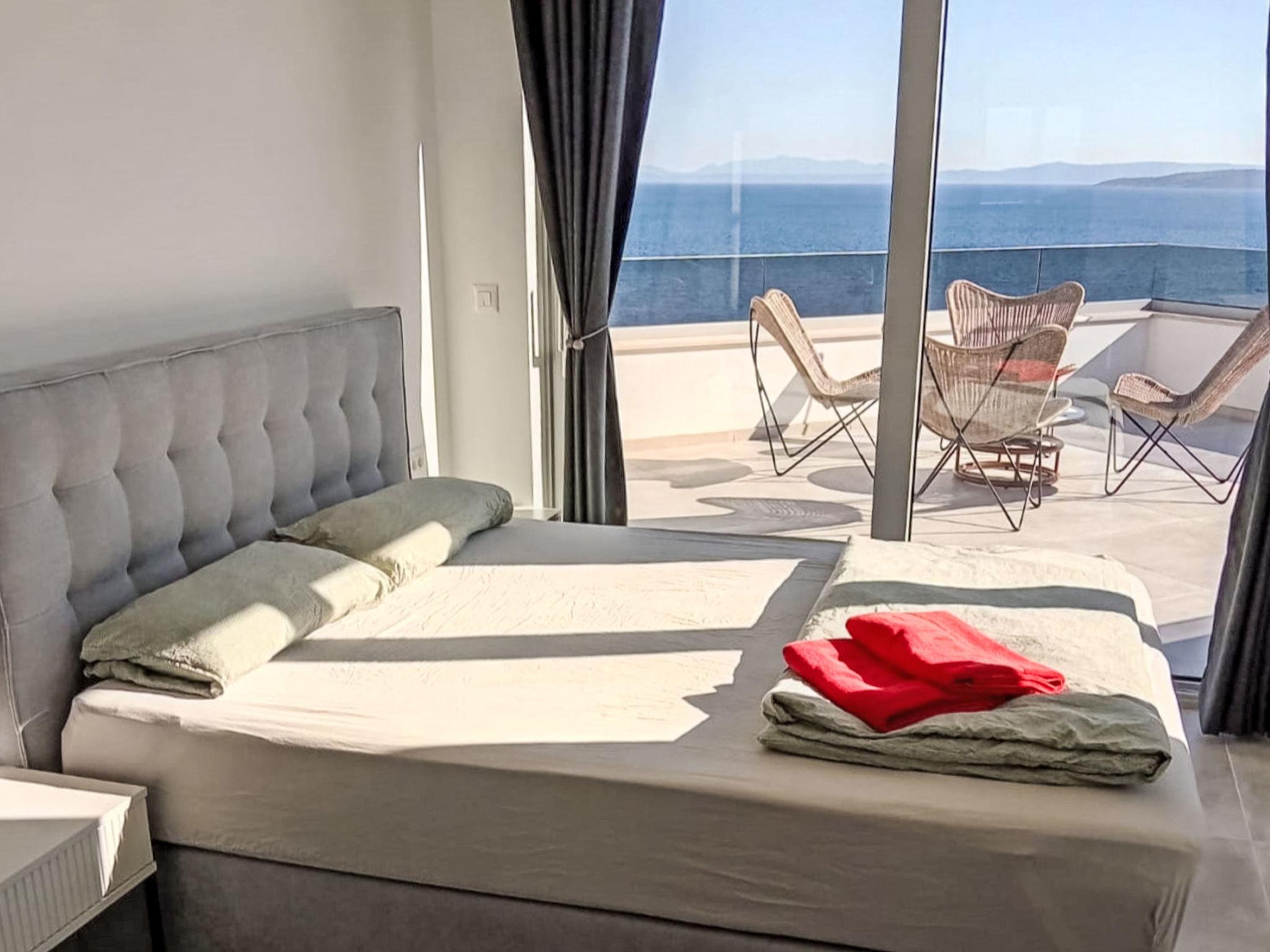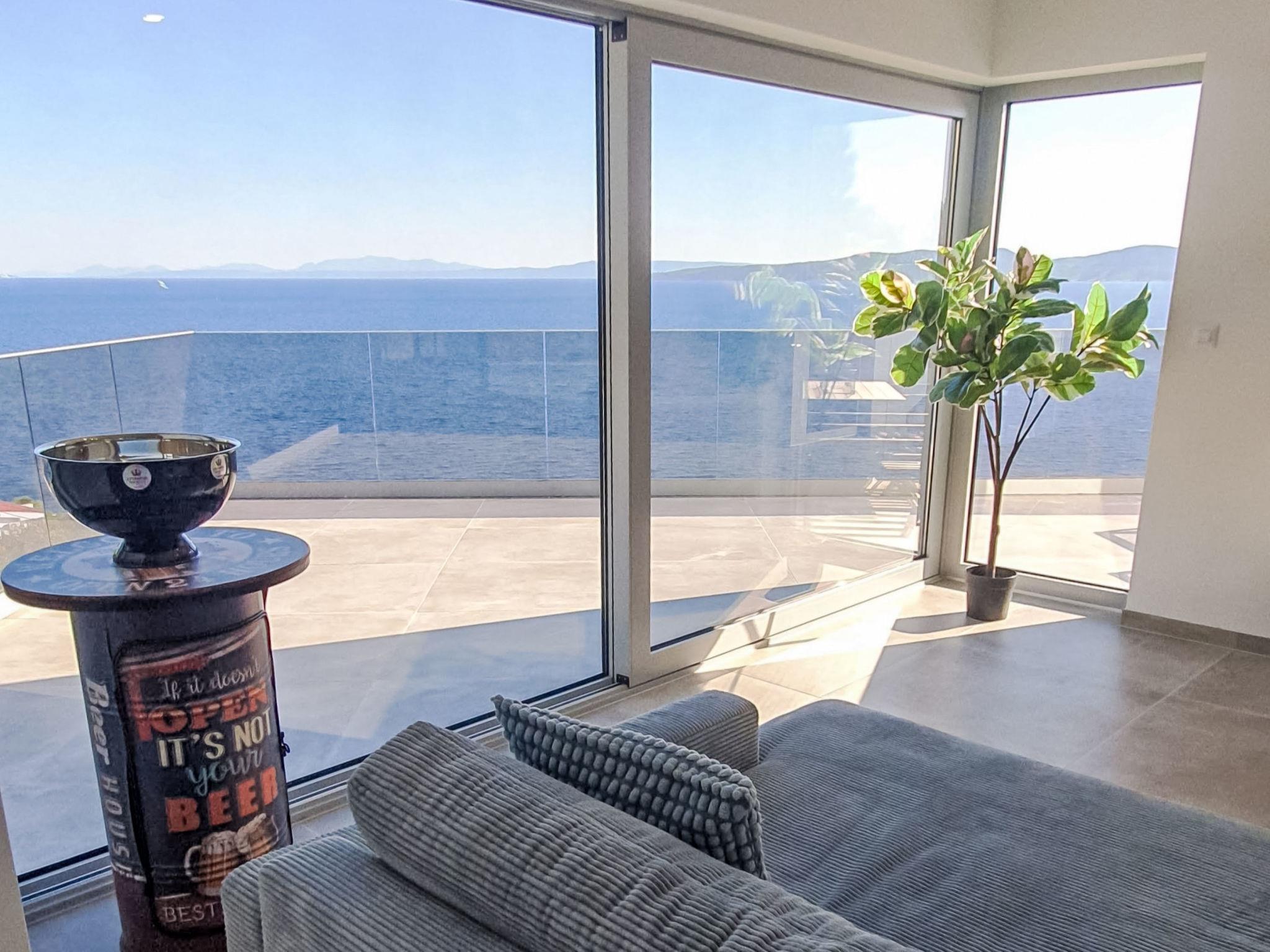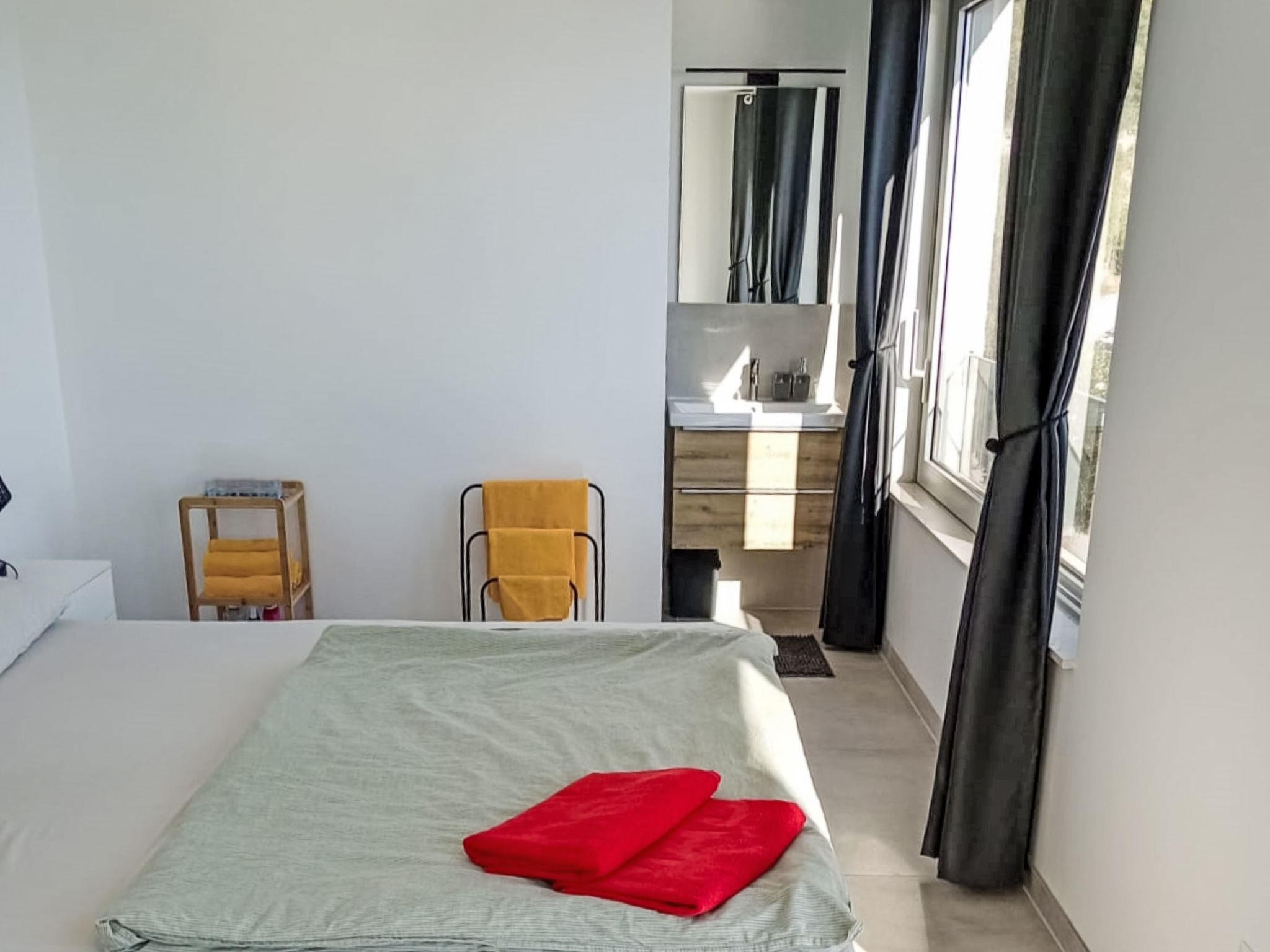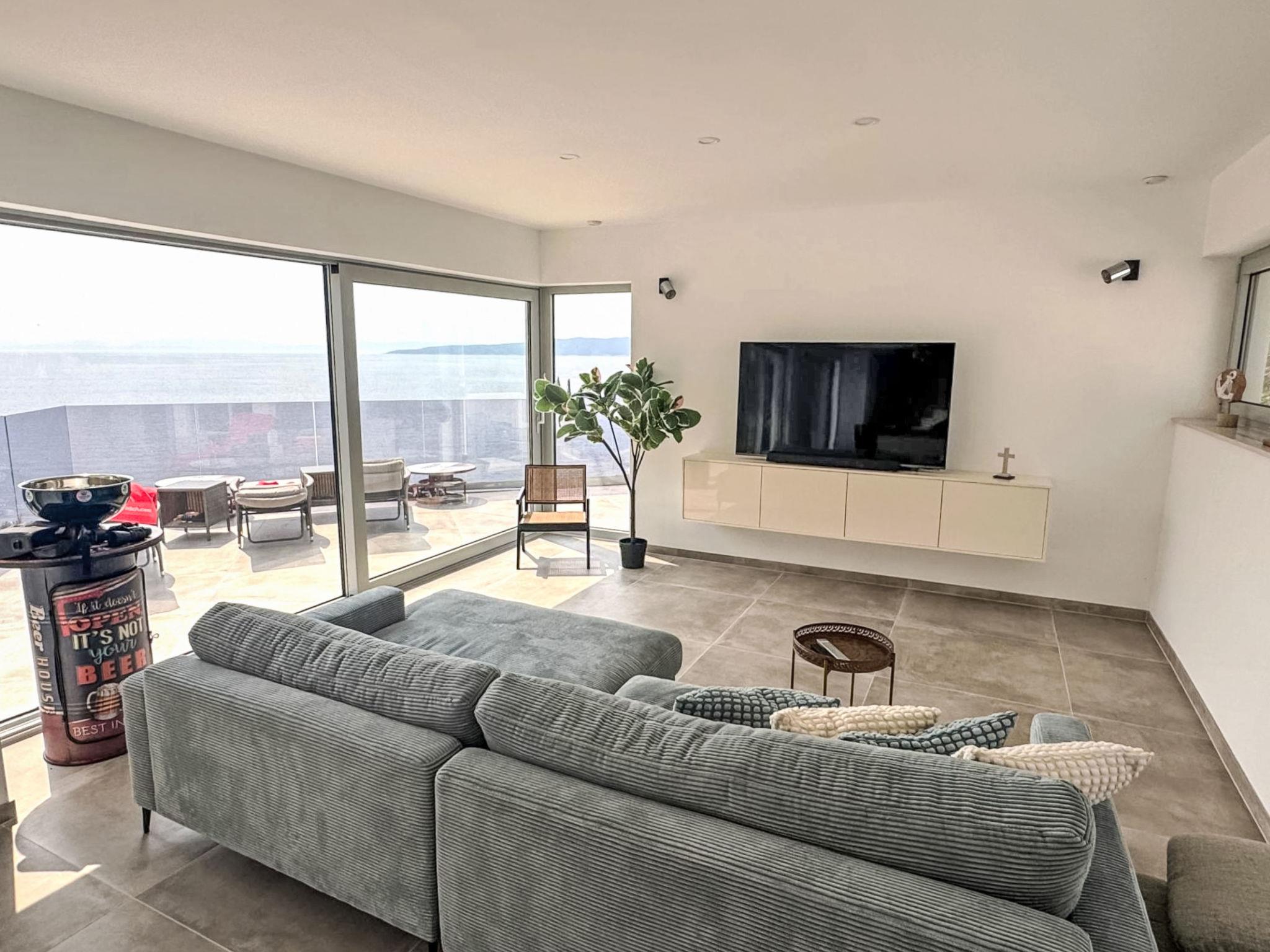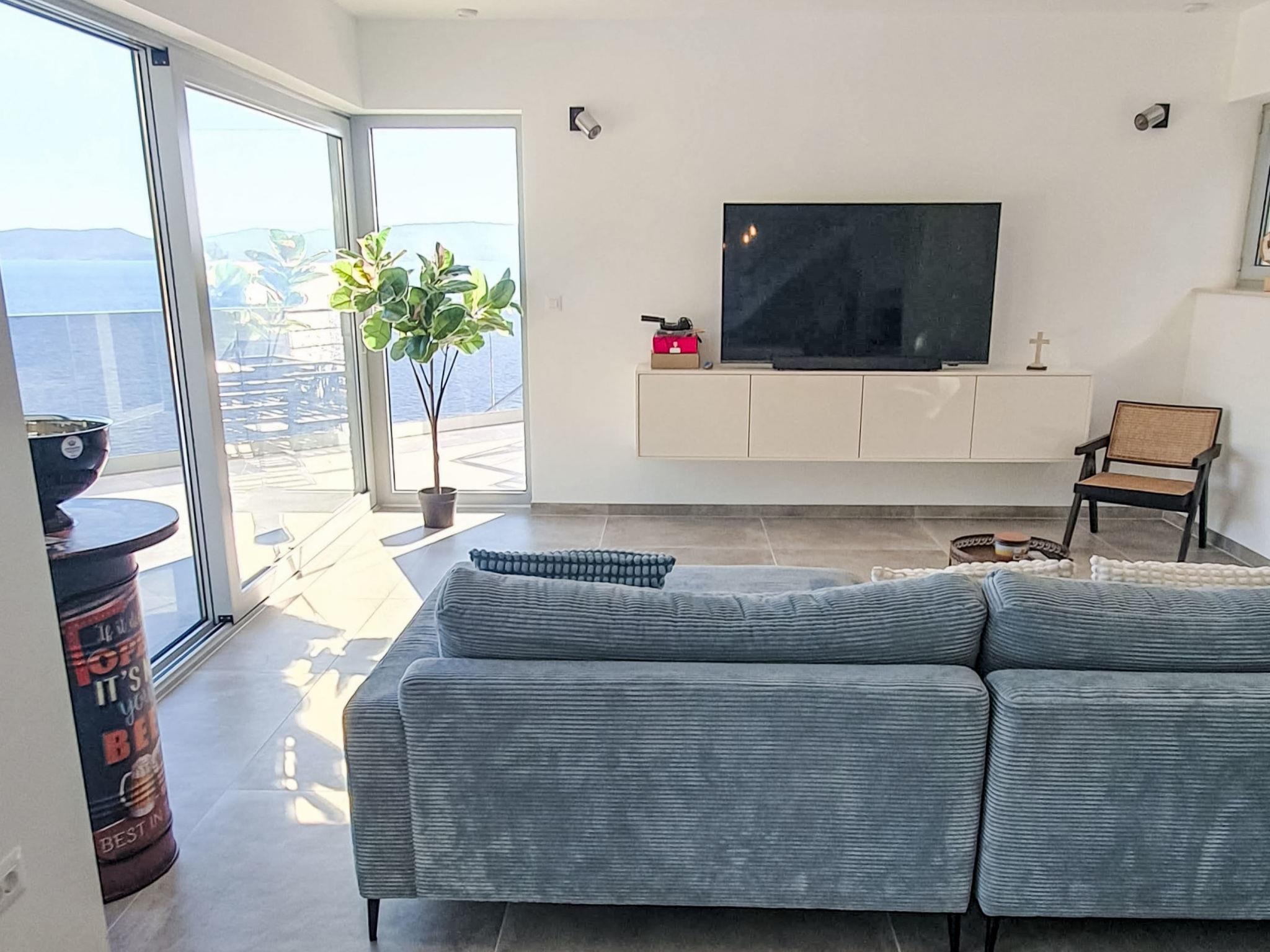 4-room house 240 m2. Living/dining room with air conditioning. Exit to the terrace. Open kitchen (oven, dishwasher, 4 ceramic glass hob hotplates, toaster, kettle, microwave, freezer, electric coffee machine). Shower/WC. Upper floor: 1 room with 1 french bed (160 cm, length 200 cm), shower/WC and air conditioning. Exit to the balcony. 2 rooms, each room with 1 french bed (160 cm, length 200 cm), shower/WC and air conditioning. Marvellous panoramic view of the sea. Facilities: Internet (WiFi, free).