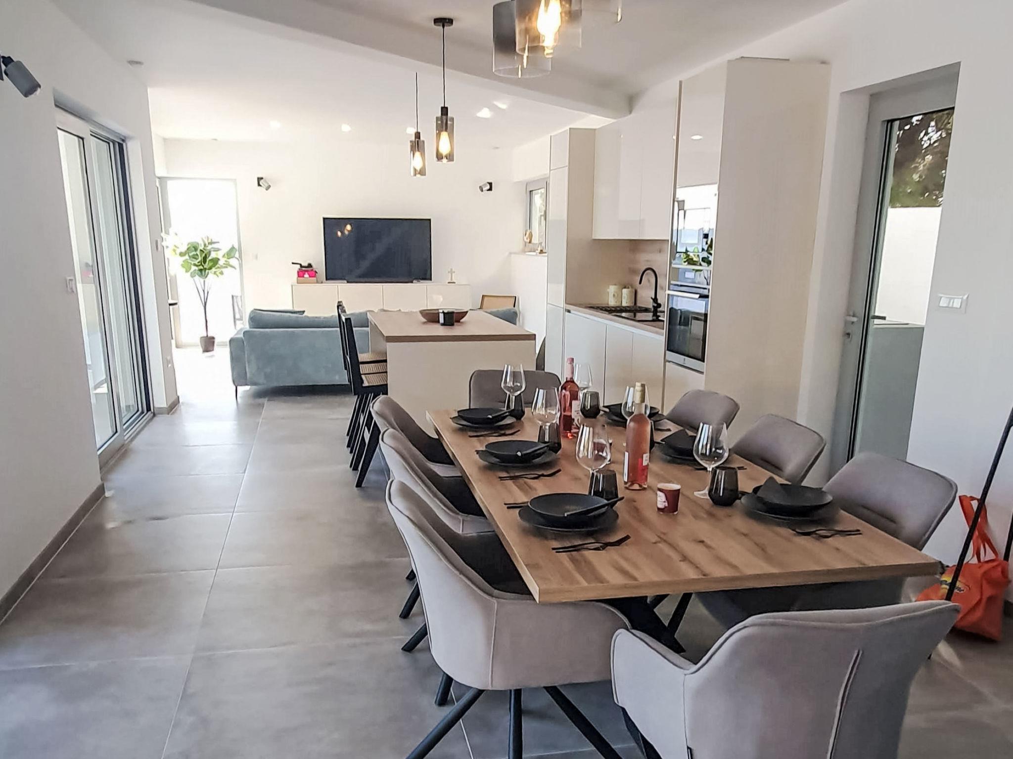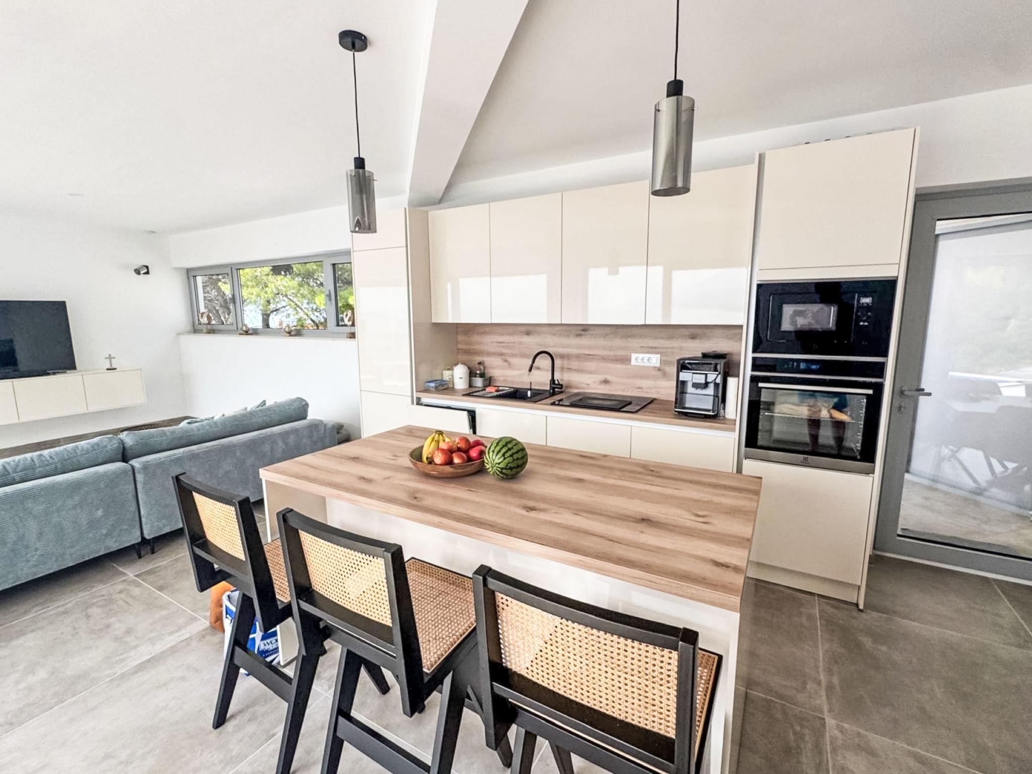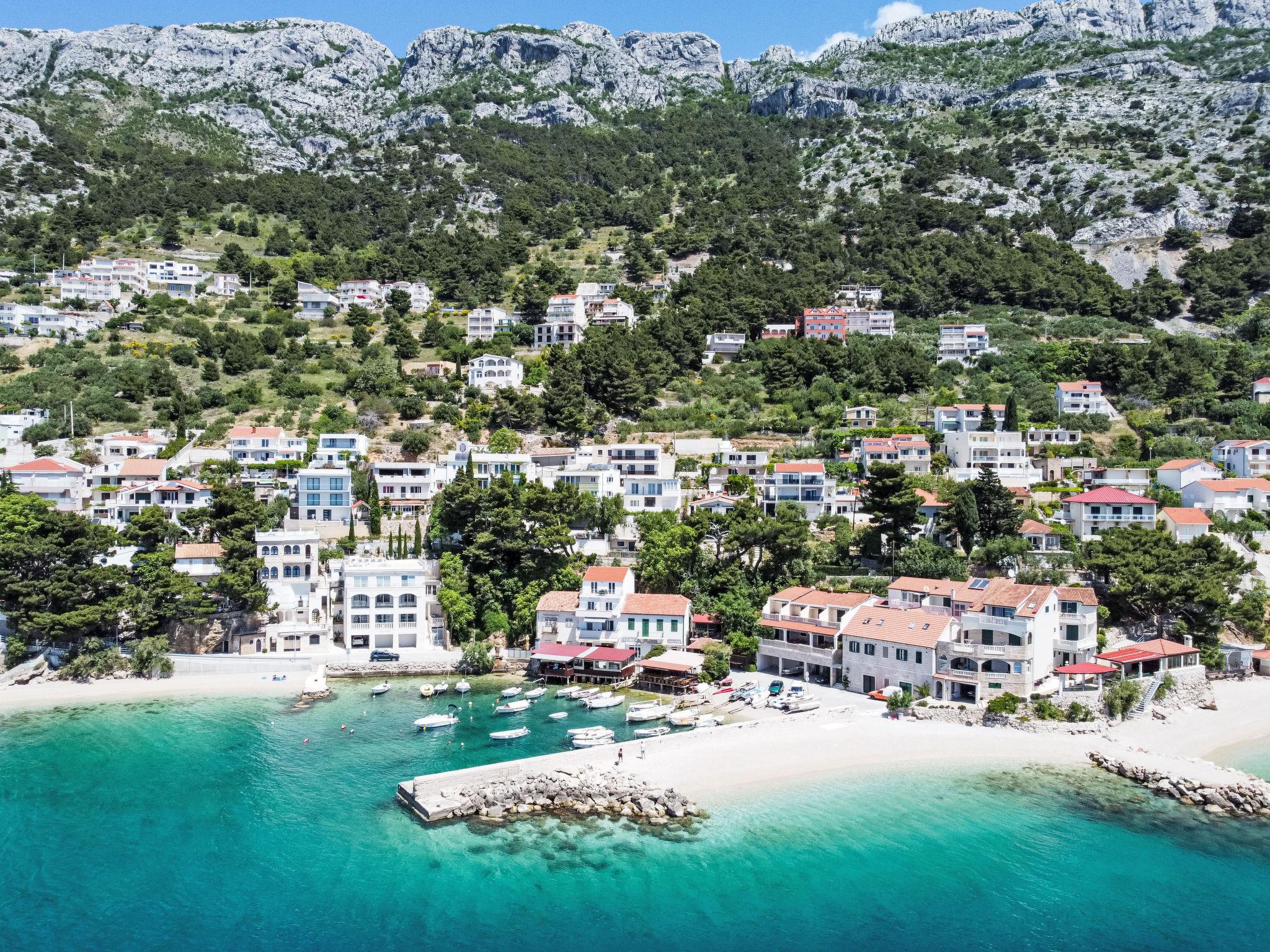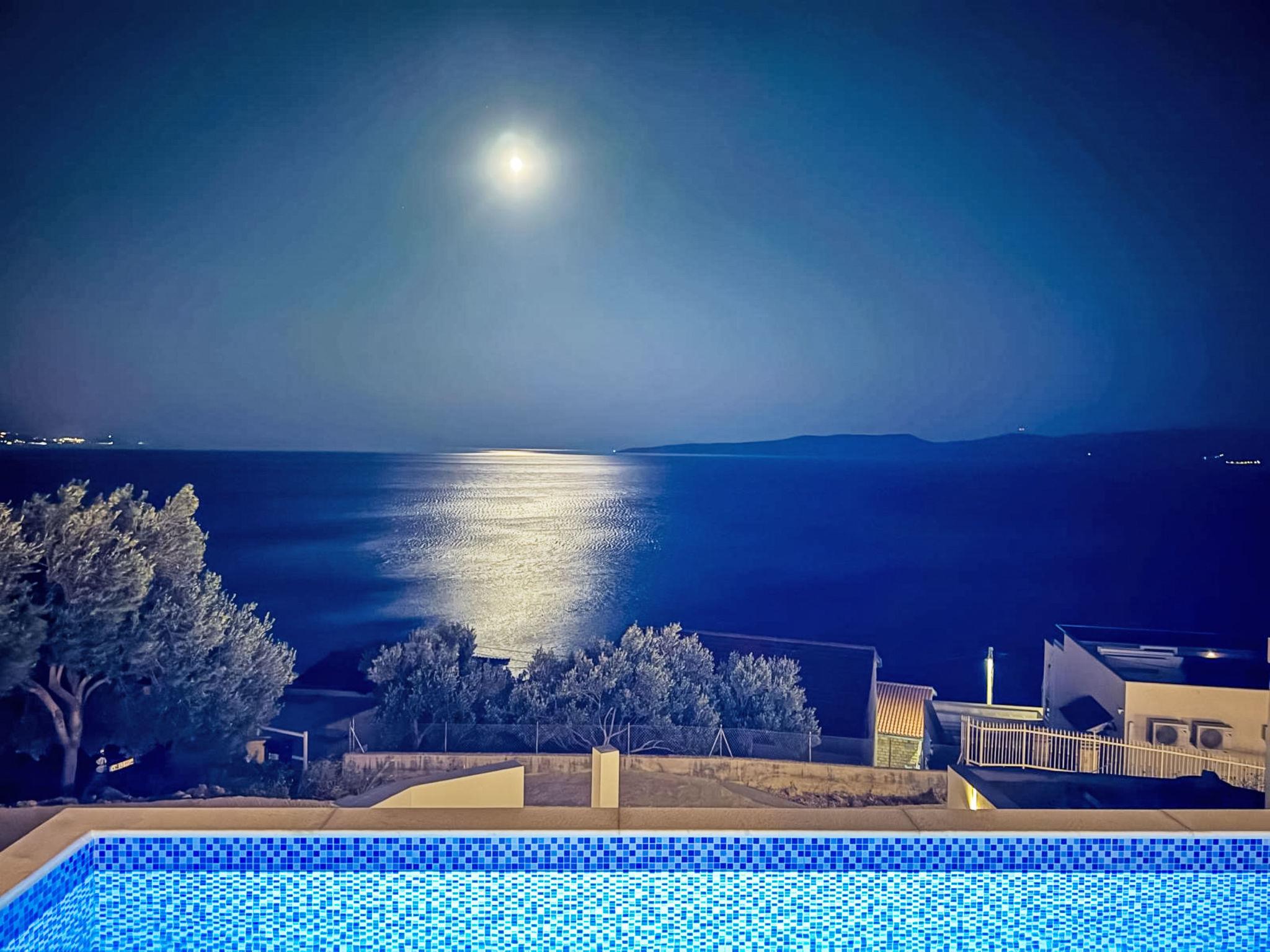 Comfortable house "Sun", 2 storeys. 17 km from the centre of Omiš, in a quiet, sunny position on a slope, 100 m from the sea, 290 m from the beach, in a cul-de-sac. Private: property 540 m2 (fenced), swimming pool angular, heated (24 m2, seasonal availability: 01.May. - 01.Nov.) with internal staircase. Outdoor shower, pool maintenance by the owner/gardener. In the house: internet access, table tennis, washing machine, tumble dryer. 50 m long steep motor access to the house. Parking (for 2 cars), communal covered parking. Grocery 500 m, restaurant, café 680 m, bus stop 1.5 km, pebble beach 290 m. Please note: airfield 62 km from the property.