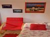 På 1. etage: (Køkken(kakkelovn, elkedel, kaffemaskine), åbent køkken(deles med andre gæster, adgang via udendørs trappe, 24 m2)(sofahjørne, grill), Stue/soveværelse(dobbeltsovesofa), stue / spisestue(Fjernsyn(fladskærm, parabol), spisebord, sofahjørne), badeværelse(bruser, toilet), balkon, klimaanlæg)