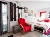 På 1. etage: (tekøkken(kakkelovn, elkedel, kaffemaskine), Stue/soveværelse(dobbeltsovesofa, Fjernsyn(kabel, parabol), spisebord, sofahjørne), badeværelse(bruser, toilet), balkon, klimaanlæg) åbent køkken(deles med andre gæster, adgang via udendørs trappe, 24 m2)(sofahjørne, grill), parkering
