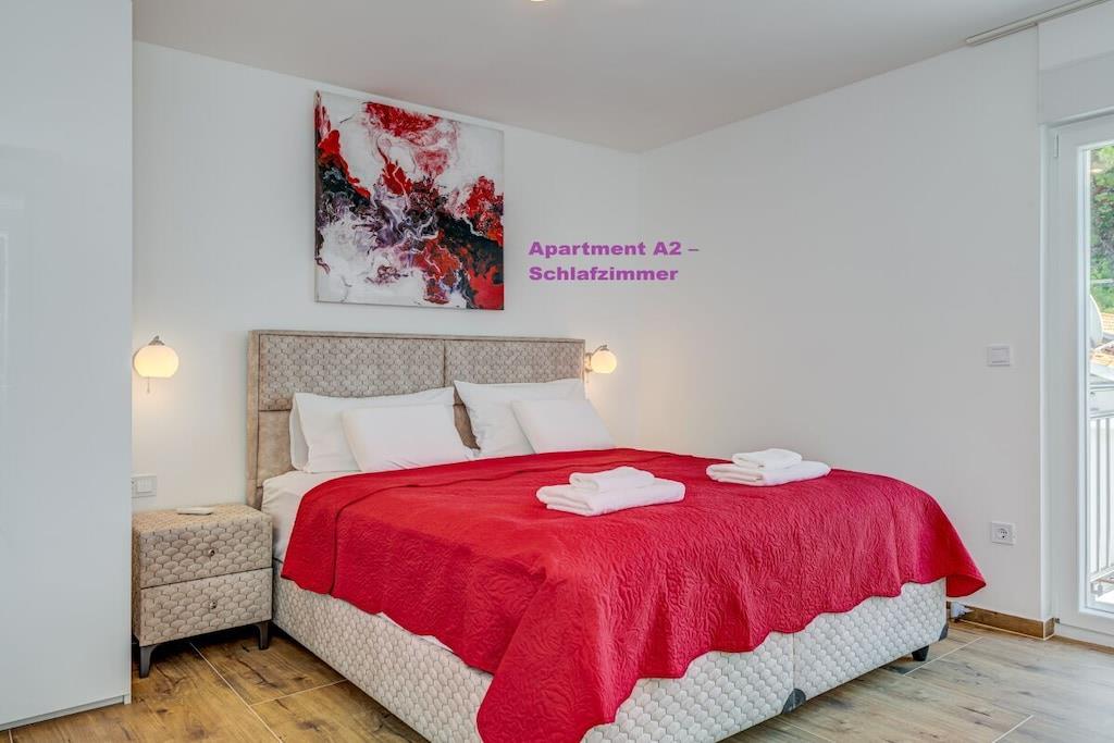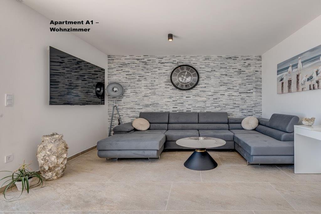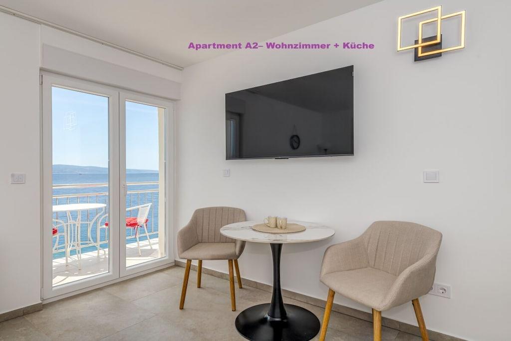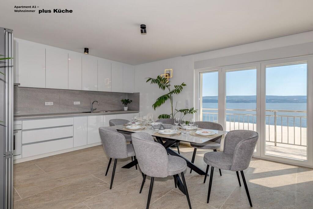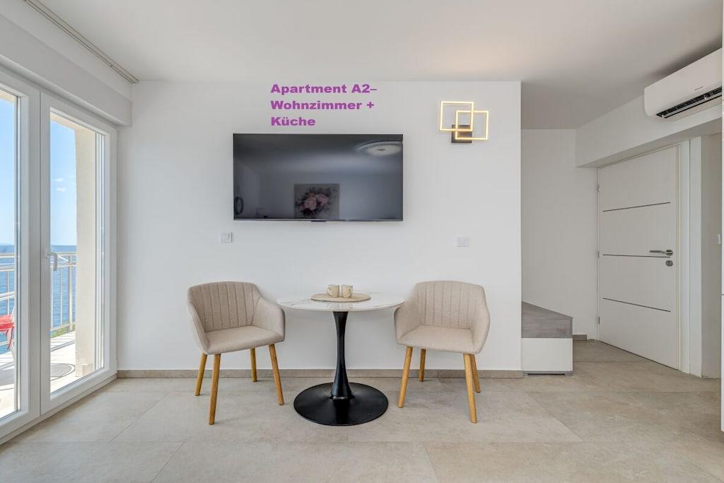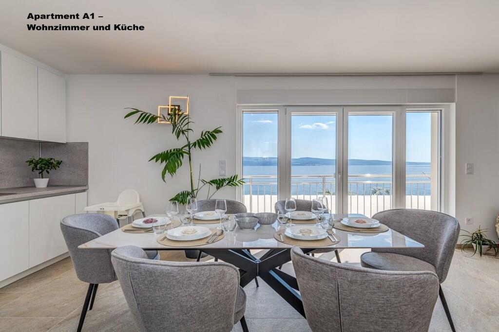 1. sal: 1 Lejlighed A6 til 6 personer, 100m² Pris uden for sæsonen: EURO260, juli og august: EURO360 pr. nat. 3 soveværelser, hver med eget badeværelse, toilet og aircondition. Stue med fuldt udstyret køkken inklusive opvaskemaskine, vaskemaskine osv. Smart TV Hvert værelse med privat balkon, havudsigt og aircondition. 2. sal: 1 Lejlighed A2 til 2 personer, 40m² Pris uden for sæsonen: EURO100, juli og august: EURO150 pr. nat. Fra 14. til 30. september 2025: EURO90 pr. nat. Separat soveværelse, 1 dobbeltseng, aircondition, balkon Stue med fuldt udstyret køkken inklusive opvaskemaskine, vaskemaskine osv. Smart TV Balkon med havudsigt 1x Lejlighed A4 til 4 personer Pris uden for sæsonen: EUR 180, sæson juli og august: EUR 250 pr. nat. 2 separate soveværelser, hver med en dobbeltseng, toilet, aircondition og balkon Stue med fuldt udstyret køkken inklusive opvaskemaskine, vaskemaskine osv. Smart TV 3. sal: 1x Lejlighed A2 til 2 personer Pris uden for sæsonen: EUR 100, sæson juli og august: EUR 150 pr. nat. Separat soveværelse med 1 dobbeltseng, aircondition, balkon Stue med fuldt udstyret køkken inklusive opvaskemaskine, vaskemaskine osv. Smart TV Balkon med havudsigt 1x Lejlighed A4 til 4 personer Pris uden for sæsonen: EUR 180, sæson juli og august: EUR 250 pr. nat. 2 separate soveværelser, hver med egen dobbeltseng, toilet, aircondition og balkon. Stue med fuldt udstyret køkken inklusive opvaskemaskine, vaskemaskine osv. Smart TV