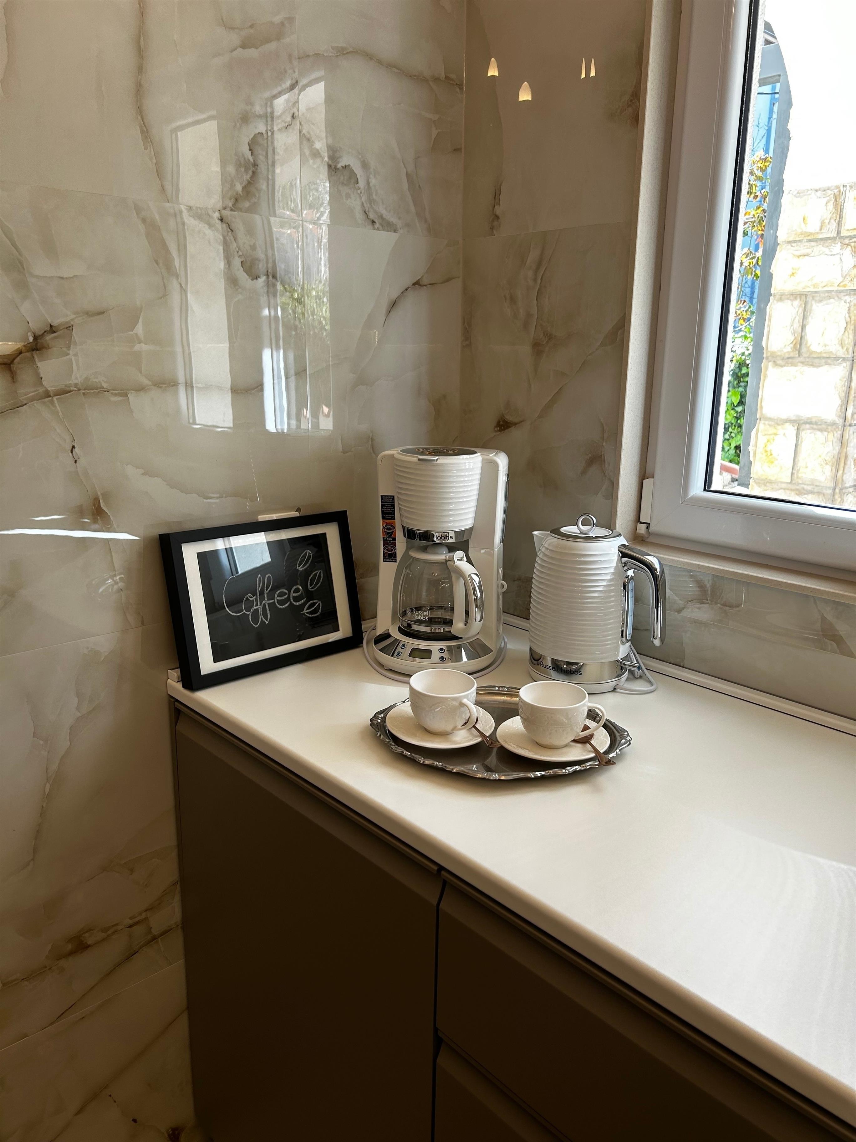 Genießen Sie Ihren Urlaub in vollen Zügen, bei schönem Wetter auch draußen auf der Terrasse. In der Unterkunft finden Sie neben einem Kühlschrank auch eine Mikrowelle und eine Kaffeemaschine.