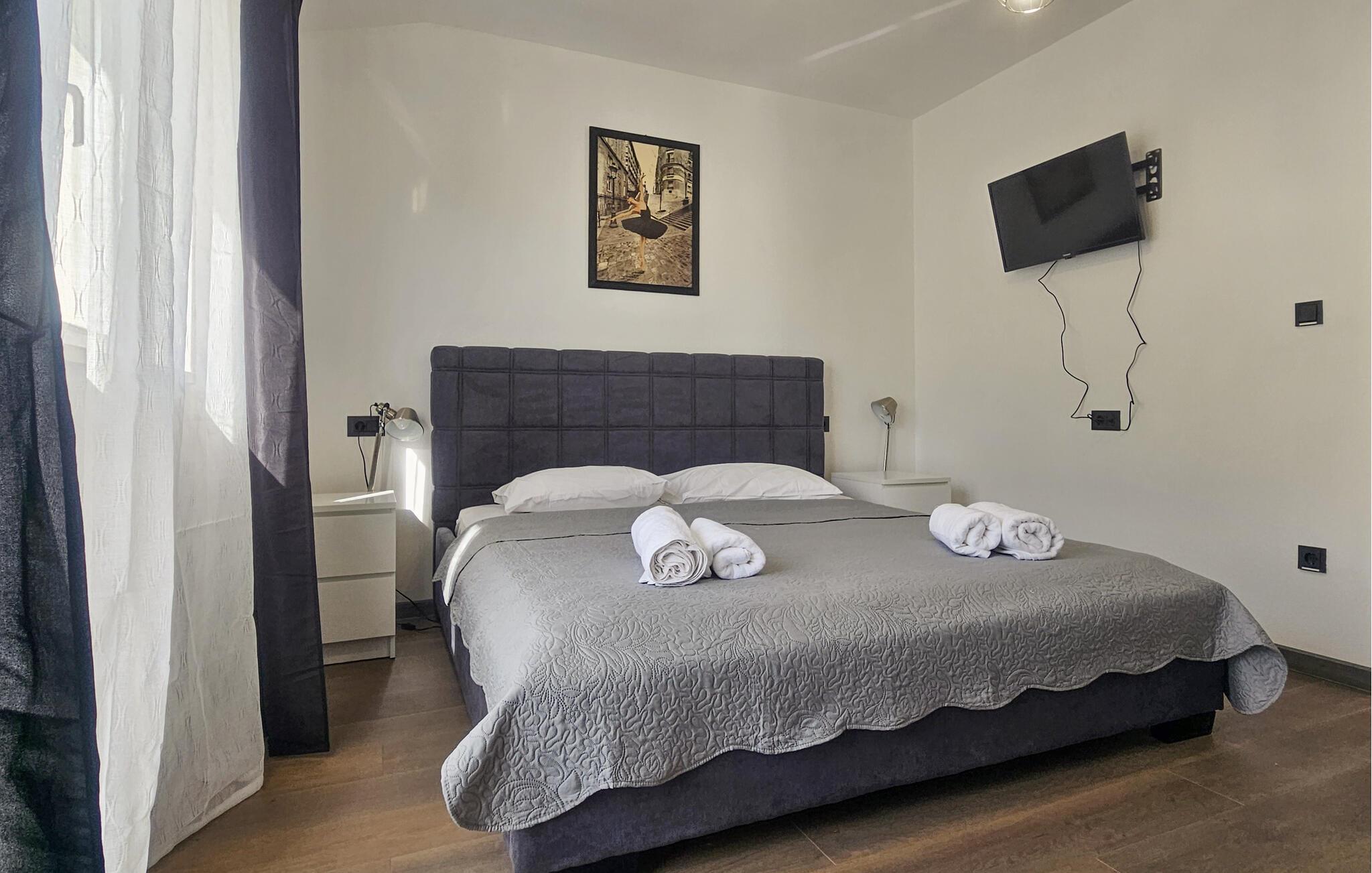 Velkommen til denne fine bolig, der ligger lige uden for Kutlesa-bugten nær Mimice, og hvor der venter jer en herlig base for årets ferie med den lille familie. Omgivelserne er virkelig skønne, og indvendigt fremtræder lejligheden flot og indbydende med gode møbler, velholdte trægulve og et moderne køkken, hvor I kan kræse om livretterne efter en aktiv feriedag.