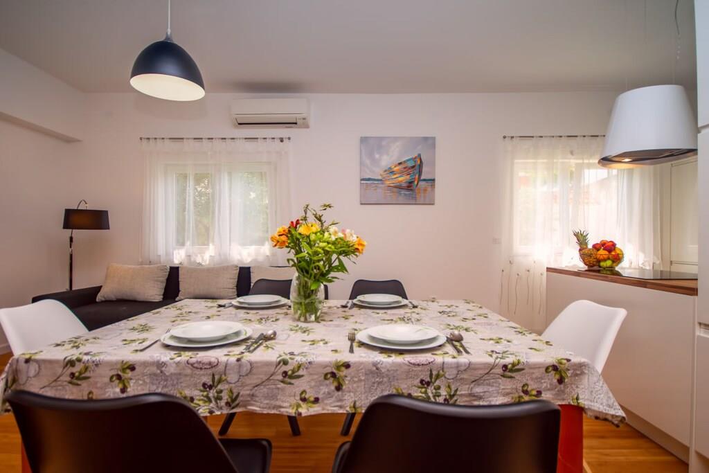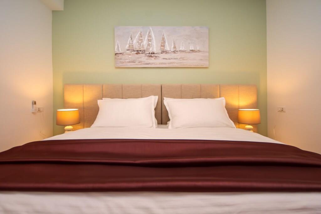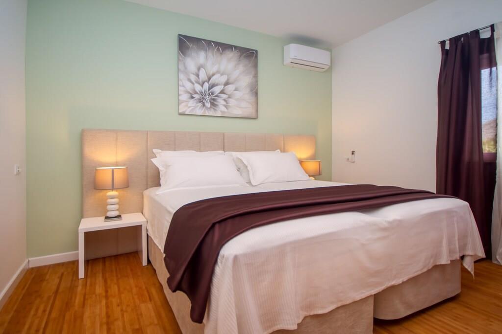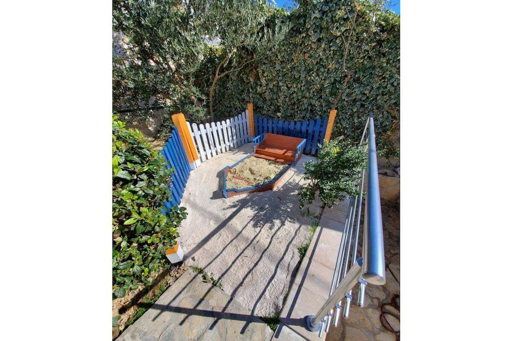 Stueetage: (Køkken(kakkelovn, kogeplade, ovn, opvaskemaskine , klimaanlæg), Stue/soveværelse(Fjernsyn, klimaanlæg), Stue/soveværelse(enkeltsovesofa, Fjernsyn, klimaanlæg), soveværelse(king size-seng, klimaanlæg), soveværelse(king size-seng, klimaanlæg)) På 1. etage: (Køkken(kakkelovn, kogeplade, ovn, opvaskemaskine , køleskab, klimaanlæg), soveværelse(king size-seng, klimaanlæg), soveværelse(king size-seng, klimaanlæg), badeværelse(bruser, håndvask, toilet, Håndklæder inkl.), badeværelse(bruser, håndvask, toilet, Håndklæder inkl.)) grill, solarium, sauna, balkon, klimaanlæg, terrasse, swimmingpool, bordtennisbord, dart, Gyngestativ