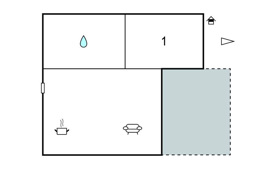 Komb. spisestue/køkken 19m2 - 1 Soveplads. (Sofa, madras eller lignende).