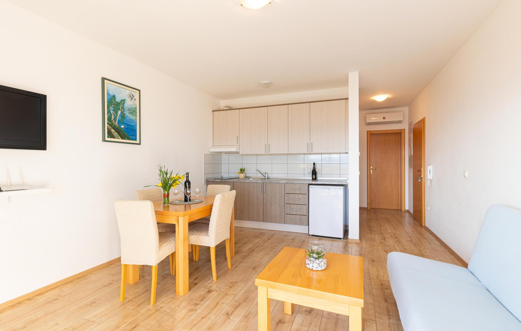Tilbring afslappende dage på den gyldne sandstrand og snup en frisk dukkert i det klare, turkisblå hav. Udforsk den livlige gamle bydel i Omiš, slentre gennem charmerende gyder, oplev hyggelige caféer eller prøv lækre dalmatiske specialiteter på lokale restauranter. Tag en kajaksejlads på Cetina-floden, eller udforsk den betagende natur på vandreture eller mountainbiking.