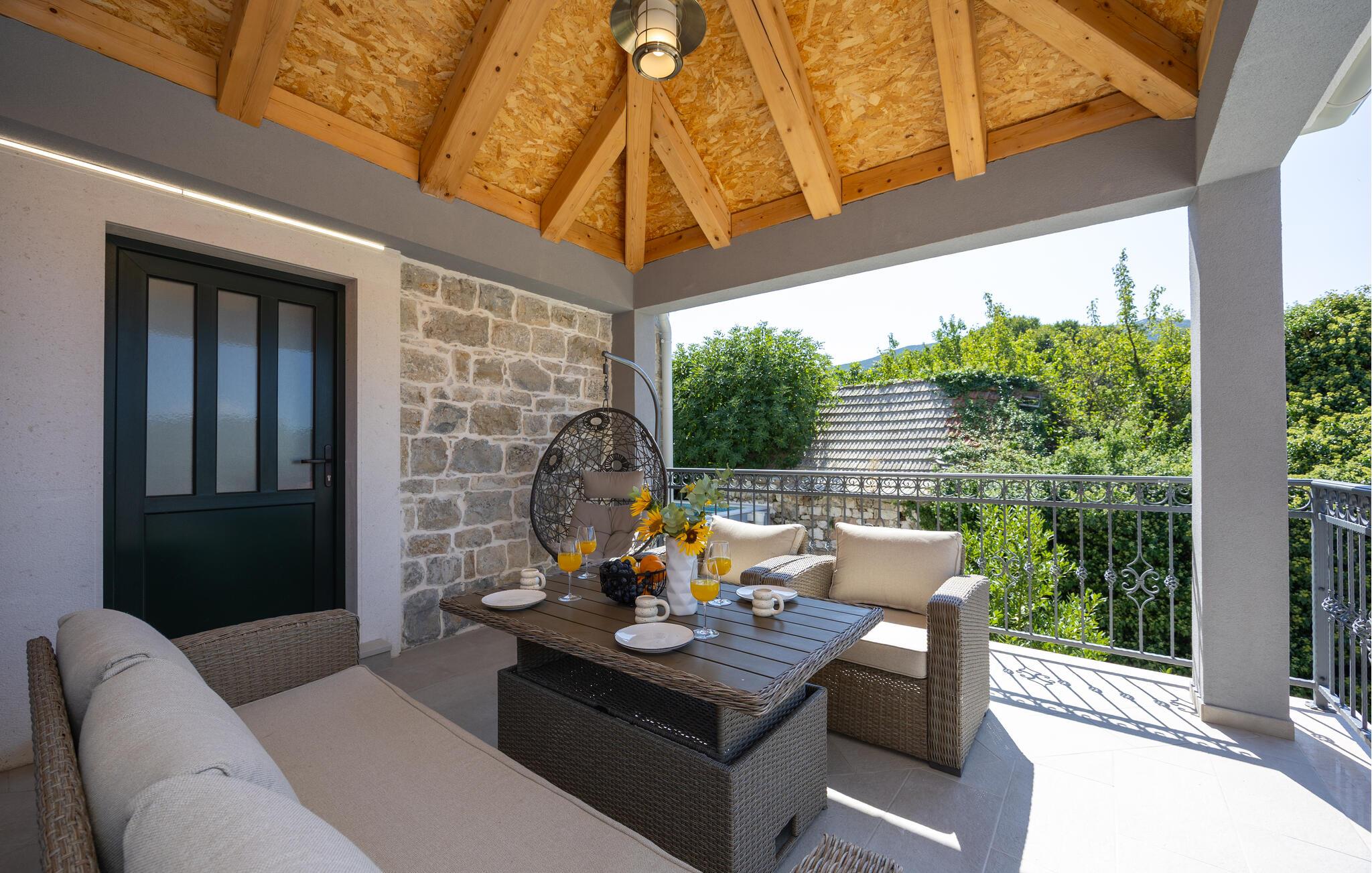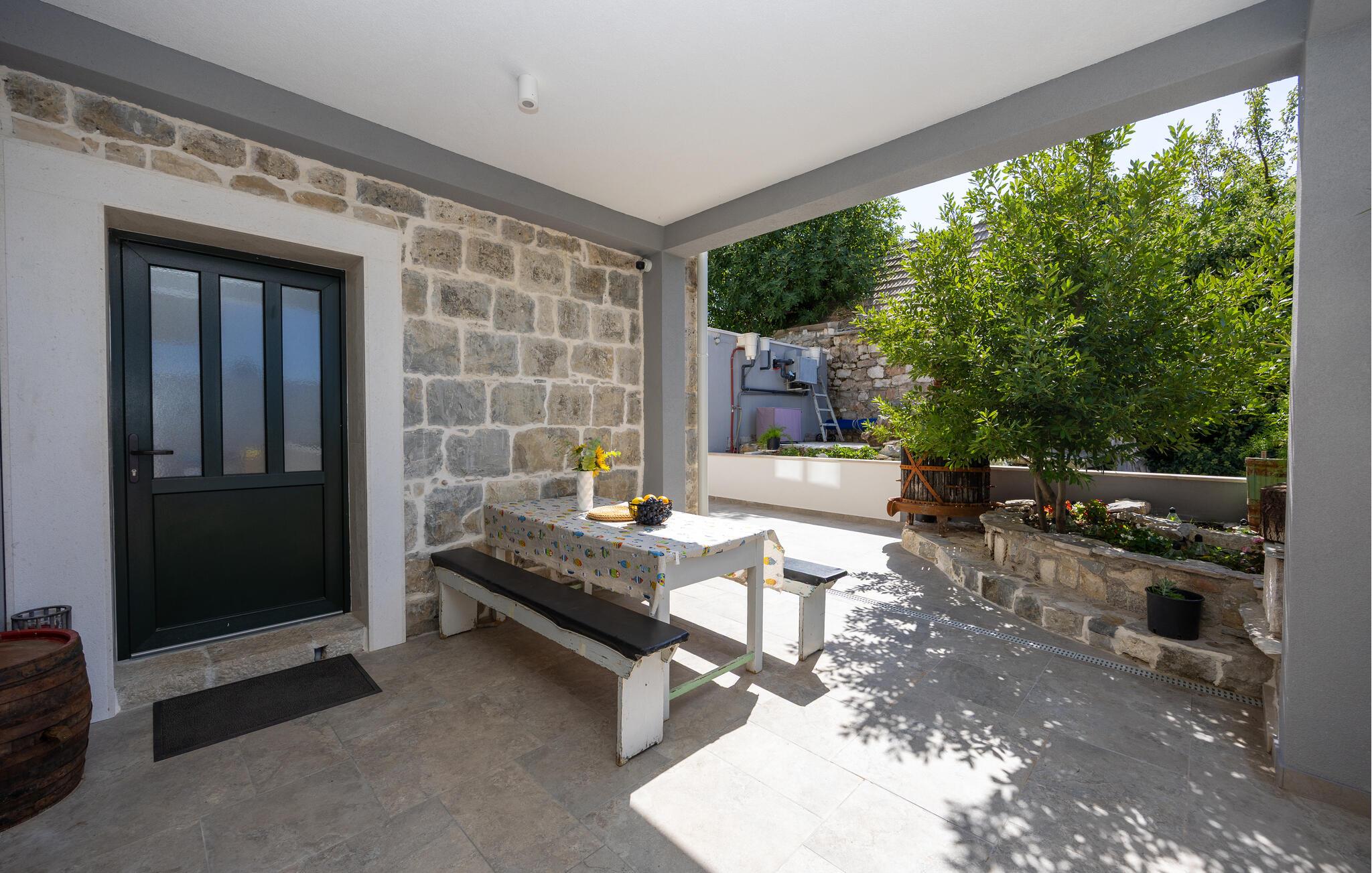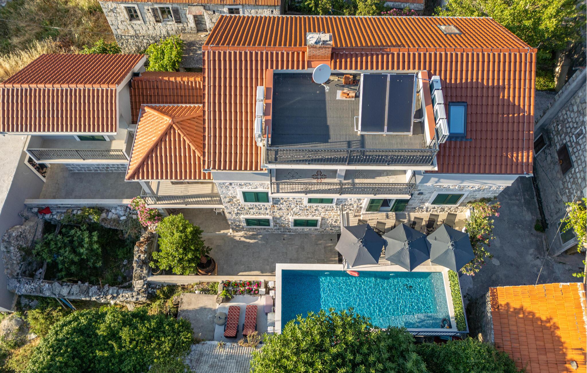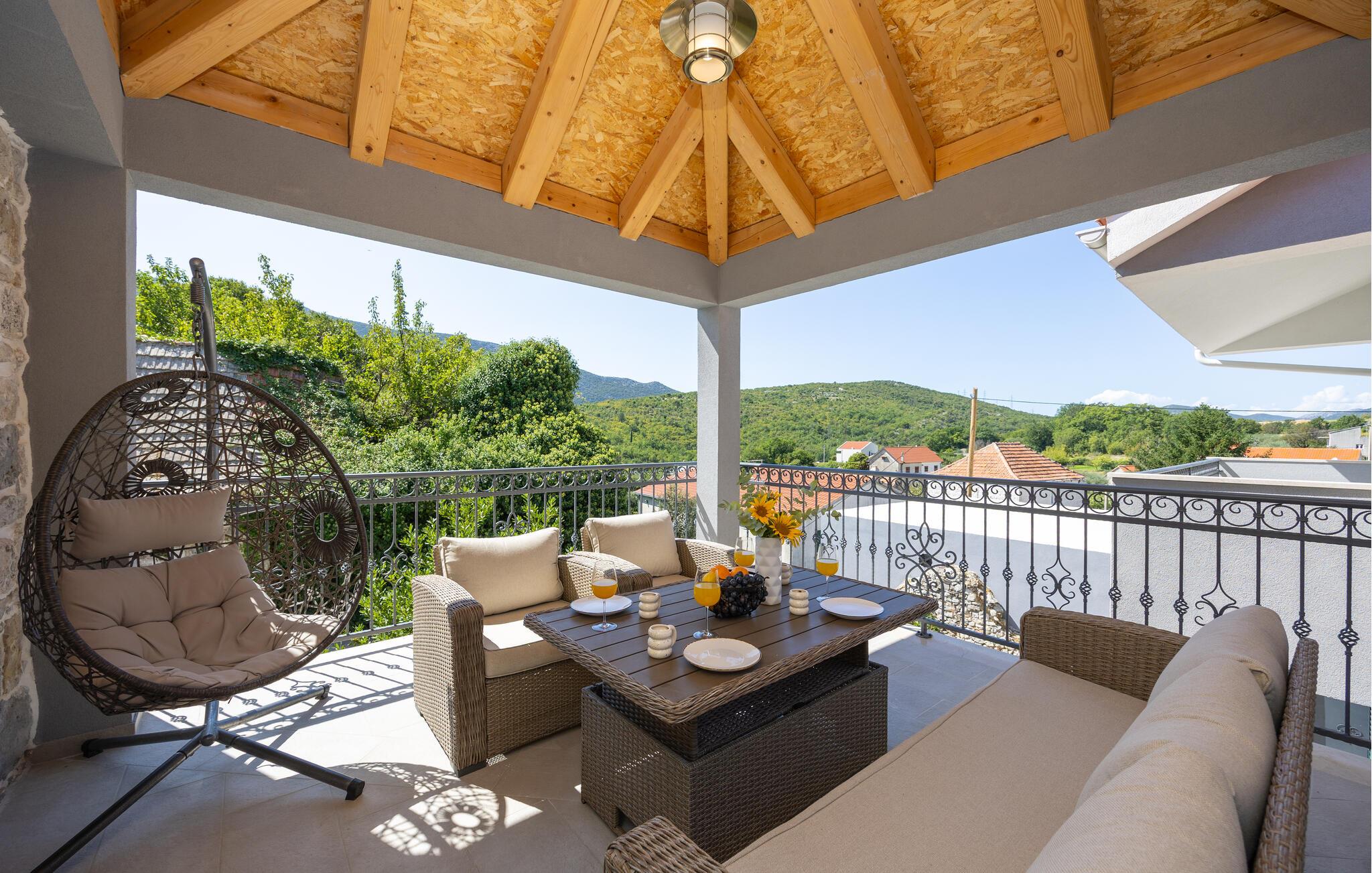 Oplev uforglemmelige ferier i dette luksuriøse feriehus med pool og spabad. Dette indbydende hus kombinerer moderne elegance og rustikke elementer på perfekt vis. Naturstenslook i stuerne, stilfulde møbler og pejs skaber en harmonisk atmosfære, hvor I hurtigt kan genoplade batterierne. Slap af med en kop kaffe eller et hjemmelavet måltid med et glas vin. Hvis I har lyst til motion, er der træningsmaskiner i fitnessrummet. Gå ud på terrassen ved de første solstråler og nyd den vidunderlige udsigt over de grønne, skovklædte bakker. Nyd en god morgenmad og fordyb jer derefter i en god bog. Svøm et par afslappende baner i poolen eller slap af i spabadet. Mød jer til en grillfest om aftenen og afslut dagen i en afslappet atmosfære. Tilbring afslappende timer på strandene ved Omiš Riviera, som er ideelle til svømning, solbadning og snorkling. Udforsk byen Omiš, hvor historiske gader, Cetina-flodens udmunding og det nærliggende hav smelter sammen til en unik atmosfære. Tag på vandretur gennem det omkringliggende bjerglandskab omkring Ostrvica og nyd en storslået udsigt. De, der leder efter noget mere aktivt, kan prøve rafting på Cetina-floden eller deltage i en klatretur.
