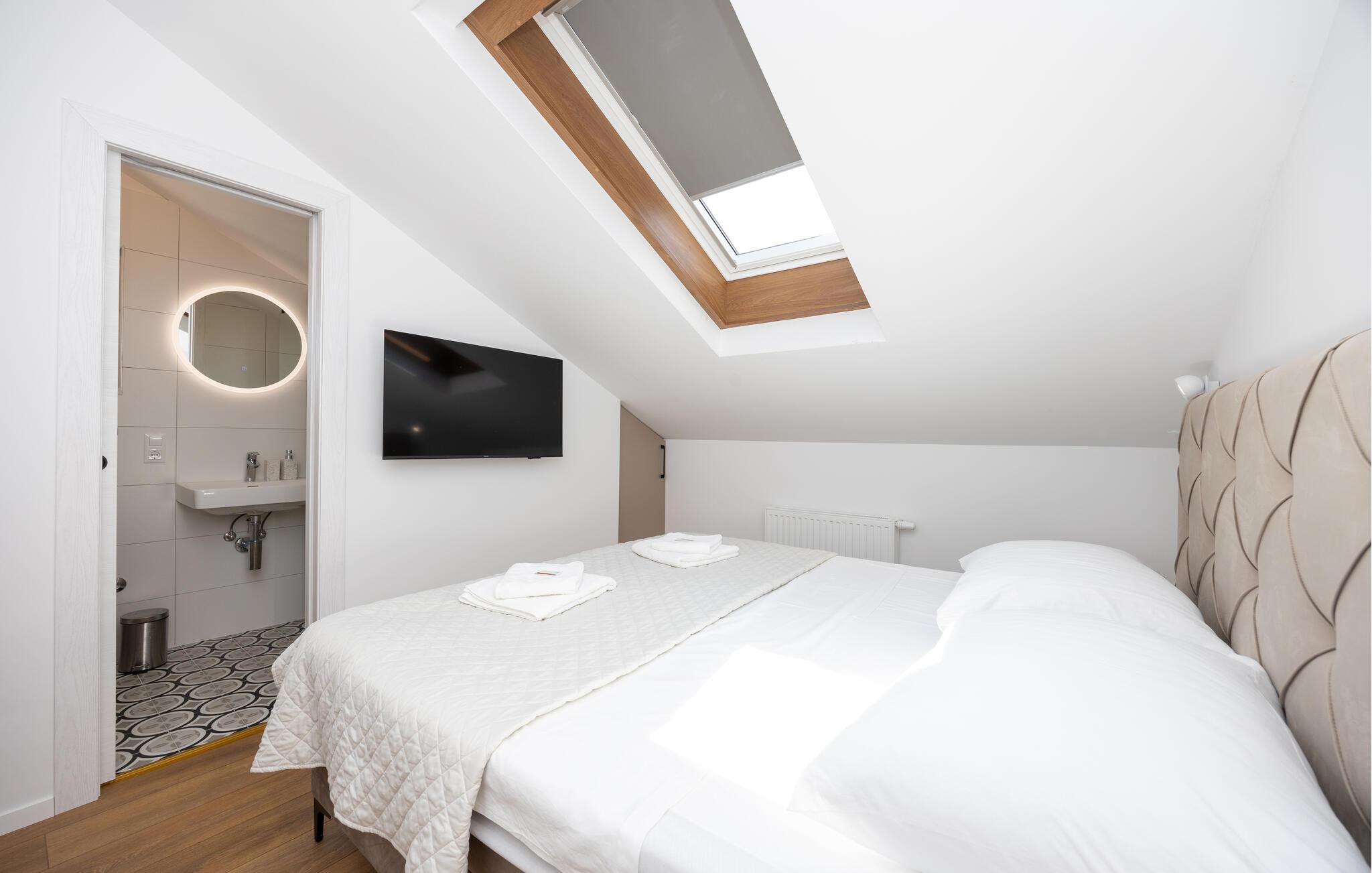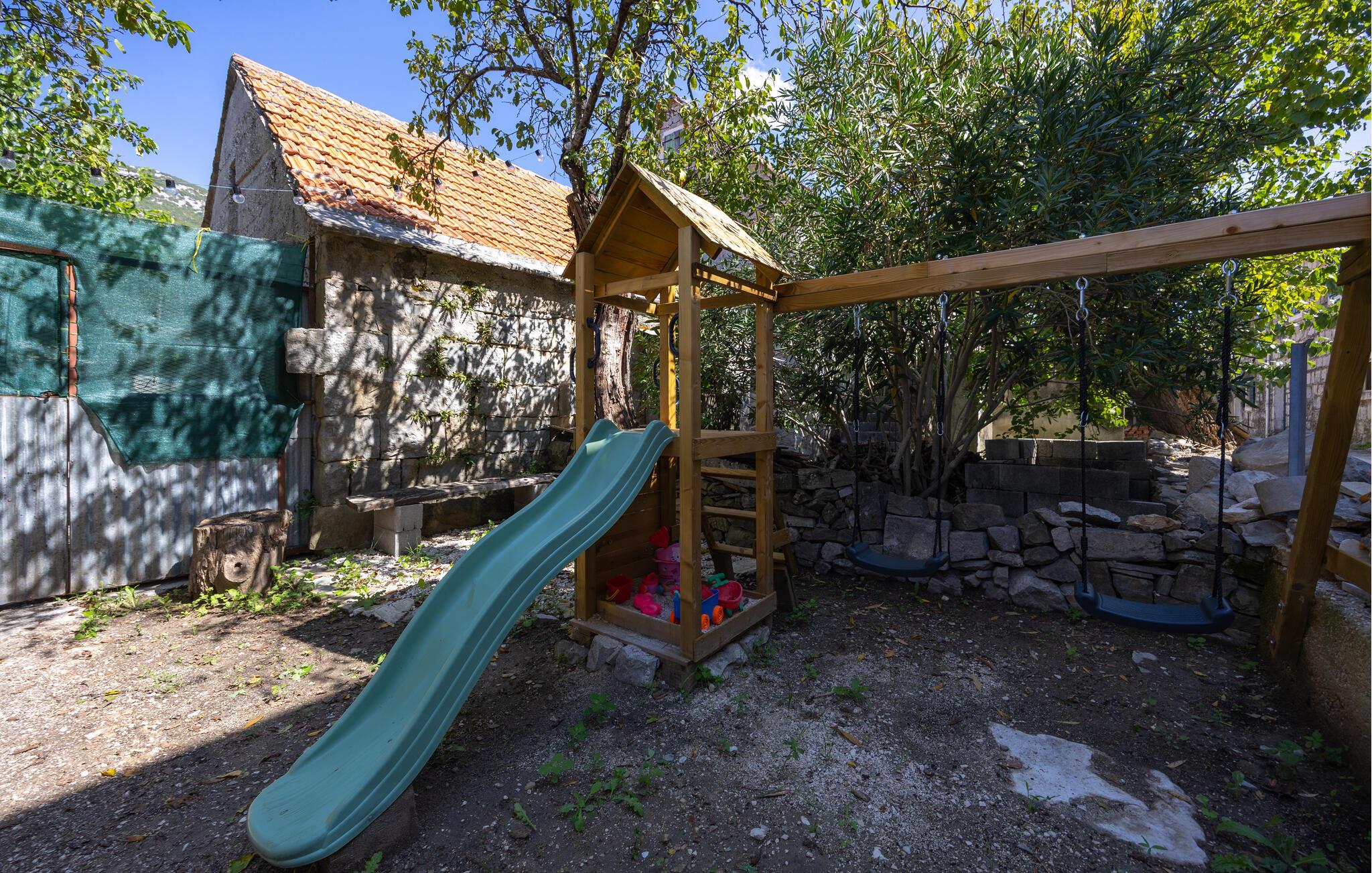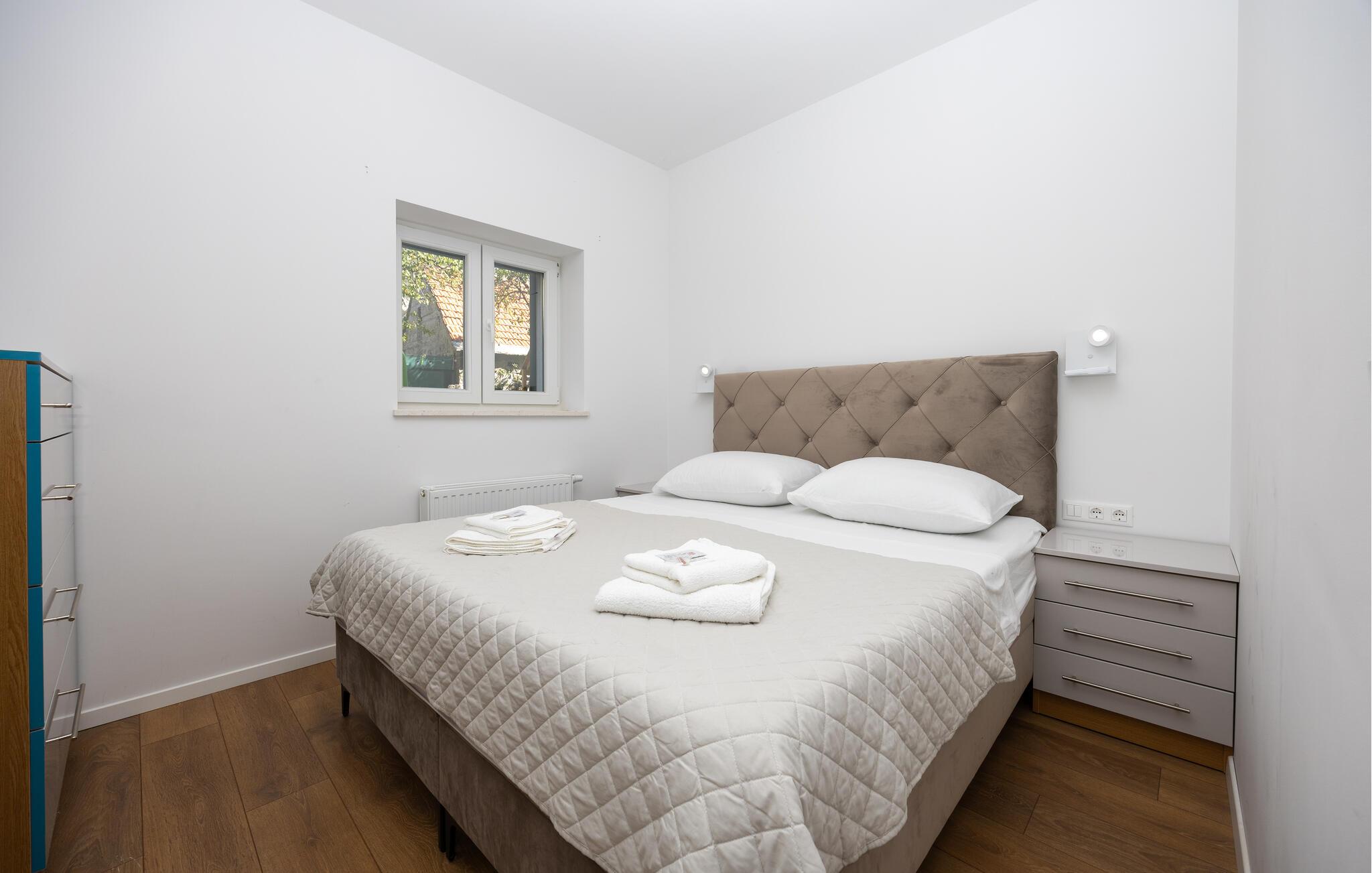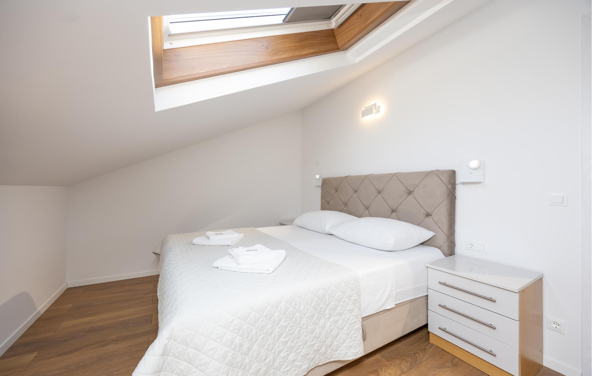 Oplev uforglemmelige ferier i dette luksuriøse feriehus med pool og spabad. Dette indbydende hus kombinerer moderne elegance og rustikke elementer på perfekt vis. Naturstenslook i stuerne, stilfulde møbler og pejs skaber en harmonisk atmosfære, hvor I hurtigt kan genoplade batterierne. Slap af med en kop kaffe eller et hjemmelavet måltid med et glas vin. Hvis I har lyst til motion, er der træningsmaskiner i fitnessrummet. Gå ud på terrassen ved de første solstråler og nyd den vidunderlige udsigt over de grønne, skovklædte bakker. Nyd en god morgenmad og fordyb jer derefter i en god bog. Svøm et par afslappende baner i poolen eller slap af i spabadet. Mød jer til en grillfest om aftenen og afslut dagen i en afslappet atmosfære. Tilbring afslappende timer på strandene ved Omiš Riviera, som er ideelle til svømning, solbadning og snorkling. Udforsk byen Omiš, hvor historiske gader, Cetina-flodens udmunding og det nærliggende hav smelter sammen til en unik atmosfære. Tag på vandretur gennem det omkringliggende bjerglandskab omkring Ostrvica og nyd en storslået udsigt. De, der leder efter noget mere aktivt, kan prøve rafting på Cetina-floden eller deltage i en klatretur.