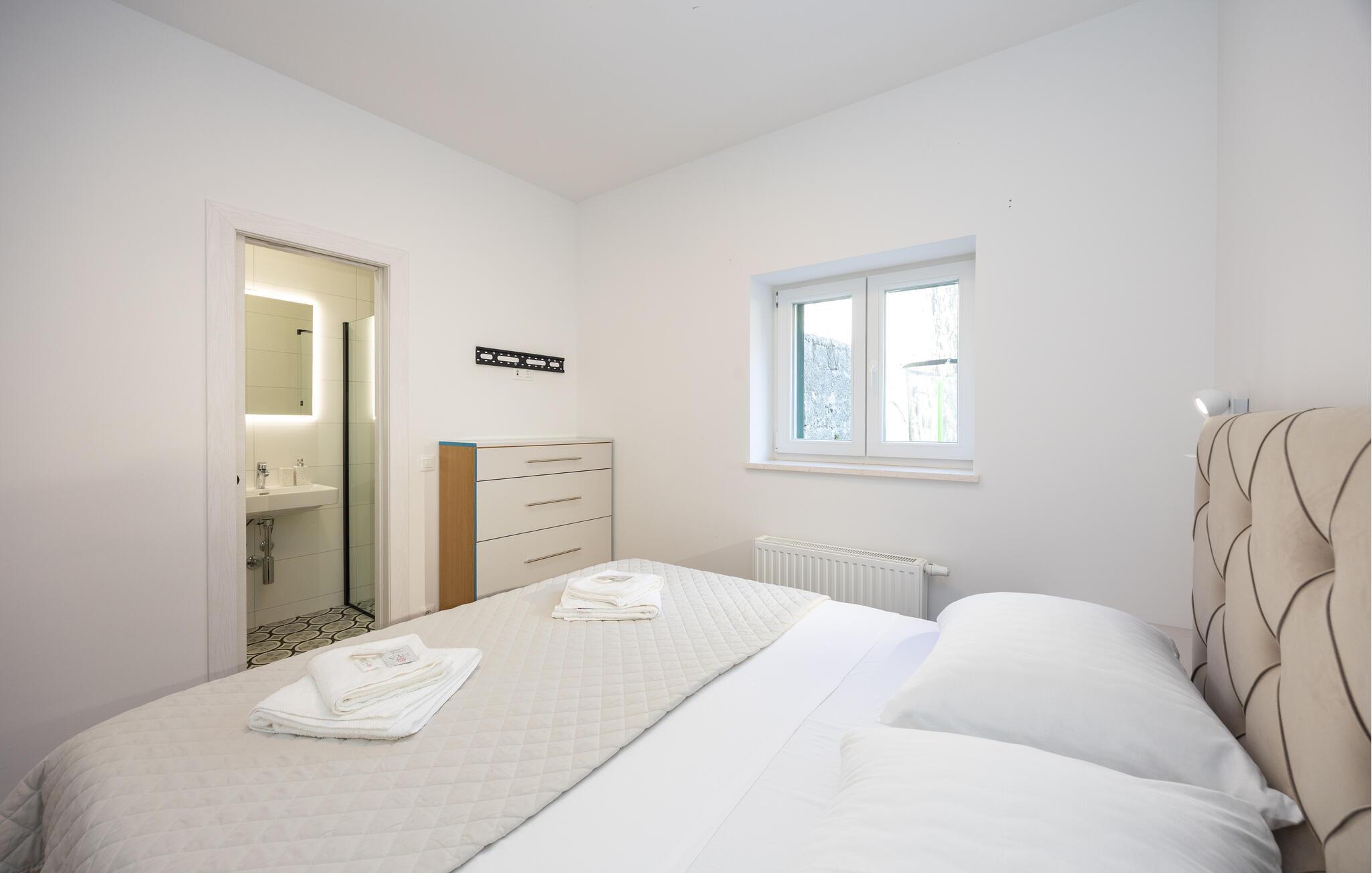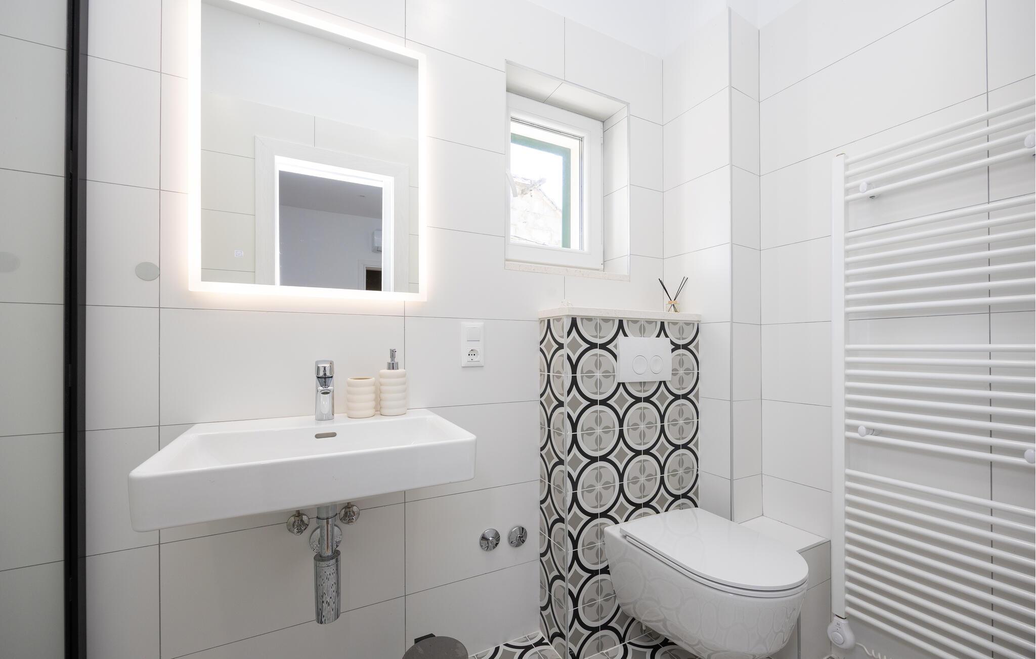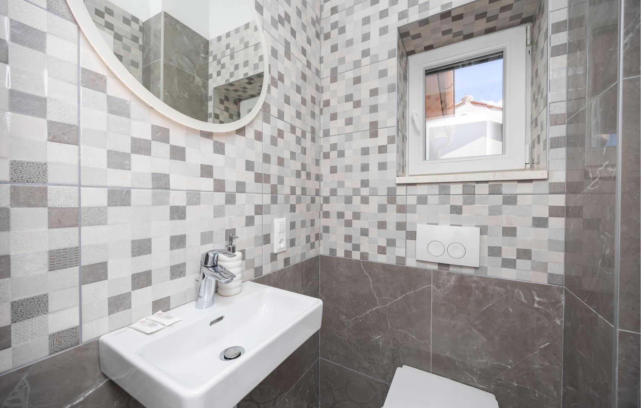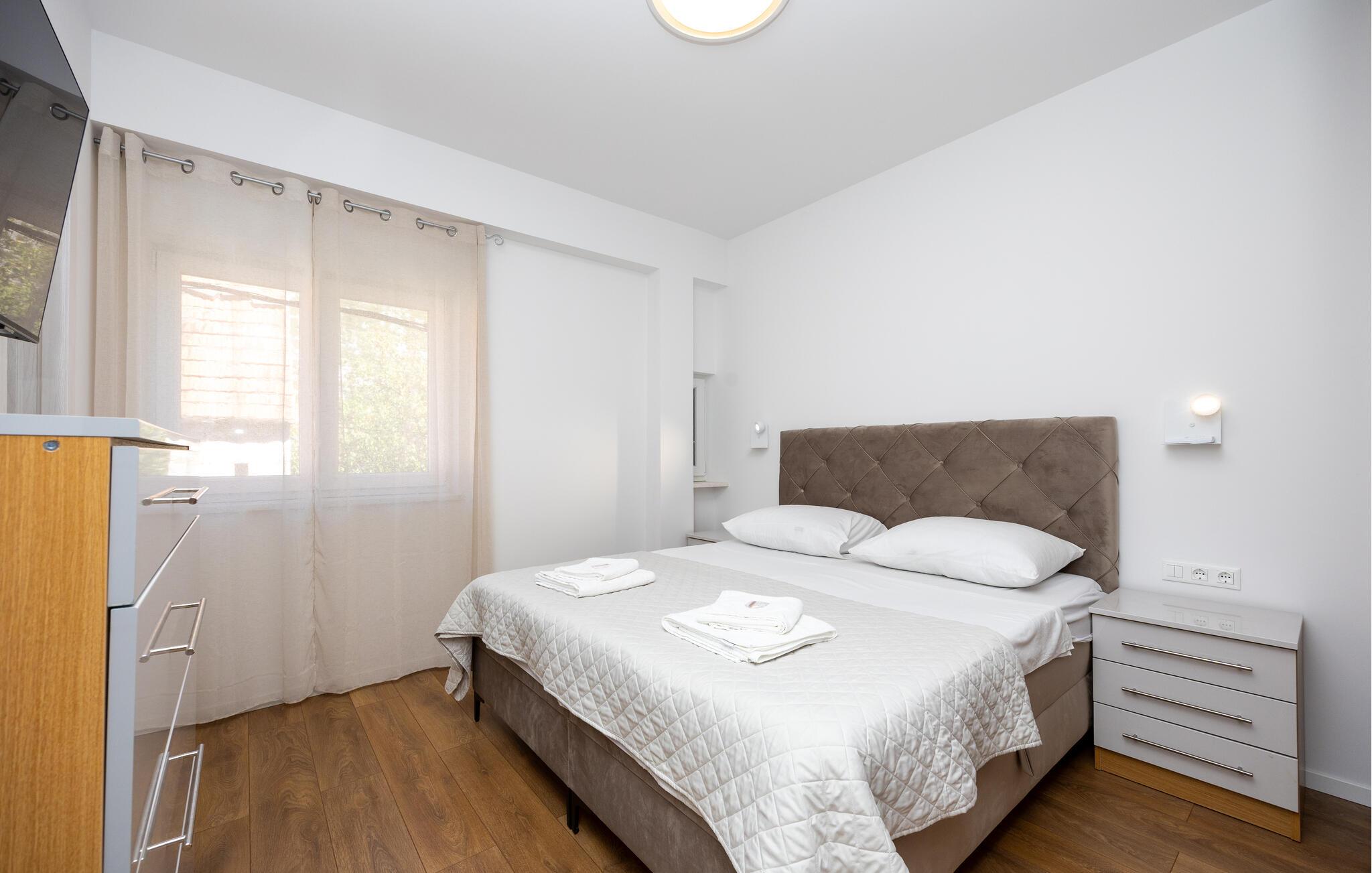 Oplev uforglemmelige ferier i dette luksuriøse feriehus med pool og spabad. Dette indbydende hus kombinerer moderne elegance og rustikke elementer på perfekt vis. Naturstenslook i stuerne, stilfulde møbler og pejs skaber en harmonisk atmosfære, hvor I hurtigt kan genoplade batterierne. Slap af med en kop kaffe eller et hjemmelavet måltid med et glas vin. Hvis I har lyst til motion, er der træningsmaskiner i fitnessrummet. Gå ud på terrassen ved de første solstråler og nyd den vidunderlige udsigt over de grønne, skovklædte bakker. Nyd en god morgenmad og fordyb jer derefter i en god bog. Svøm et par afslappende baner i poolen eller slap af i spabadet. Mød jer til en grillfest om aftenen og afslut dagen i en afslappet atmosfære. Tilbring afslappende timer på strandene ved Omiš Riviera, som er ideelle til svømning, solbadning og snorkling. Udforsk byen Omiš, hvor historiske gader, Cetina-flodens udmunding og det nærliggende hav smelter sammen til en unik atmosfære. Tag på vandretur gennem det omkringliggende bjerglandskab omkring Ostrvica og nyd en storslået udsigt. De, der leder efter noget mere aktivt, kan prøve rafting på Cetina-floden eller deltage i en klatretur.