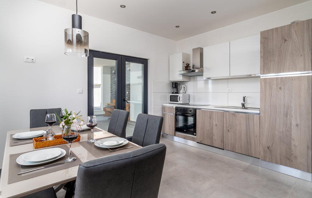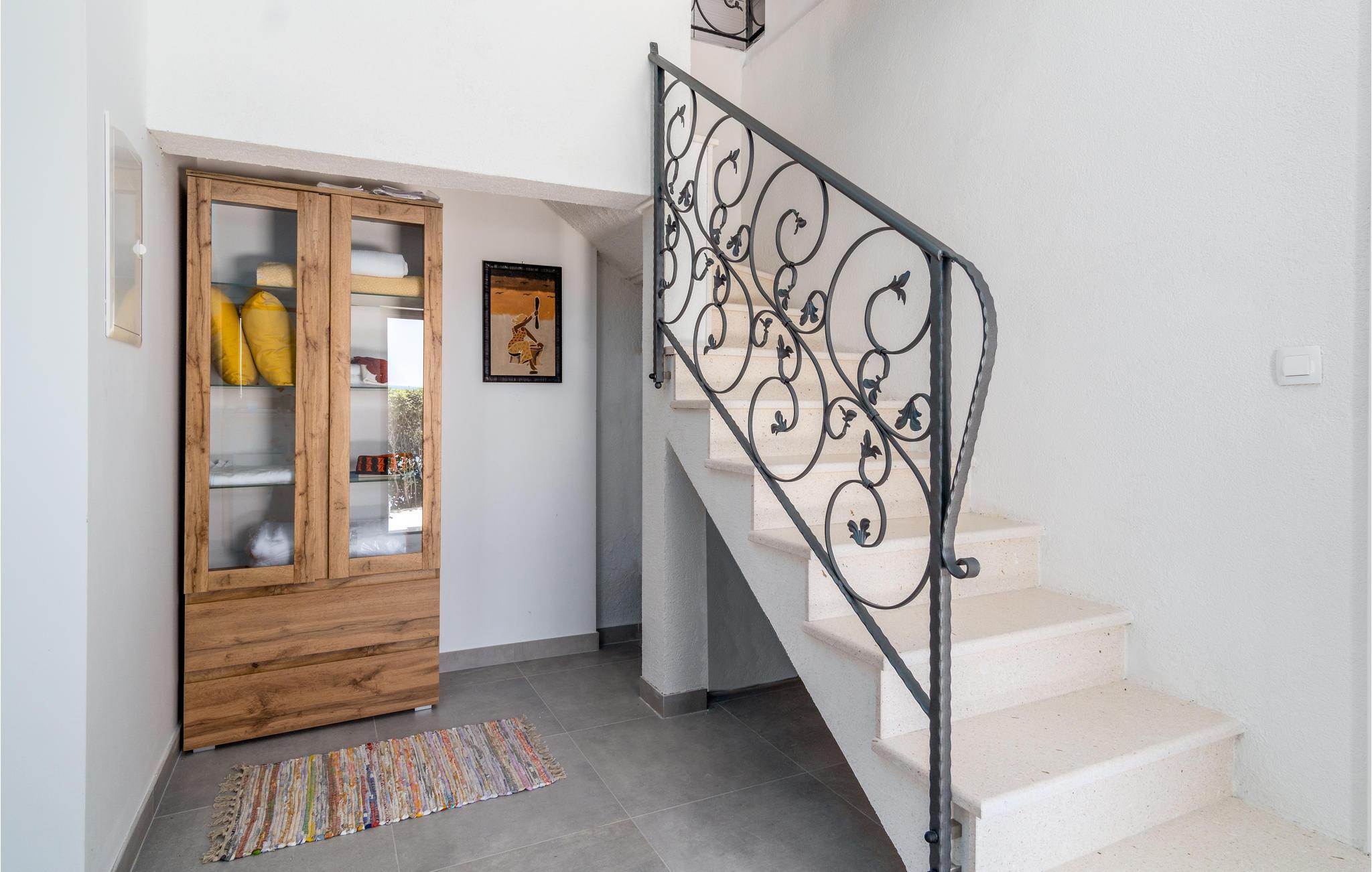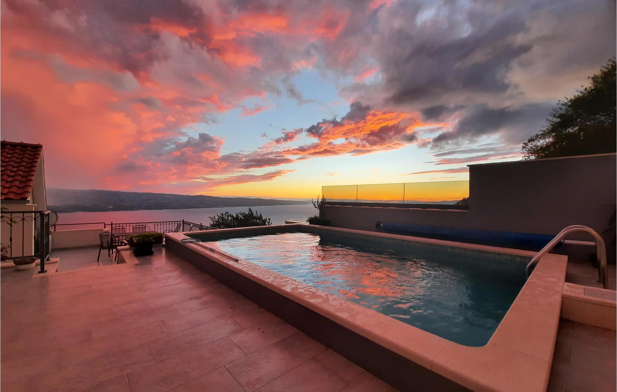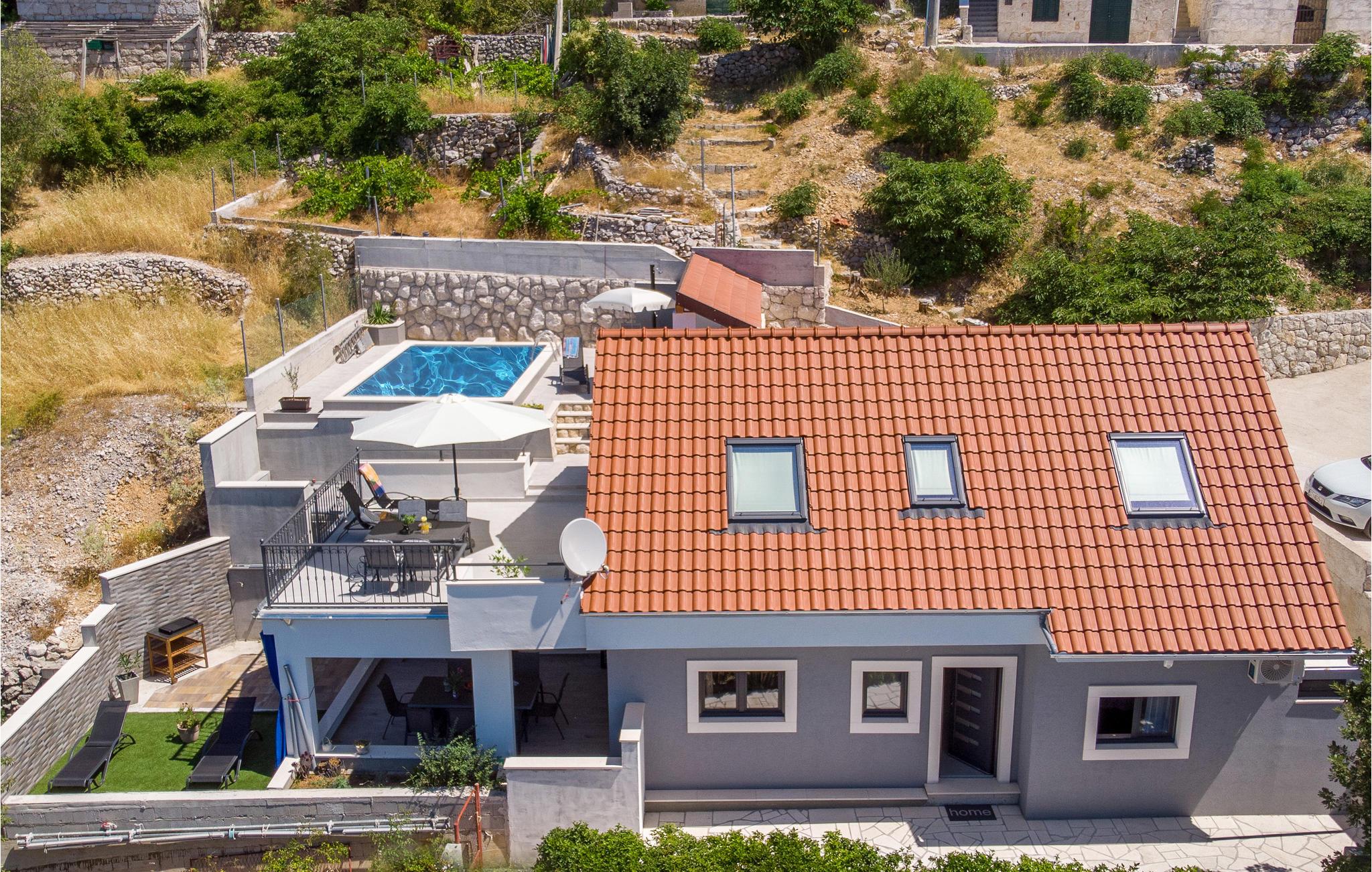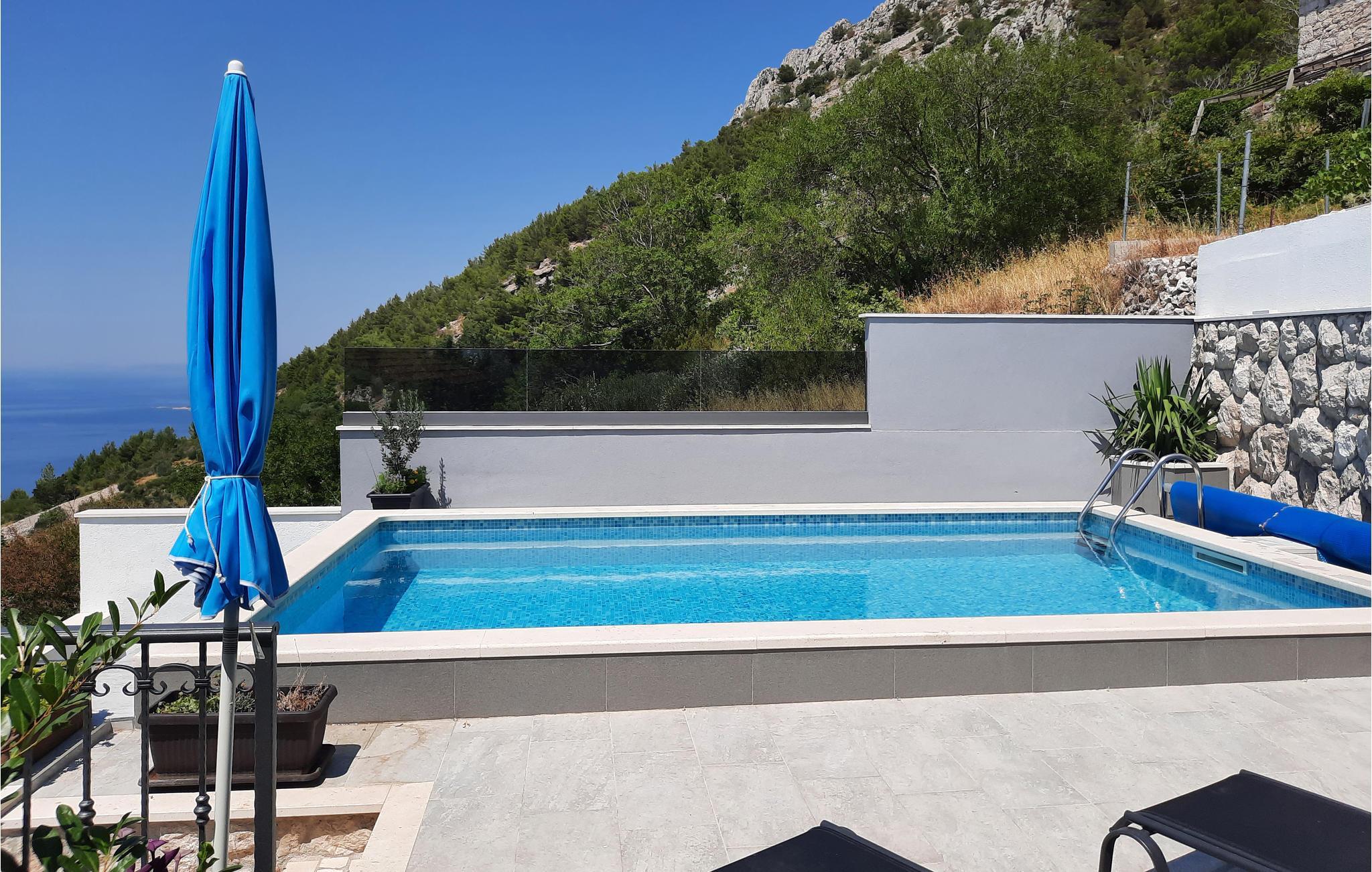 en smuk beliggenhed, i et kuperet terræn ved foden af bjerget, byder dette smukke hus velkommen med en swimmingpool og en vidunderlig panoramaudsigt over havet. Velkommen til dette skønne feriehus i landsbyen Stanici, som I kan nå via smalle og snoede veje. I jeres personlige oase af ro kan I finde jer godt tilpas på de to etager og få adgang til de to etager via indvendige og udvendige trapper. Møblerne er komfortable, lyse og venlige og tilbyder jer de perfekte rammer til at føle jer godt tilpas. Nyd flere terrasser, hvor I kan sidde, læse en bog eller grille og spise om aftenen. Hop i poolen og tag derefter solbad. Aftenerne runder jeres feriedag af med uforglemmelige solnedgange og et glas vin. De nærliggende stenstrande anses for at være de smukkeste på Rivieraen, og den maleriske piratby Omis ligger ved mundingen af Cetina-floden, hvis kløfter giver mulighed for adskillige adrenalinsportsgrene såsom rafting, vandreture, klatring, canyoning, paragliding og meget mere . Tag et dykkerkursus og oplev den smukke undervandsverden, eller lej en båd for at udforske området fra vandoverfladen. Det er lige meget om det er ren afslapning eller varierede aktiviteter. Enhver ferierejsendes hjerte vil med garanti slå hurtigere her.