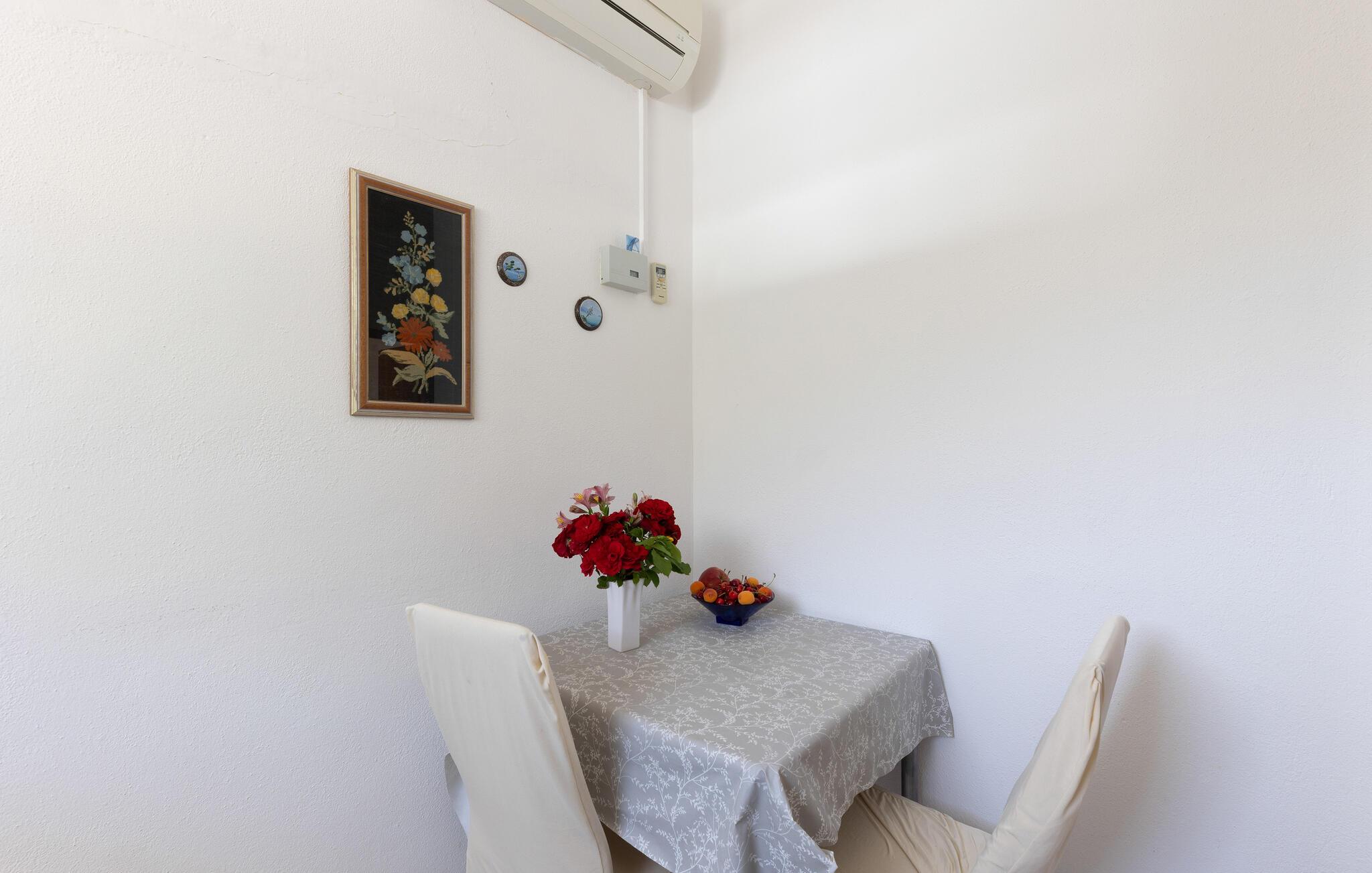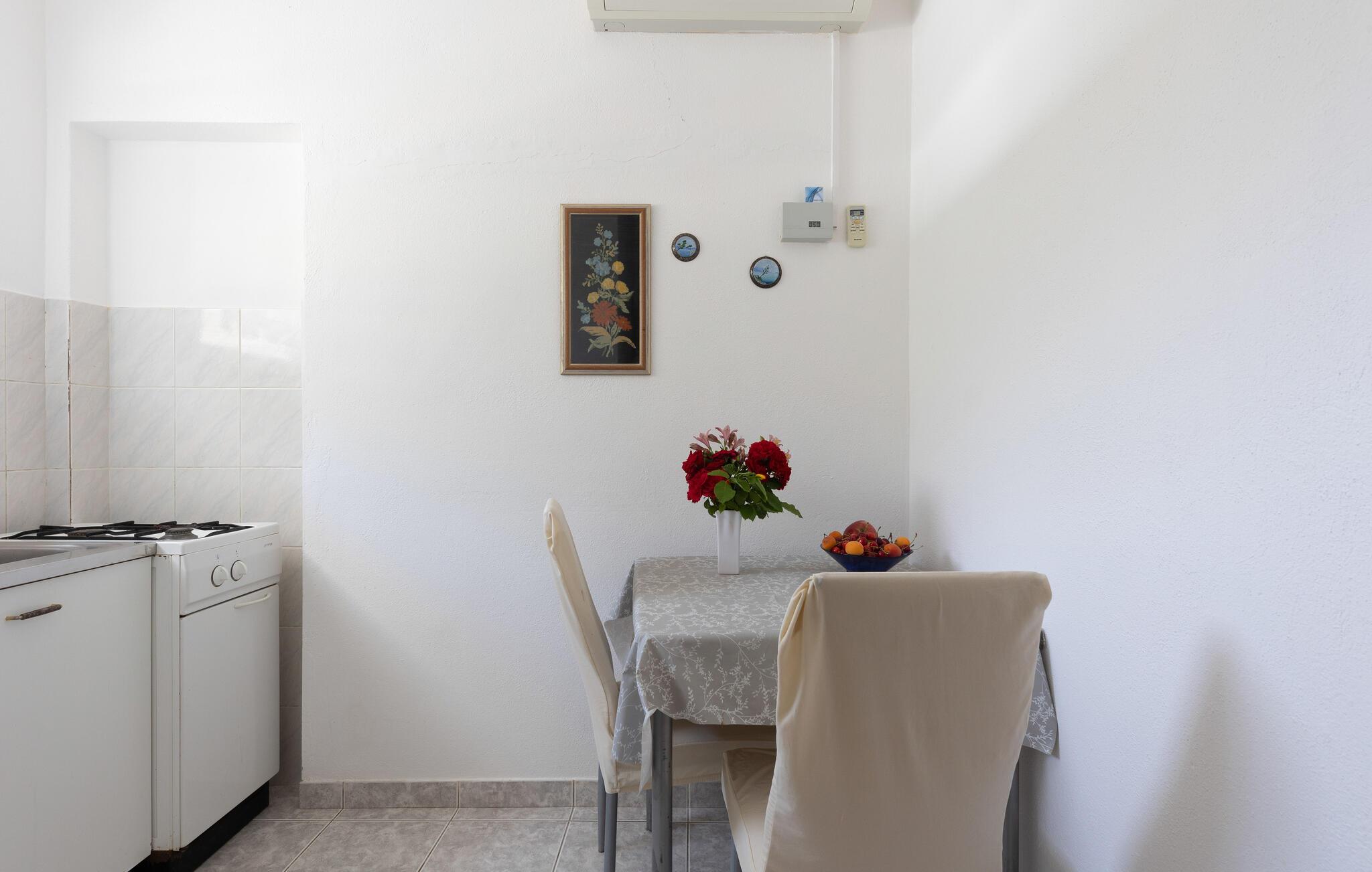 Denne lyse og velholdte lejlighed ligger kun nogle få skridt fra Adriaterhavets turkisblå vand. Forkæl hinanden med lækre retter, lad den behagelige brise blæse gennem værelserne under måltiderne, og planlæg jeres aktiviteter for den kommende dag ved spisebordet.