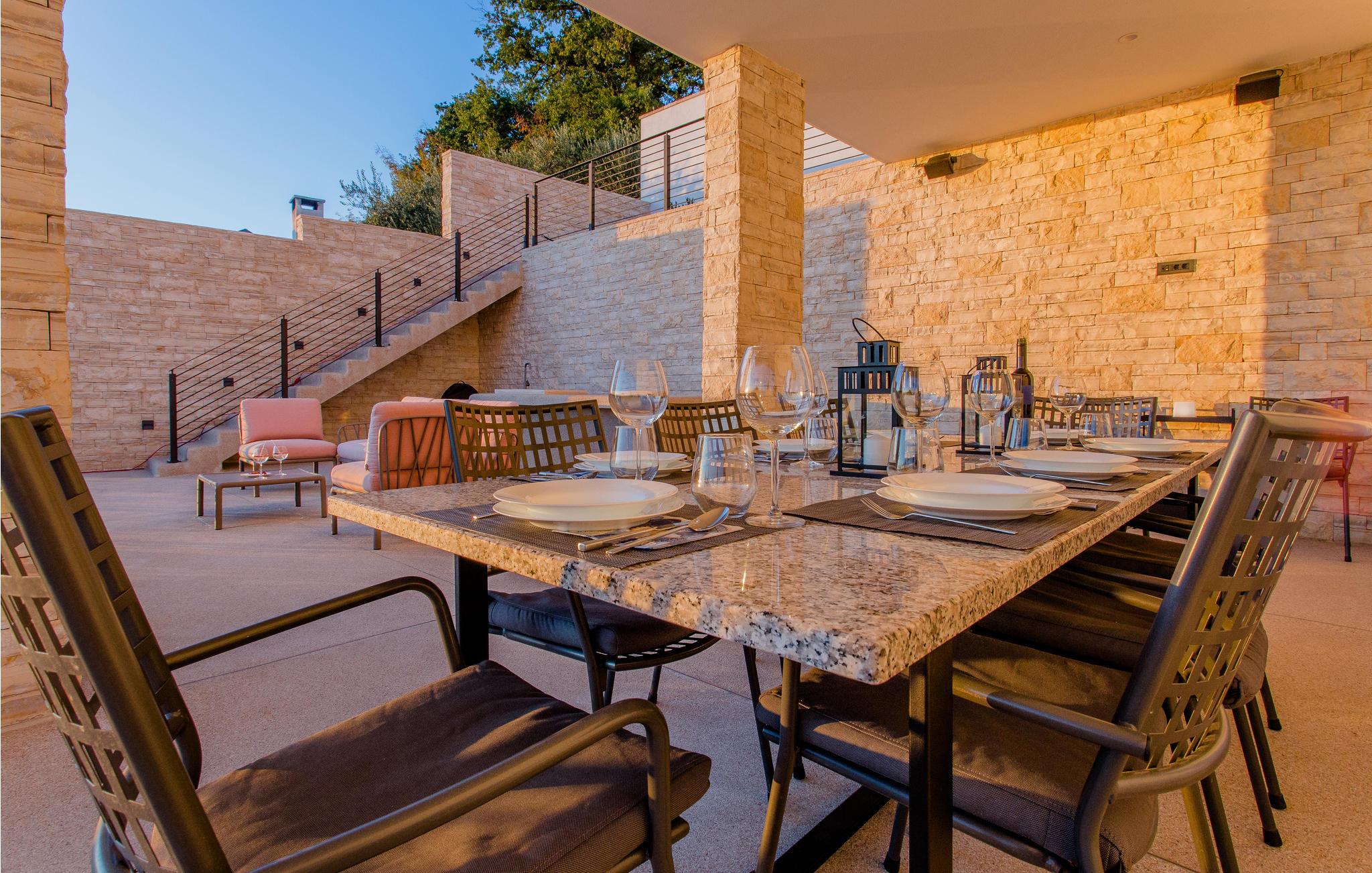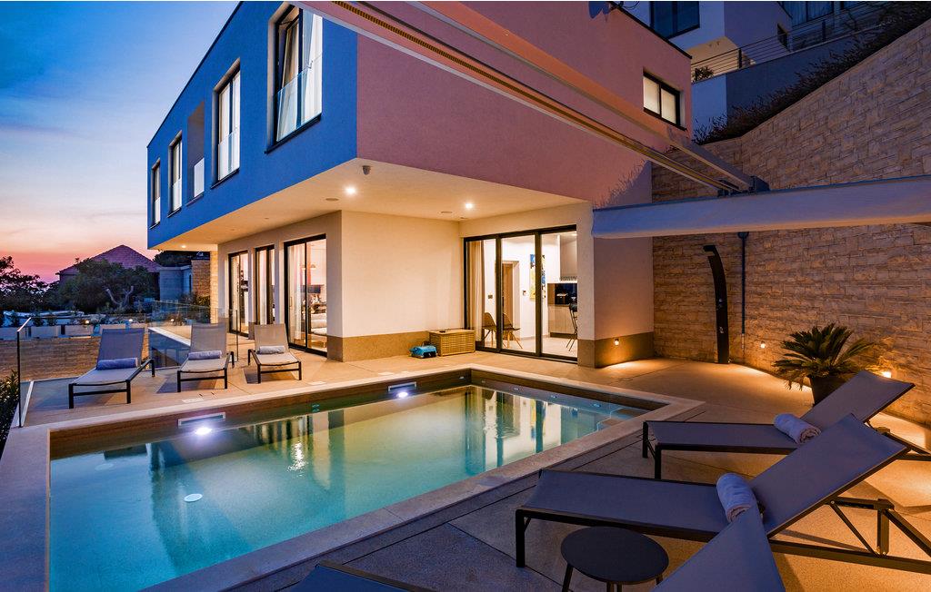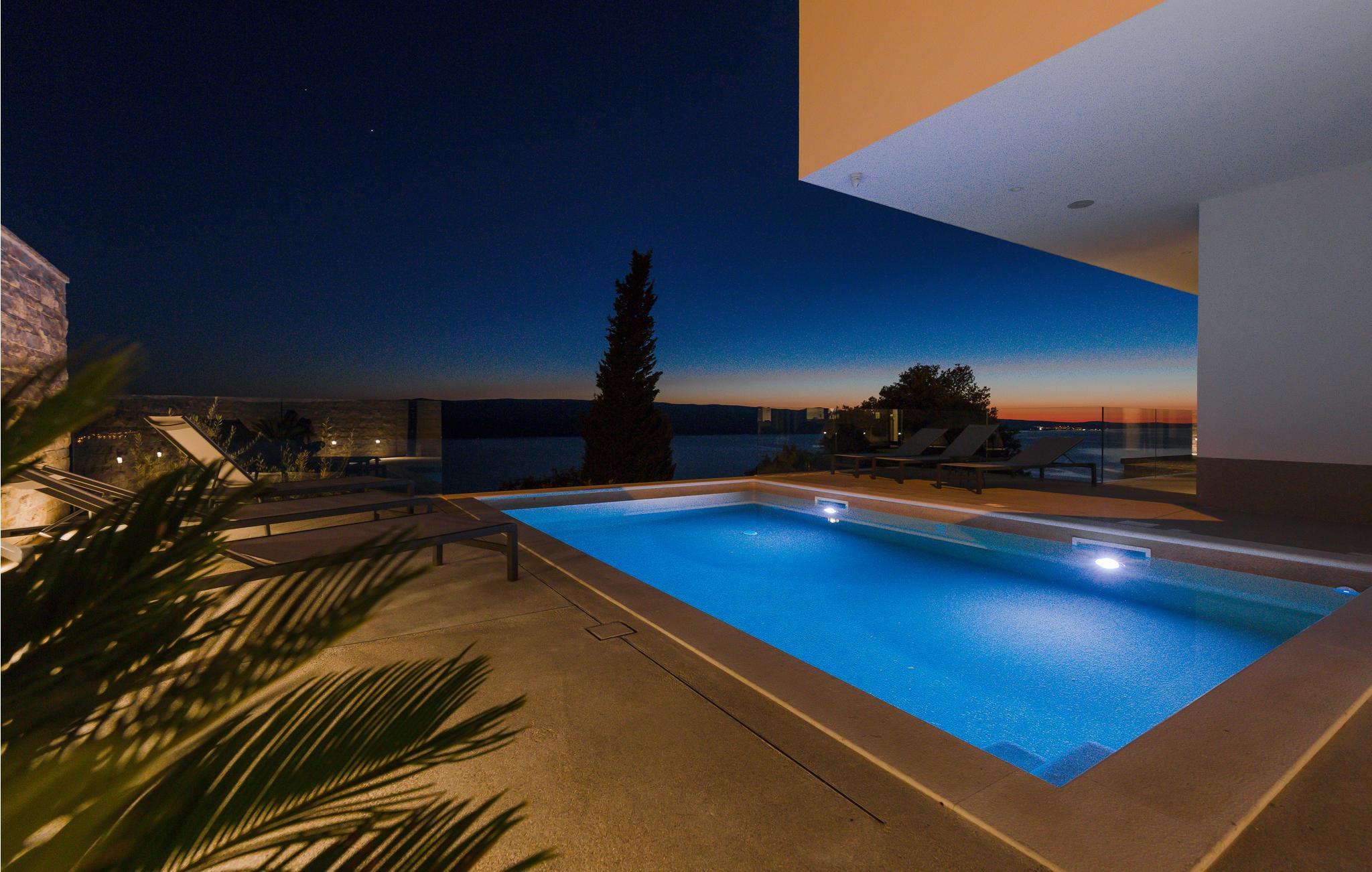Gå en tur hen over terrassen om morgenen og tag en dukkert i poolen med udsigt til havet og øen Brac. Det flotte udendørsområde omfatter flere terrasser og charmerende kroge, hvor I kan nyde dagens kop første kaffe med udsigt til havet.