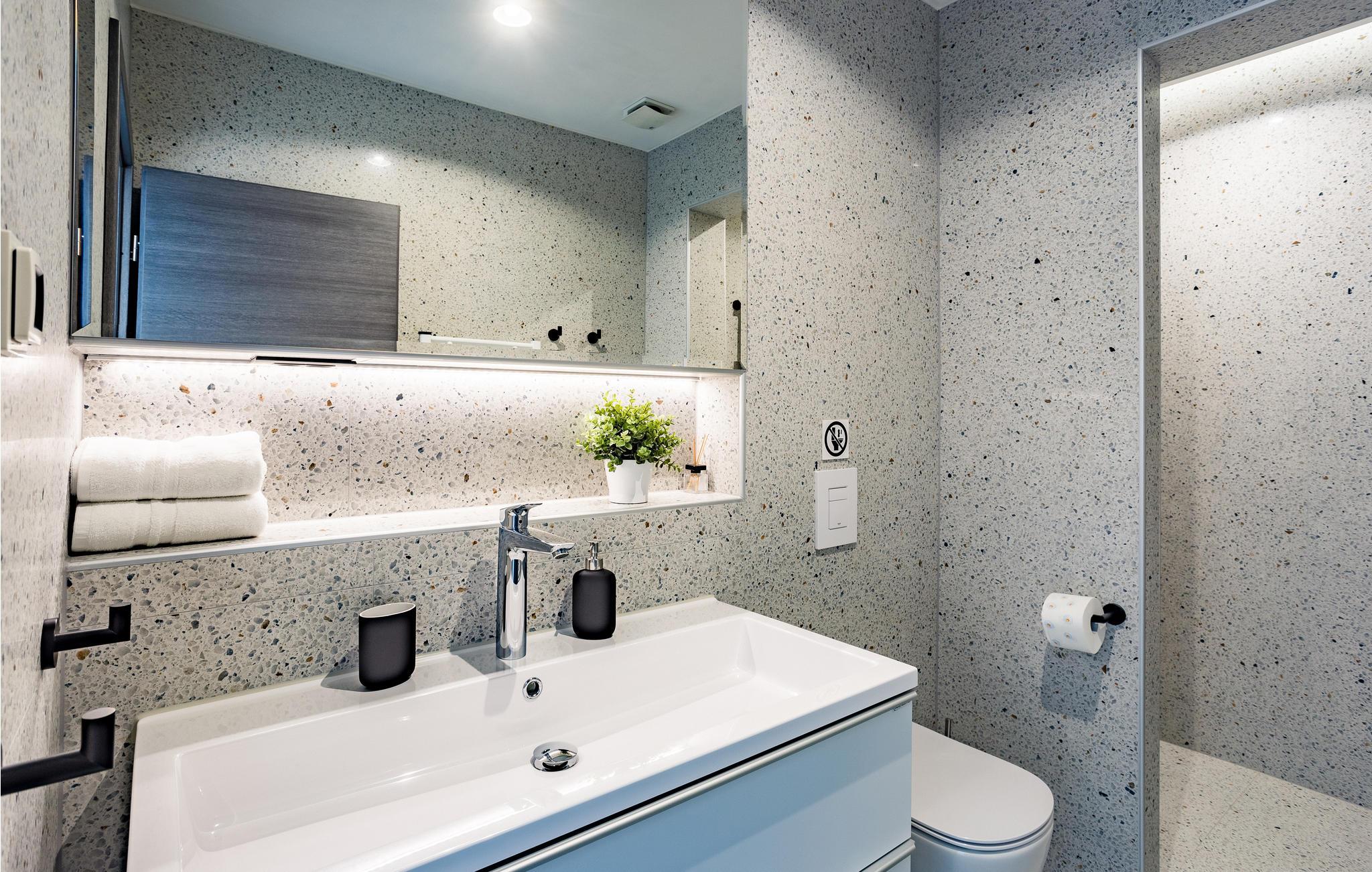 Badeværelse 7m2 (nr. 5) - WC. Varmt og koldt vand. Bruser
