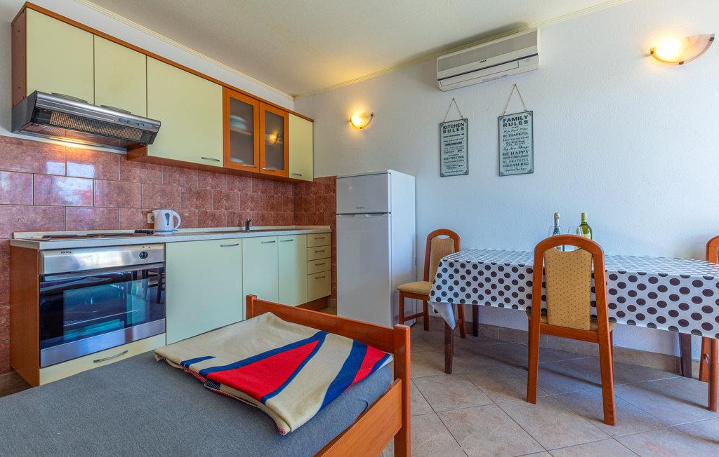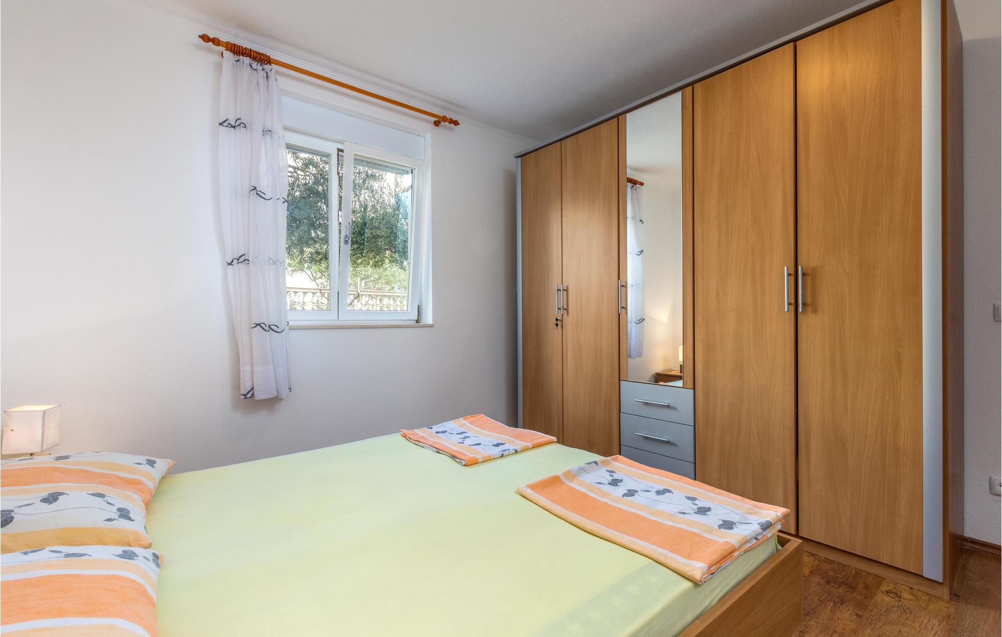 Den er enkelt møbleret og byder på et soveværelse med en dobbeltseng. De to ekstra senge i stuen sørger for, at der er plads til op mod fire personer til en dejlig ferie.