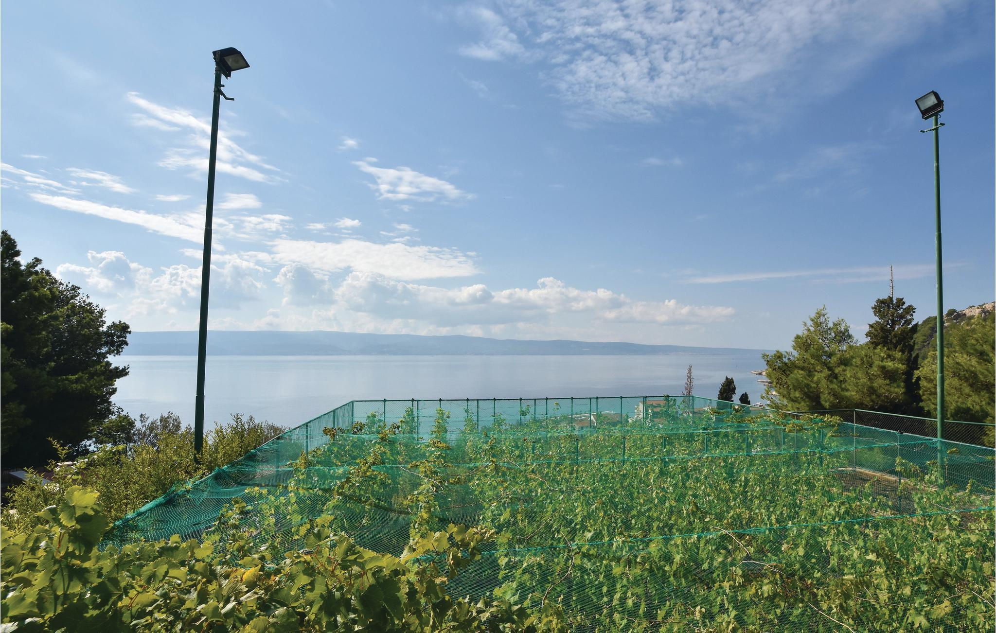 Moderne hus med masser af ekstraudstyr. Lejlighederne er forbundet via trapper og en elevator. Det fuldt klimatiserede hus ligger på en stor grund, og giver jer alle forudsætningerne for en afslappende og rolig ferie. Den hyggelige stue og indendørs pool i stueetagen inviterer dig til at slappe af fra hverdagens stress og jag. En stor udendørs terrasse med bar og grill er placeret ved siden af ??hovedhuset. Ved den store udendørs swimmingpool har du en fabelagtig panoramaudsigt over bugten ved Omis. På petanque eller tennisbanen kan voksne og børn dyste mod hinanden. Du kan også bruge tennisbanen, der har professionelt udstyr. I skyggen af ??fyrretræerne kan du på forskellige terrasser finde afkøling på de varmeste dage. Grunden har et lukket parkeringshus, hvor du kan parkere din bil. Administratoren bor i nærheden og er gerne behjælpelig med at arrangere ture til de dalmatiske øer. Hele Omis' Riviera byder på alt, hvad du behøver for en afslappende familieferie. Der er stadig steder, hvor du kan være uforstyrret, også i højsæsonen. Med bil kan man køre langs den smukke kystvej og nyde fabelagtig udsigt over til øen Brac. Nyd Middelhavet charme i de små kystbyer og gå ind i de små Konobars og restauranter. Du kan virkelig opleve de omkringliggende landsbyer, før du drejer til højre fra hovedvejen i byen. Du vil, så snart du forlader det pulserende liv på gaden, straks finde den fred, du søger.