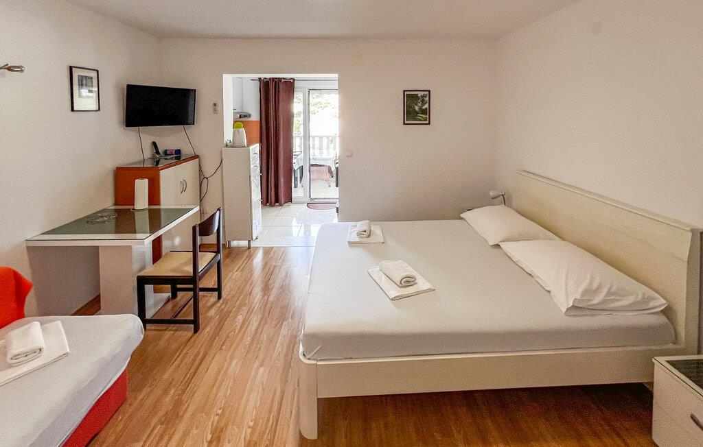 Denne lejlighed er praktisk indrettet og tilbyder alt, hvad I behøver for et behageligt ophold. Tilbered små feriemåltider i det kompakte køkken, der er udstyret med alt, hvad I behøver til hverdagen og nyd måltiderne sammen i den komfortable spiseplads. Bagefter kan I slappe af med en god bog eller planlægge jeres næste tur til Adriaterhavskysten.