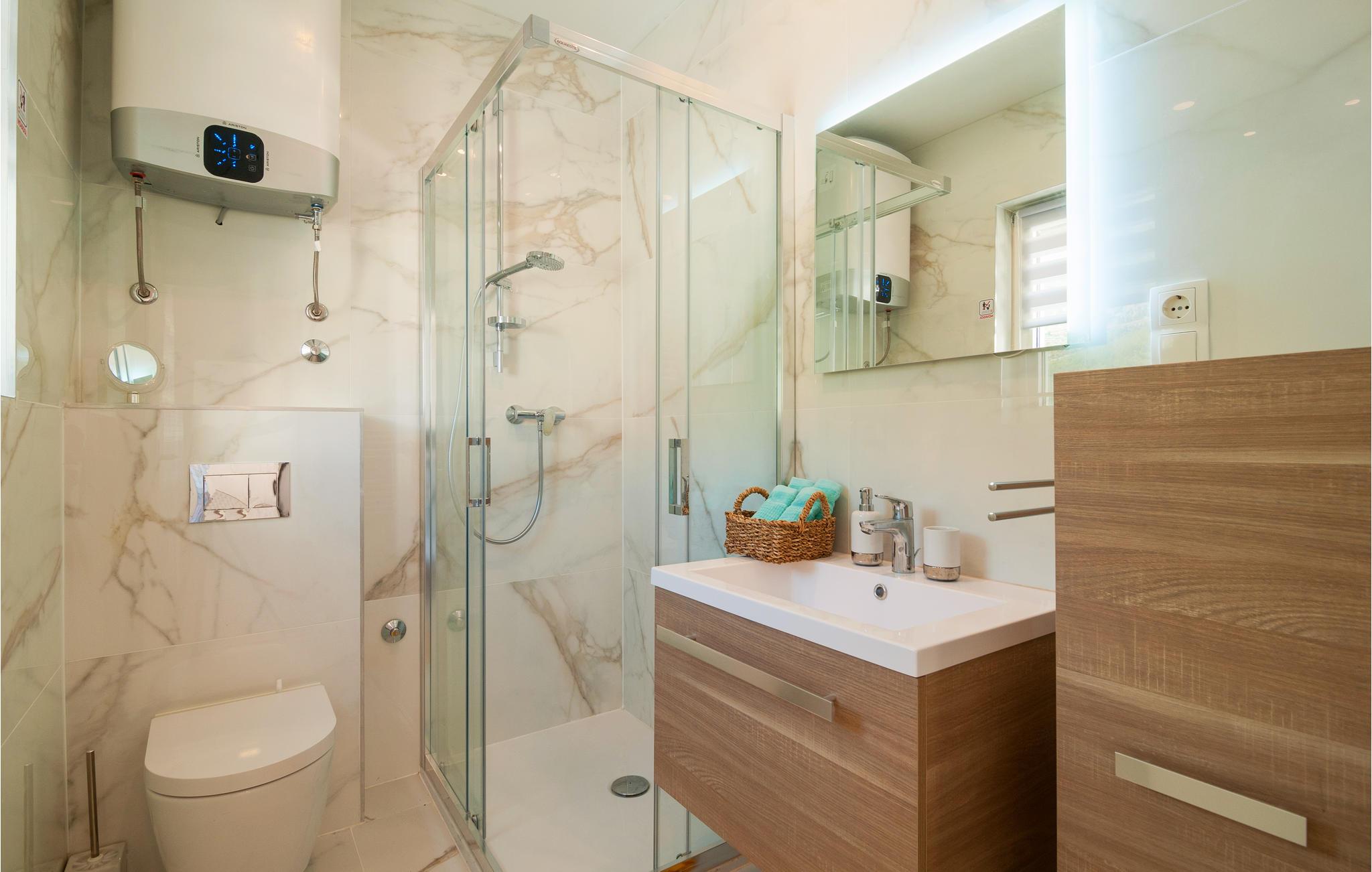 Stranden ligger kun få skridt fra lejligheden. Vi anbefaler bestemt et besøg i den nærliggende piratby Omis, Cetina-flodens kløft, det kulturelle og historiske centrum - Split eller ture til øerne Brac, Hvar og Vis.