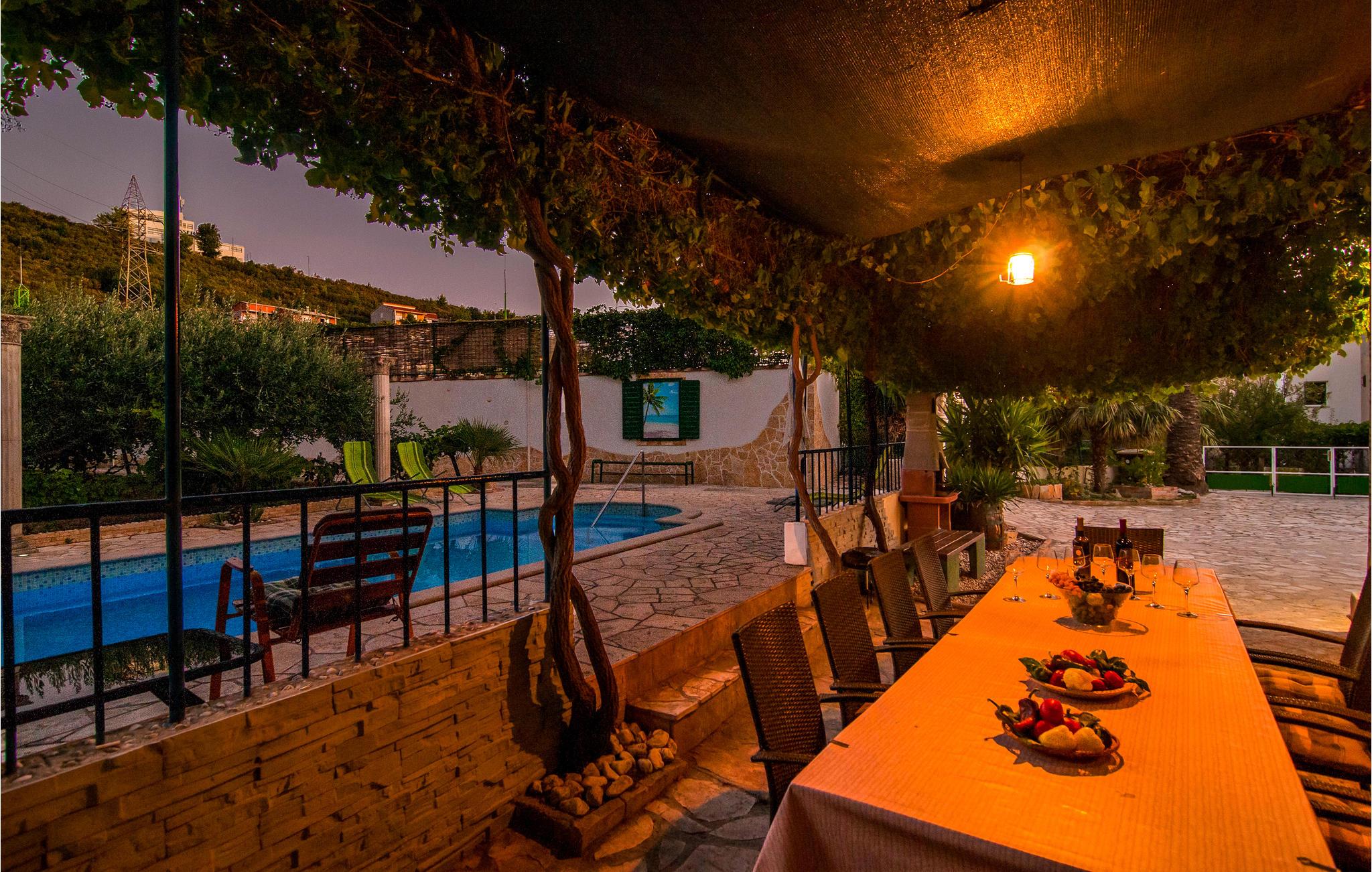 Dette enkle feriehus der er indrettet med stor kærlighed helt ned i de små detaljer, ligger i en lille landsby i nærheden af havet. Den lukkede naturgrund med legeredskaber er giver de bedste forudsætninger for en afslappende familieferie. Om sommeren er det skønt at tage en svømmetur i poolen. Vil I svømme i havet ligger den nærmeste sandstrand kun 1 km væk. På grunden ligger en konoba, som kan benyttes efter aftale med ejeren. Restauranterne i nærheden byder på lokale, kulinariske oplevelser. Besøg Omis med mange underholdningsmuligheder samt byen Split, med sit dejlige Diokletians Palads.
