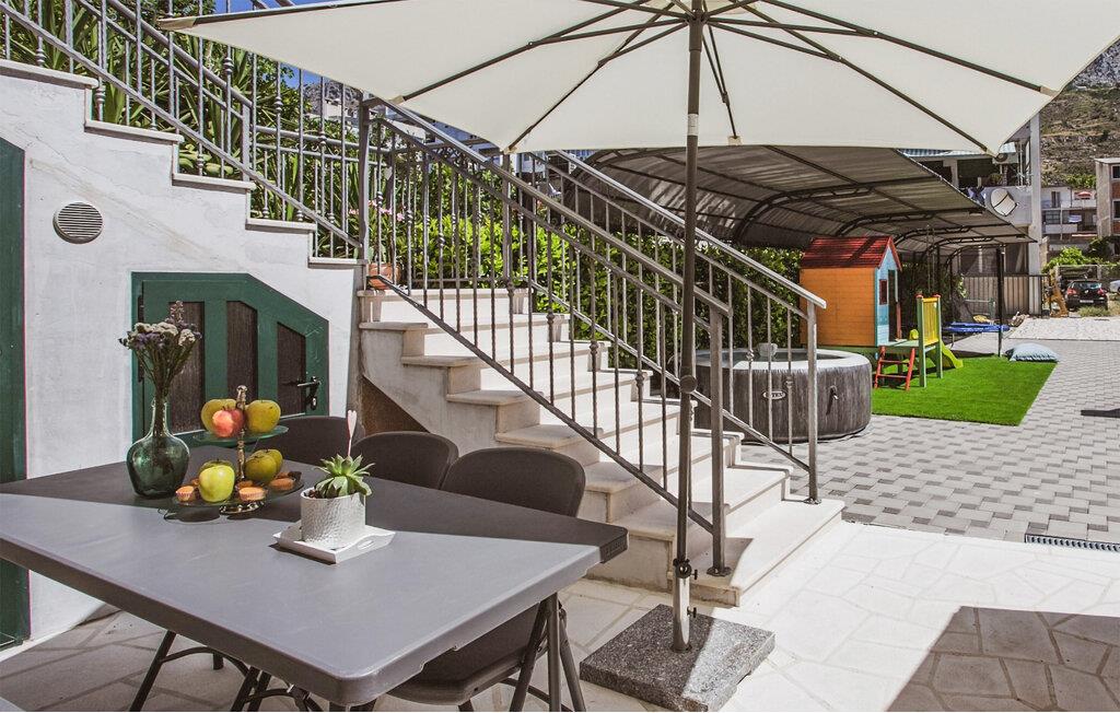 Glæd jer til jeres næste feriehusferie i Dugi Rat, en charmerende kystby nær Omis og Split. I dette skønt indrettede feriehus kan I begynde dagene med morgenmad i et af de hyggelige udendørsarealer. I kan også slappe af i den rummelige opholdsstue med masser af komfortable siddepladser eller tilberede et lækkert måltid i det smukke, åbne køkken. Til omgængelige aftener er terrassen med loungemøbler det optimale sted at afslutte dagen med et glas vin.