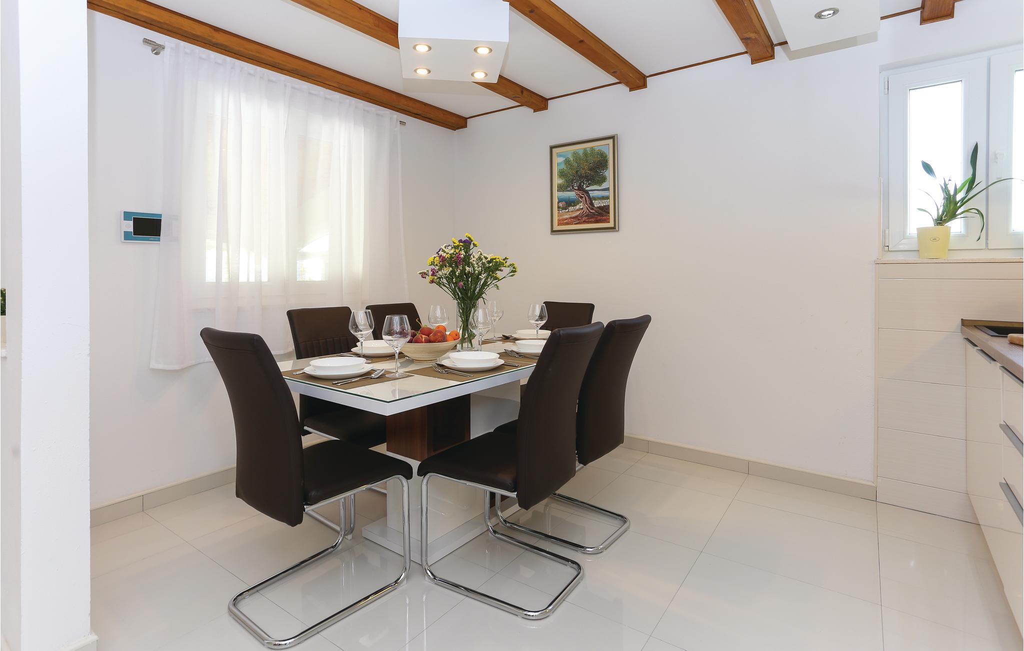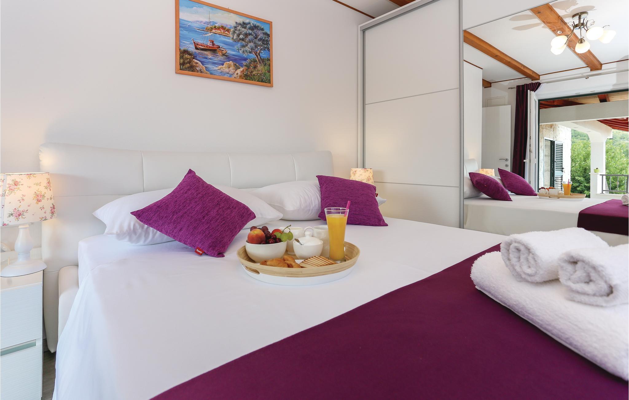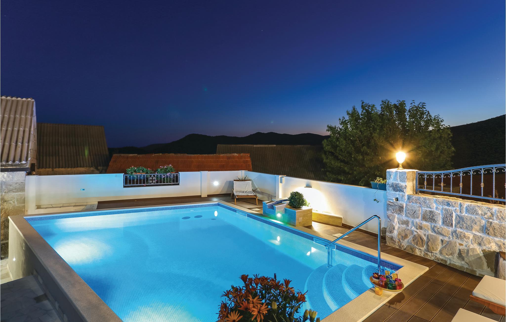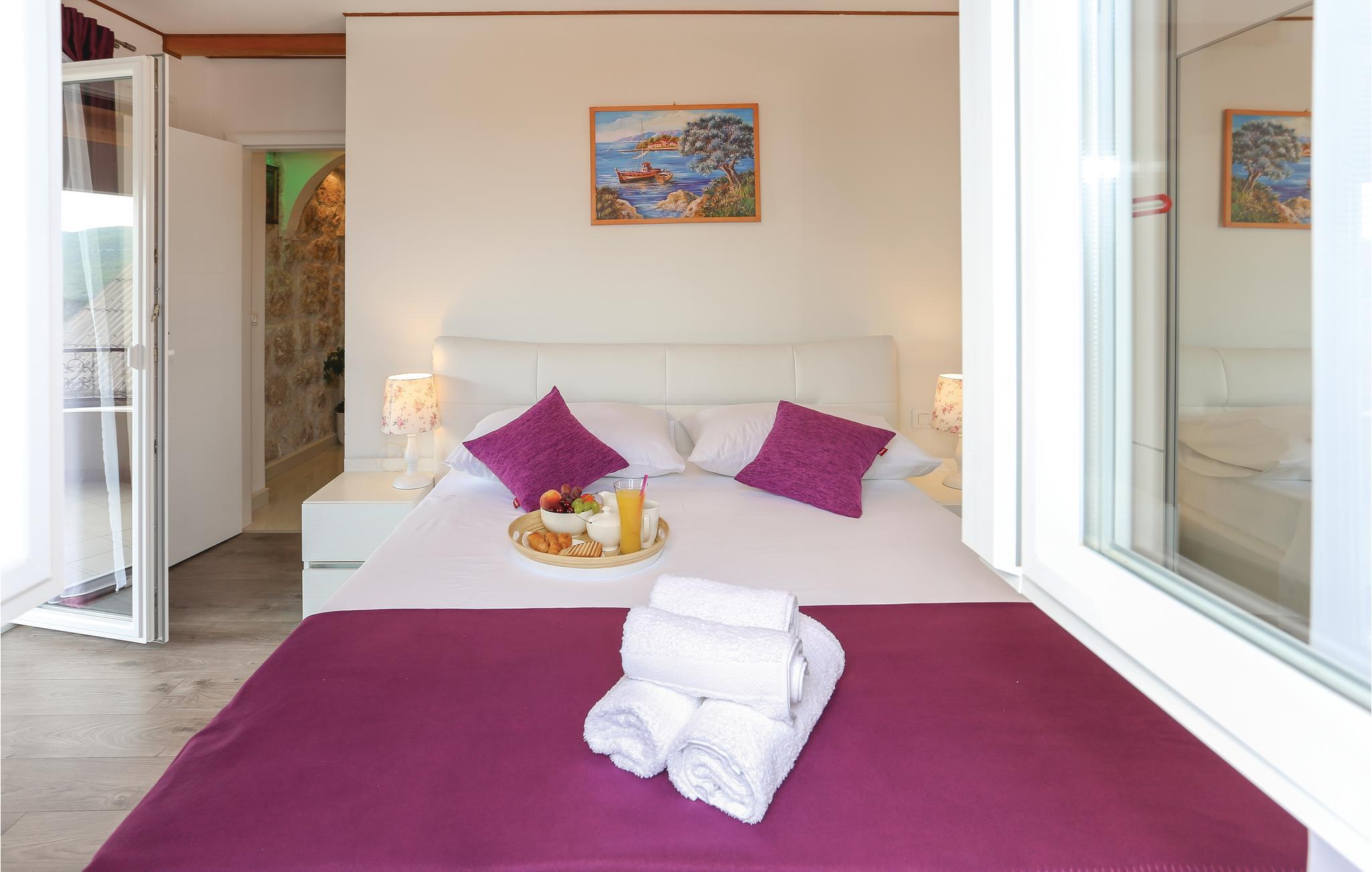 Skønt gennemrenoveret hus af sten, der ligger i landsbyen Gata, for foden af bjerget Mosor, med en betagende udsigt over det smukke landskab i Omis bagland. Huset er fordelt på to etager, som er forbundet via udendørs trappe – i stueplan er der en lille enkel lejlighed med et soveværelse, på første sal er der en mere komfortabel lejlighed med to soveværelser. I haven dominerer den dejlige swimmingpool, som I kan hoppe i lige så tit og lige når I har lyst. Der er også en konoba med en grill, hvor I kan slappe af med et godt glas vin, mens maden bliver færdig over gløderne. I bor ikke lagt fra en vandresti og mange aktivitetsmuligheder: I kan cykle, rafte og zip-line over Cetinafloden og gå lange ture. For længe siden var Gata den vigtigste by I Poljicka republikken, så besøg museet og se de mange velbevarede eksempler fra den spændende tid i byens historie.
