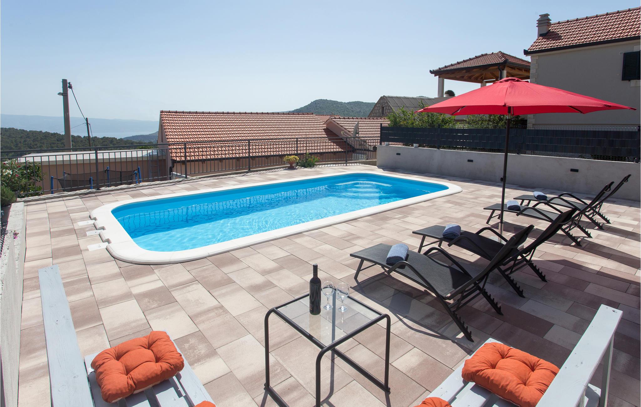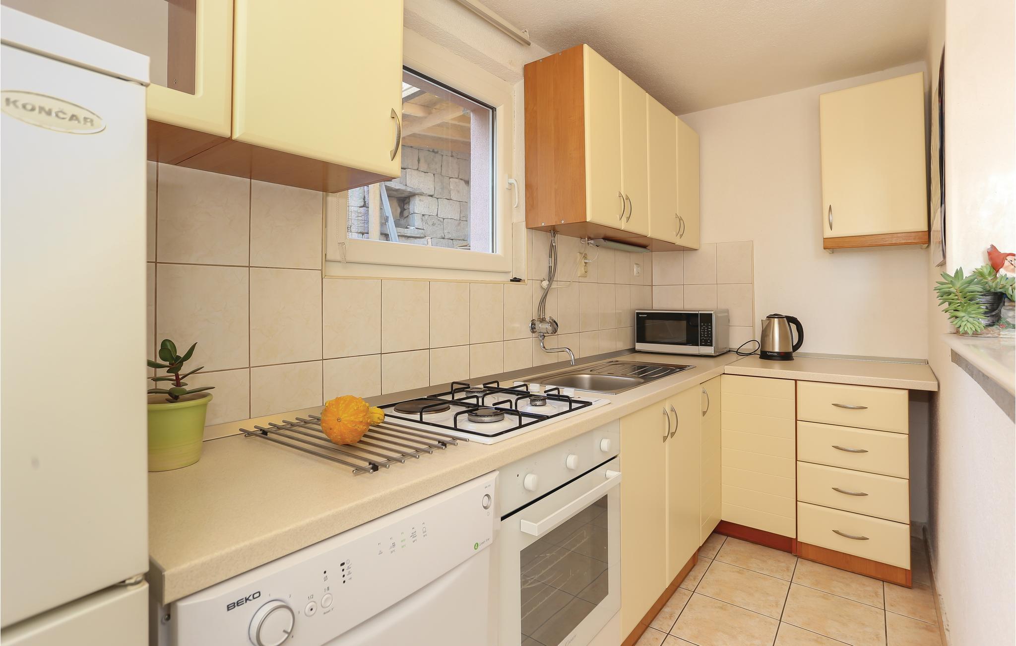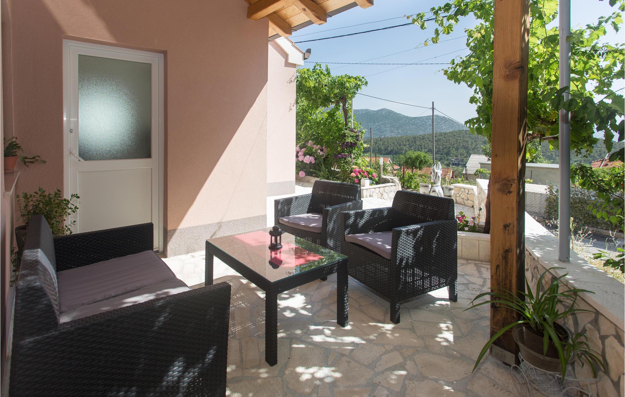 Her har I to soveværelser, badeværelse og et køkken åbent til stuen til rådighed. Bag huset ligger haven med pool, samt forskellige frugttræer, som I gerne må plukke af. På grillen, kan I lave lækre retter af de råvarer I køber på det lokale marked. Pak badehåndklædet, de skønne strande og havet ligger blot 3,3 km væk. Besøg også Omis, en livlig sommerby med mange former for underholdning i løbet af højsæsonen.