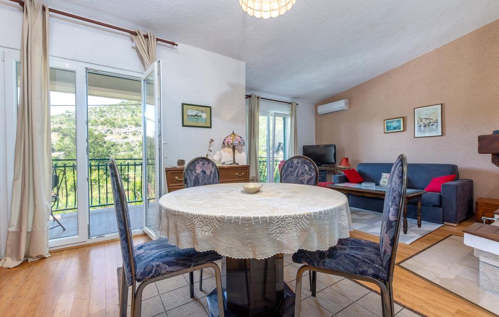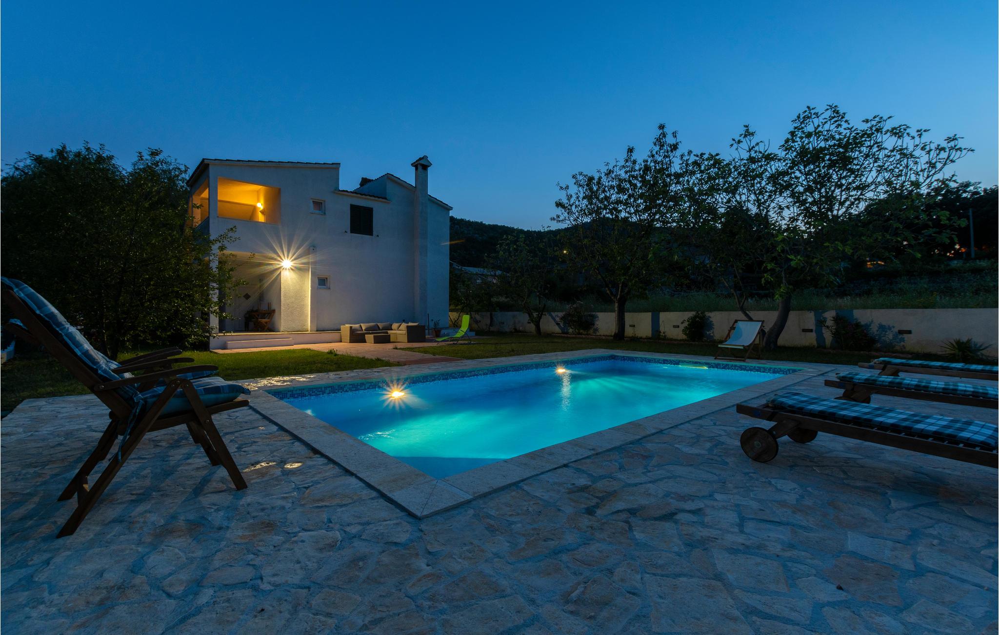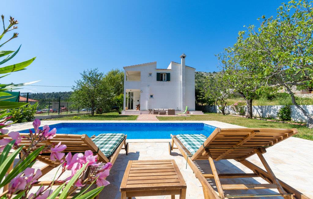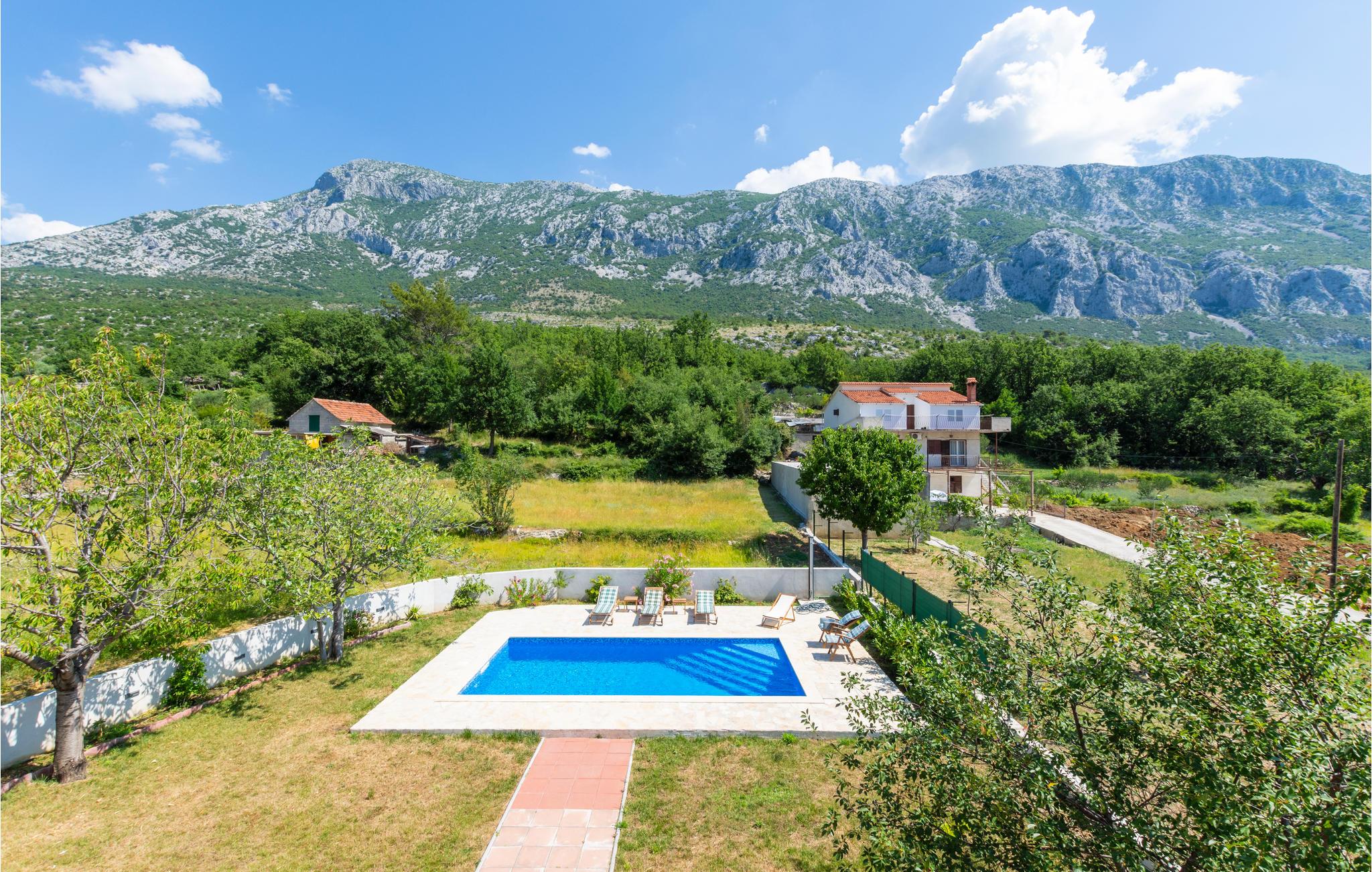 I en lille og grønne oase ligger landsbyen Gata og dette pæne feriehus med pool. Det består af tre soveværelser, en rummelig dagligstue med kamin og en stor terrasse på første sal, mens der er et køkken med en stor kamin og et opholdsrum i stueetagen. Der er kun adgang til begge etager udefra. Foran huset har I grillen, haven og græsplænen. Her kan I lave dejlig mad og nyde den i det fri. Byen Omis med de herlige kiselstrande og et omfangsrigt program inden for underholdning ligger kun fem km væk.