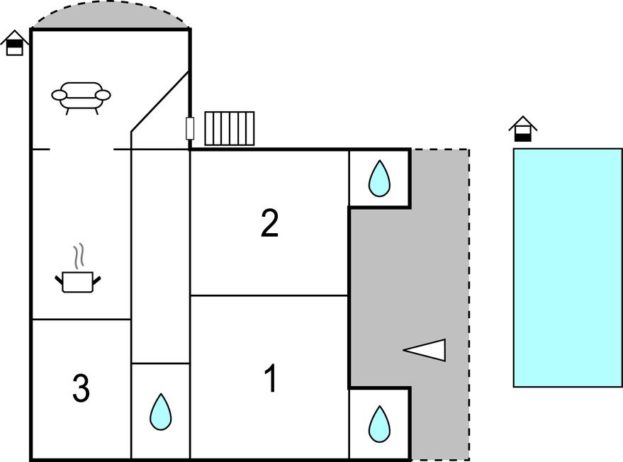 Opholdsstue/køkken - 2 Sovepladser. (Sofa, madras eller lignende).