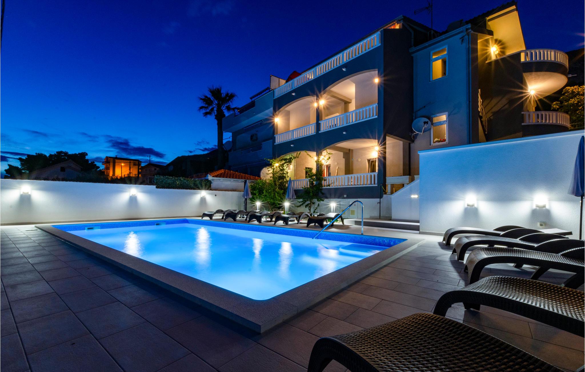 I et hus i et bakket område venter de disse komfortable ferielejligheder. CDF046 ligger på første sal med dejlig altan, med dejlig altan og herlig udsigt til havet. I kan også have timevis af badesjov i den fælles pool med udsigt ud over havets turkisfarvede vand. CDF060 og CDF061 ligger begge på anden sal og lægger op til at blive lejet sammen. I den nærmeste by Omis kan I berige jeres ferie med kulturelle, underholdende samt sportslige fritidsmuligheder. Oplev eventyr under rafting på floden Cetina eller med svævebanen.