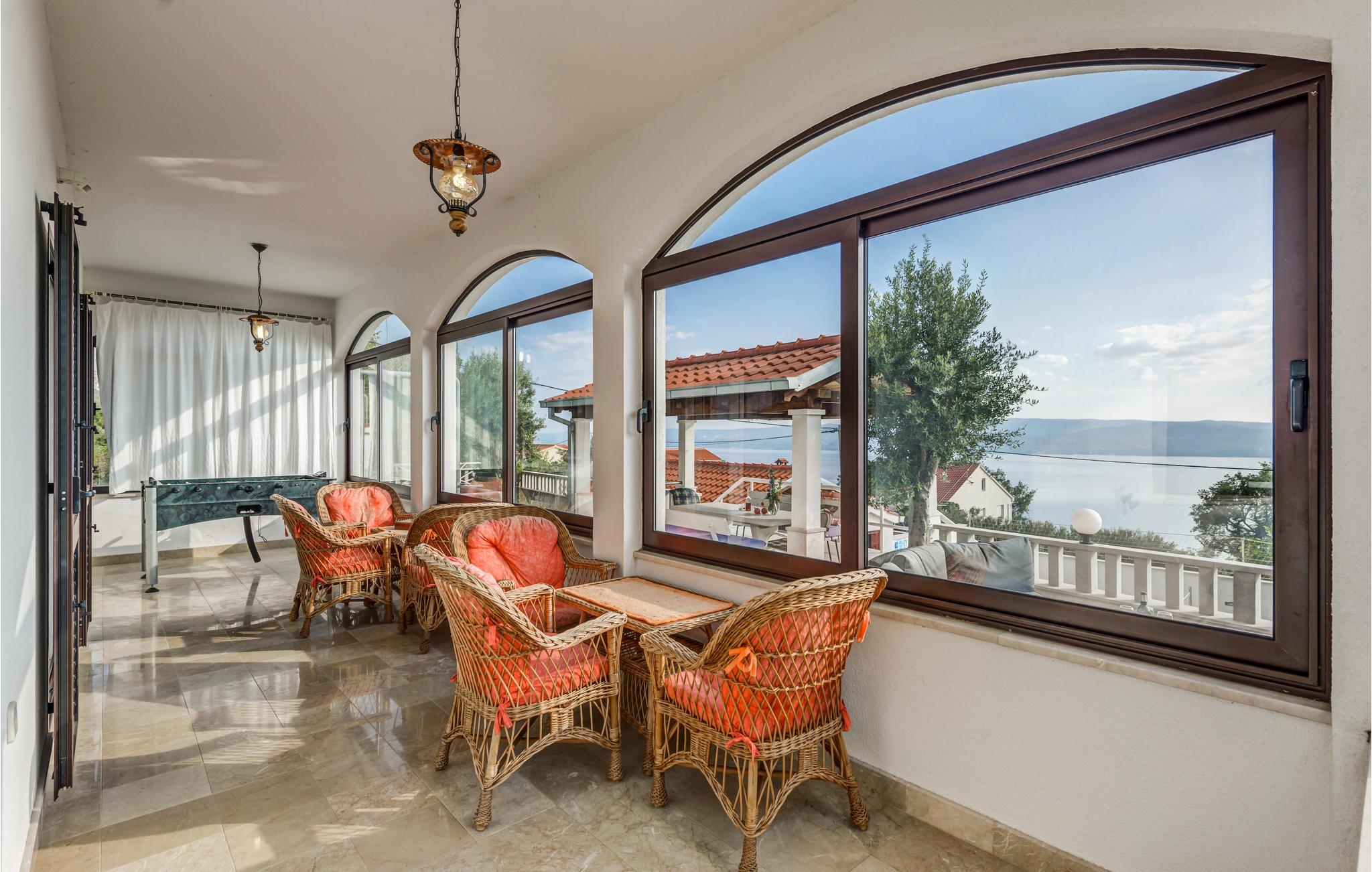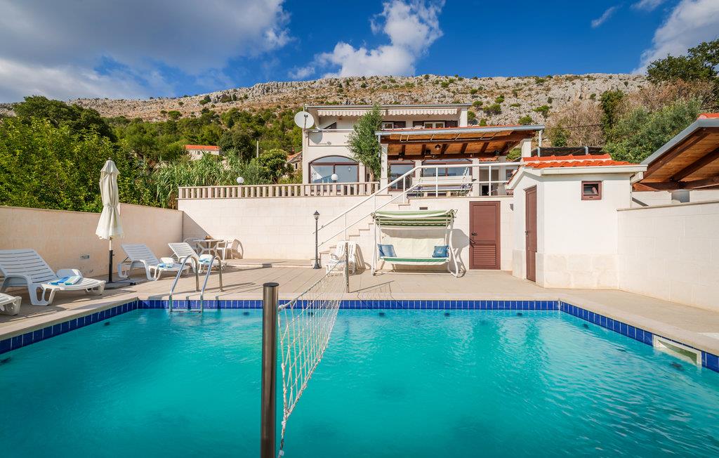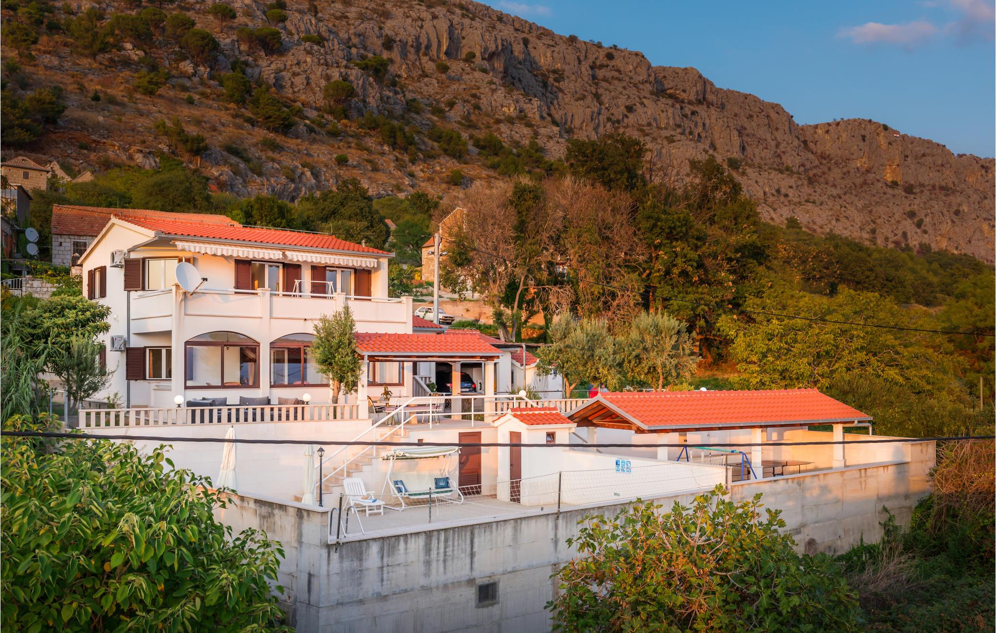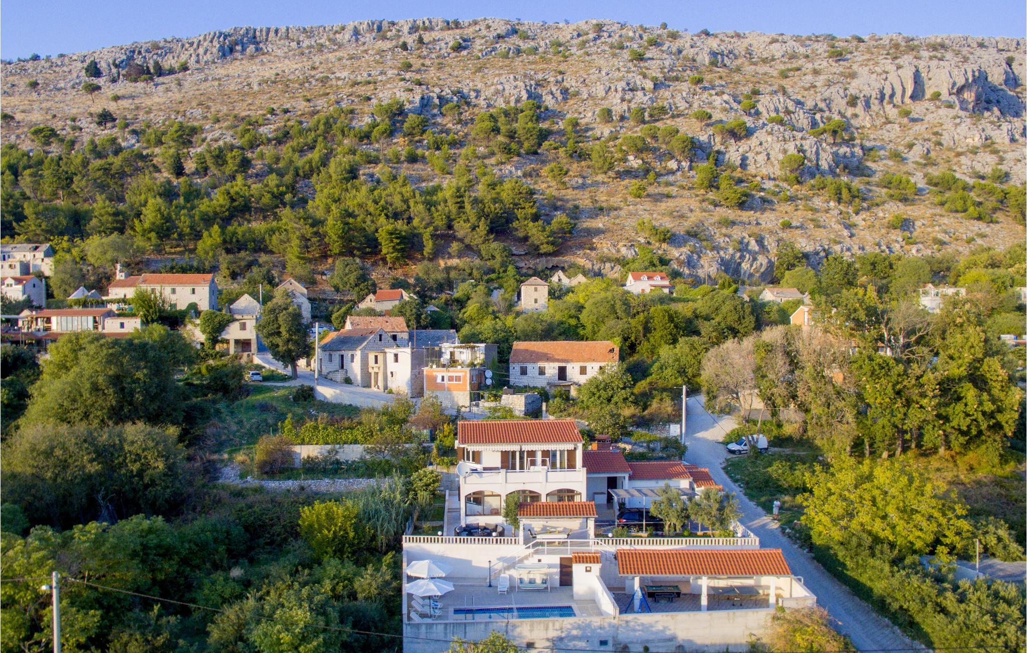 Dette smukke og godt indrettede feriehus på en lille indhegnet grund ligger lige ved foden af bjerget Masor på Omis' riviera. Huset er særdeles veludstyret og komfortabelt indrettet. Og det er ikke kun familien med børn, der vil føle sig godt tilpas her, for der er et væld af forskellige fritids- og underholdningsmuligheder med noget for enhver smag: bordtennis, billard, 2 cykler og det dalmatiske spil Balote, som er en kroatisk variant af Boccia. Konditionen kan I holde ved lige på kondicyklen. I swimmingpoolen, der er oplyst om aftenen, kan I på de romantiske aftener nyde forfriskende svømmeture. Fra altanen og poolterrassen åbenbarer sig en fantastisk udsigt til det omkringliggende kystlandskab - stedet er et ferieparadis par excellence. Den direkte udgang til havet er ikke nem, men med få minutter i bil kommer I til den skønneste kiselstrand. I området finder I et væld af gastronomiske tilbud.