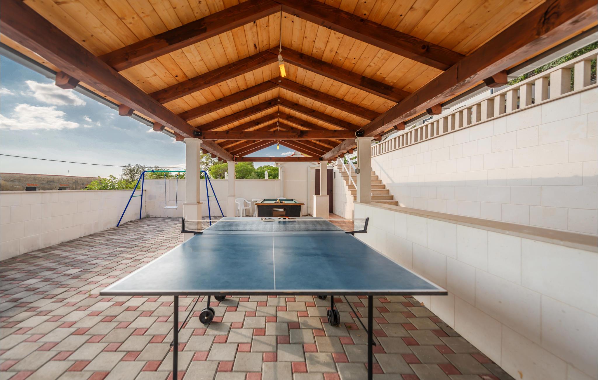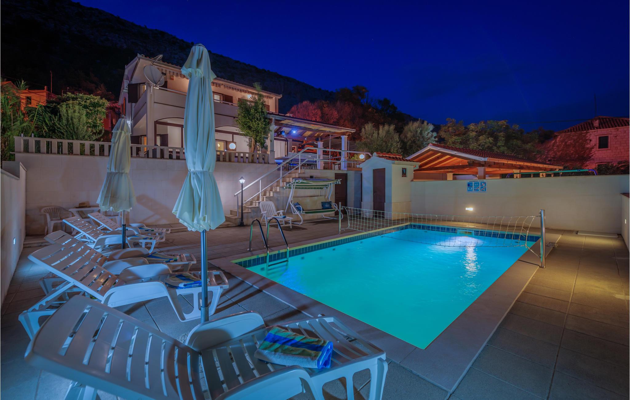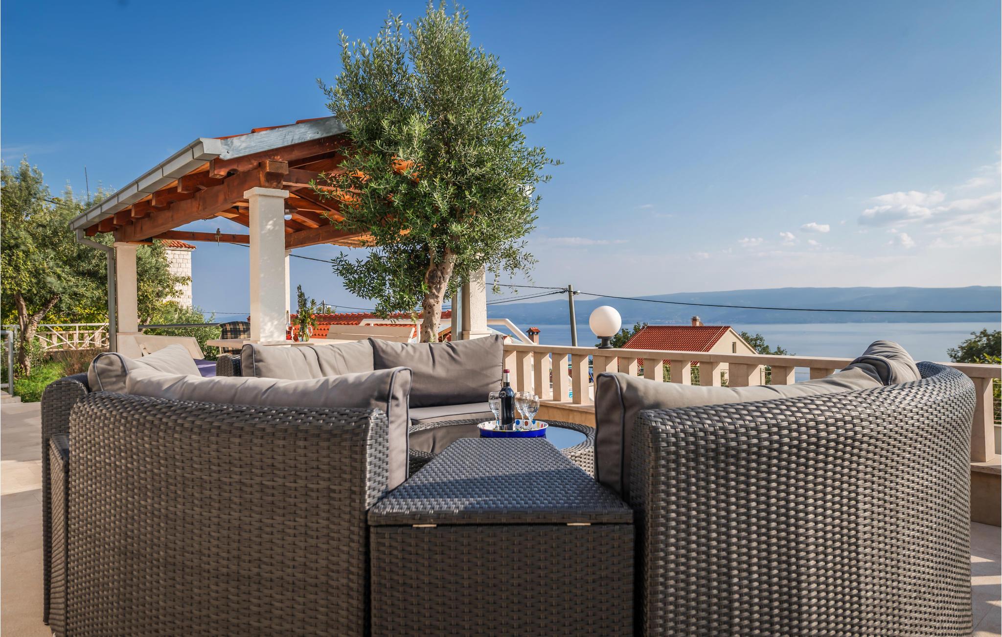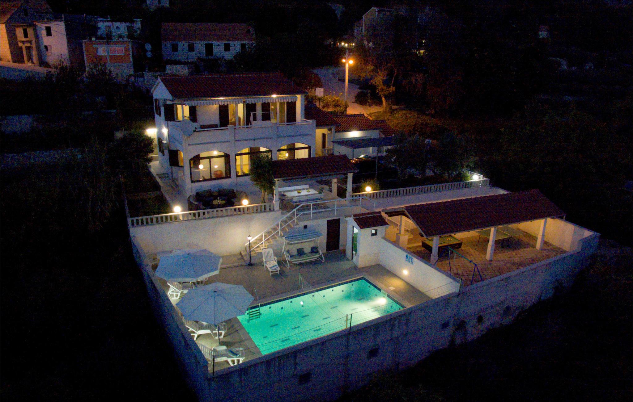 Dette smukke og godt indrettede feriehus på en lille indhegnet grund ligger lige ved foden af bjerget Masor på Omis' riviera. Huset er særdeles veludstyret og komfortabelt indrettet. Og det er ikke kun familien med børn, der vil føle sig godt tilpas her, for der er et væld af forskellige fritids- og underholdningsmuligheder med noget for enhver smag: bordtennis, billard, 2 cykler og det dalmatiske spil Balote, som er en kroatisk variant af Boccia. Konditionen kan I holde ved lige på kondicyklen. I swimmingpoolen, der er oplyst om aftenen, kan I på de romantiske aftener nyde forfriskende svømmeture. Fra altanen og poolterrassen åbenbarer sig en fantastisk udsigt til det omkringliggende kystlandskab - stedet er et ferieparadis par excellence. Den direkte udgang til havet er ikke nem, men med få minutter i bil kommer I til den skønneste kiselstrand. I området finder I et væld af gastronomiske tilbud.