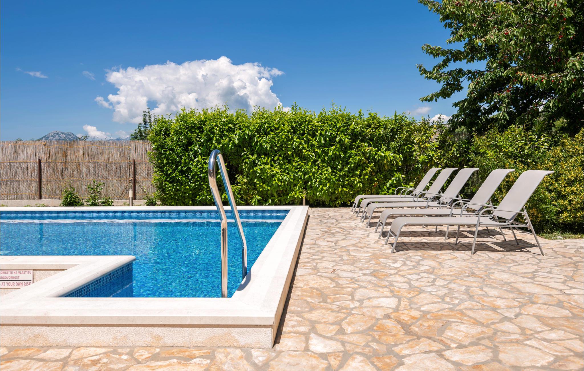 Dette dejlige feriehus ligger i den lille by Katuni, i Omis bagland og huset er fordelt på to boligenheder forbundet med en indre trappe. Huset ligger i en skøn have med planter og blomster. Foran huset ligger den luksuøse swimmingpool, en overdækket terrasse med grill og legetøj, hvor I kan slappe af og nyde ferielivet. Den kendte canyon med floden Cetina, kiesstrand og restaurant ligger blot to km væk. Her kan I prøve at rafte og sejle kano. På kun en halv time i bil kommer I til de skønne strande ved Omis riviera. Lad sjælen tage på langfart i dette naturparadis.