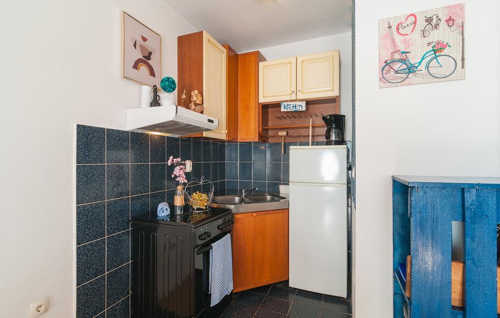 Den er enkelt og komfortabelt indrettet til jeres ferie, hvor I kan glemme alt om hverdagen derhjemme. Lejligheden ligger på øverste etage og har en separat indgang. En gangsti og trapper fører jer til de smukke, små kiesstrande. Fodgængtunnelen fører jer under kystvejen, der adskiller byen fra stranden.