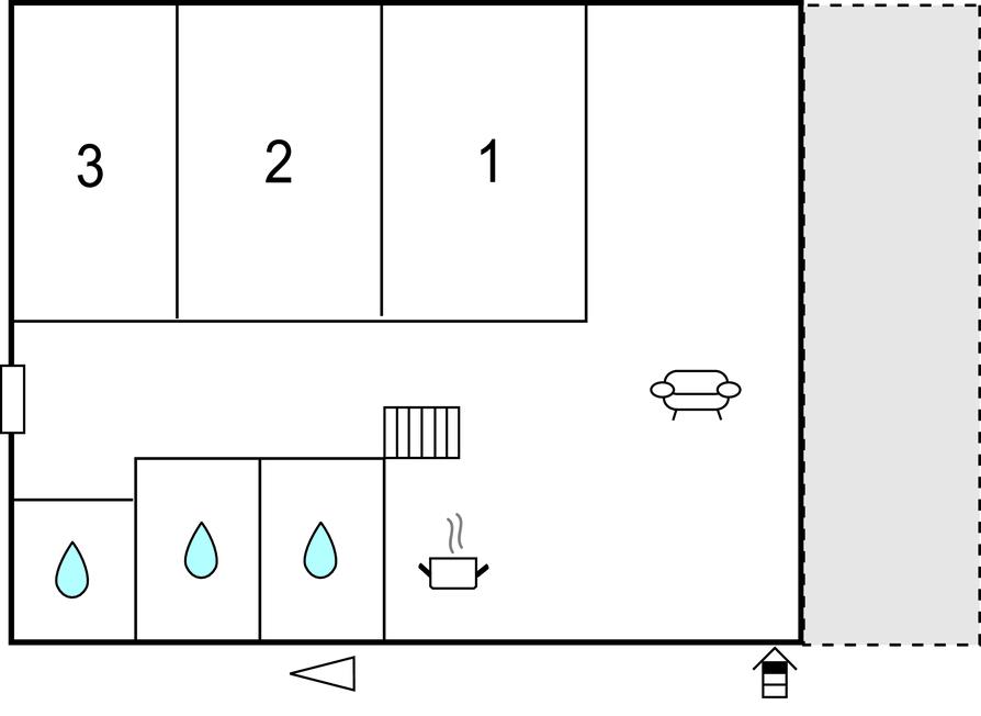 Soveværelse (nr. 3) - 2 Sovepladser. (Dobbeltseng(e)). 1 Soveplads. (Sofa, madras eller lignende).
