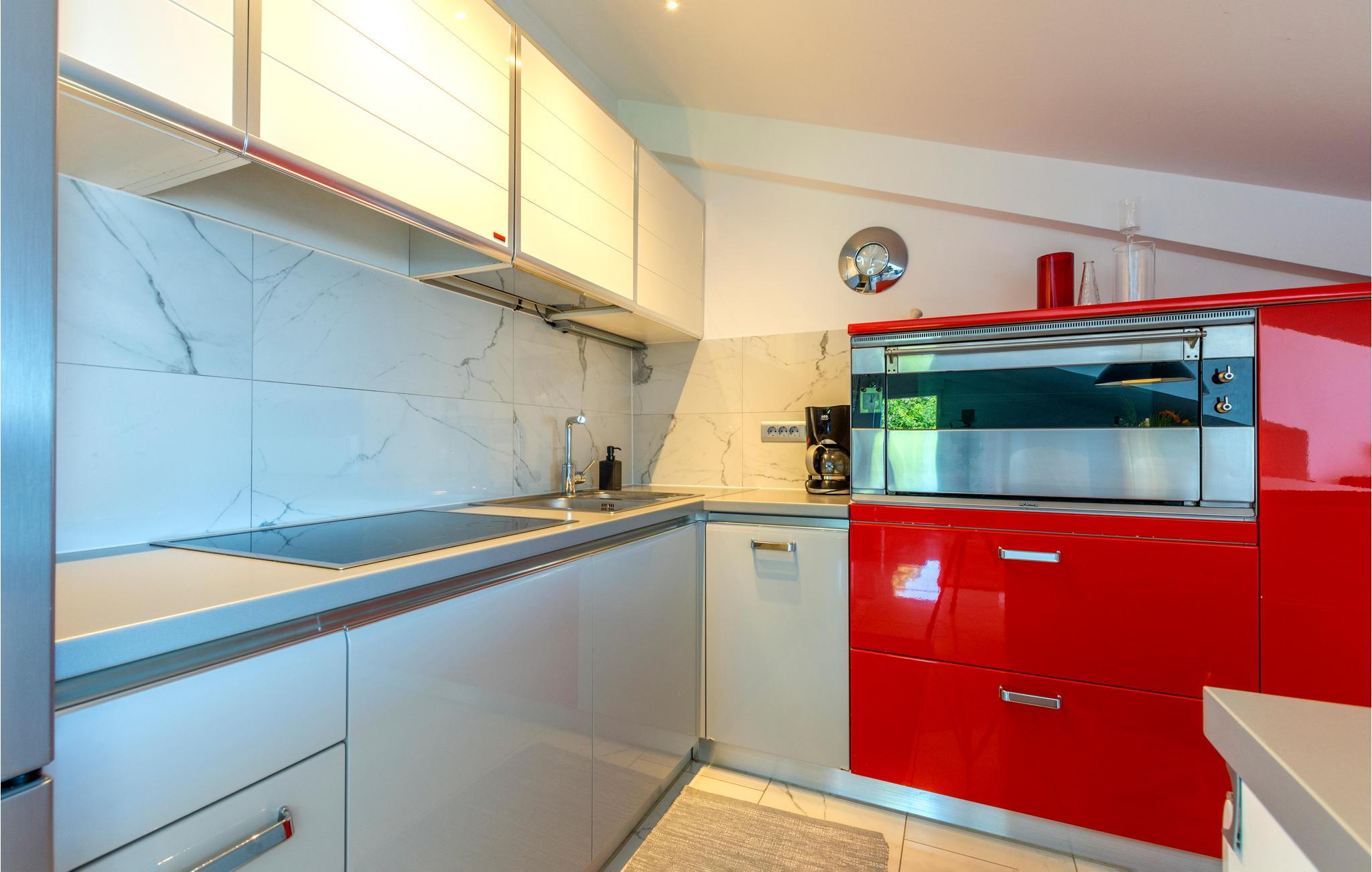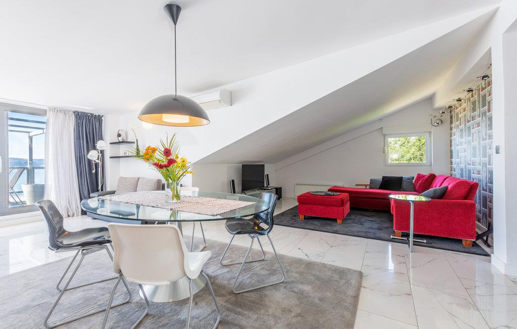 Moderne og smagfuldt møbleret loftslejlighed (6. sal, laveste lofthøjde 1 m) på den attraktive Omis Riviera.