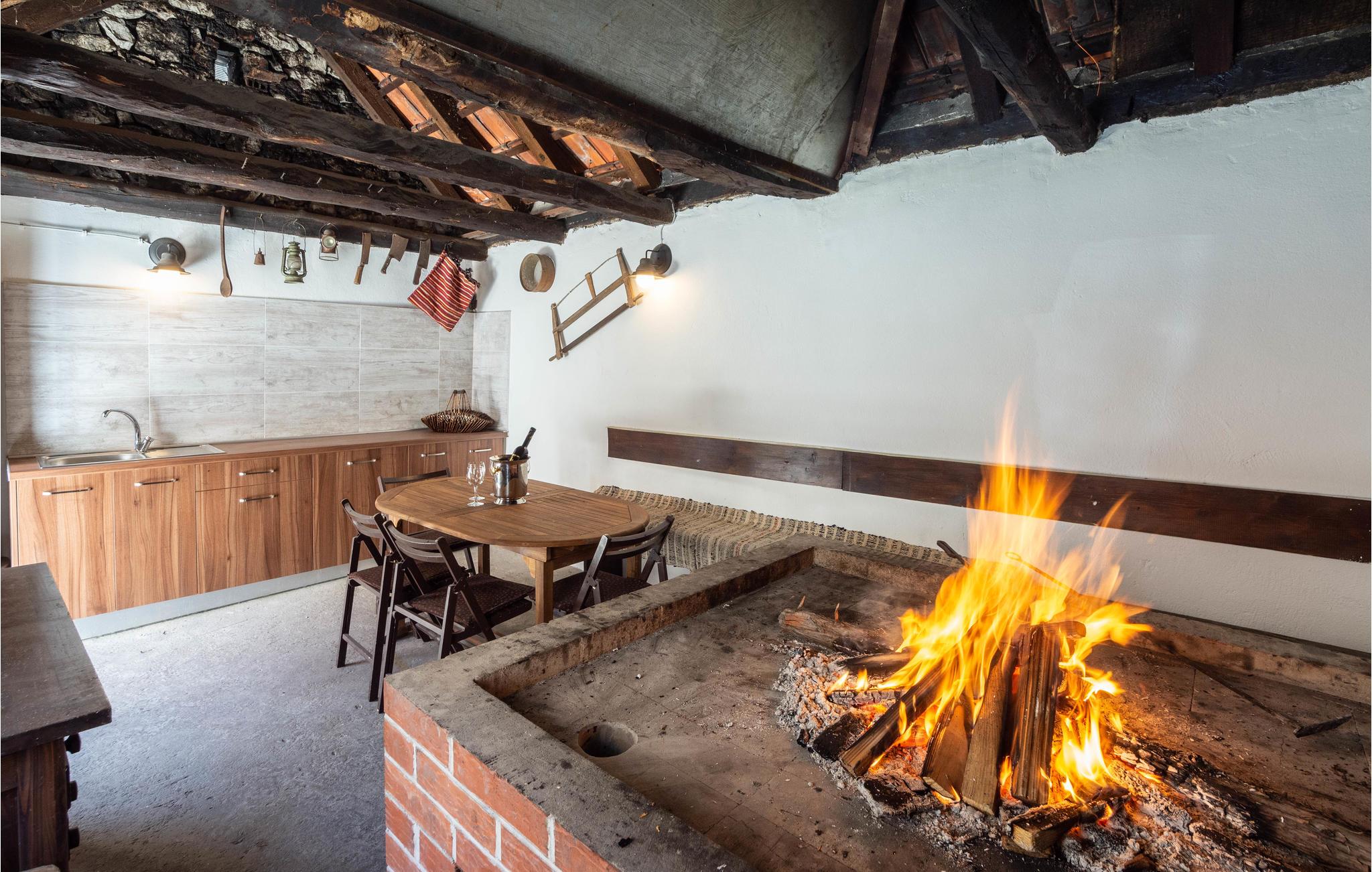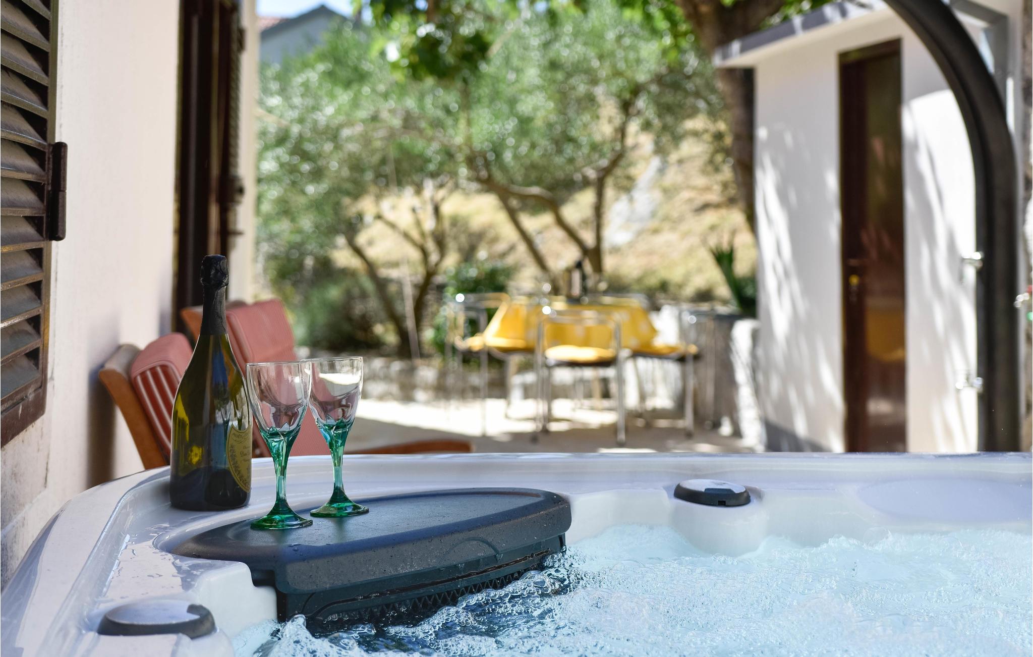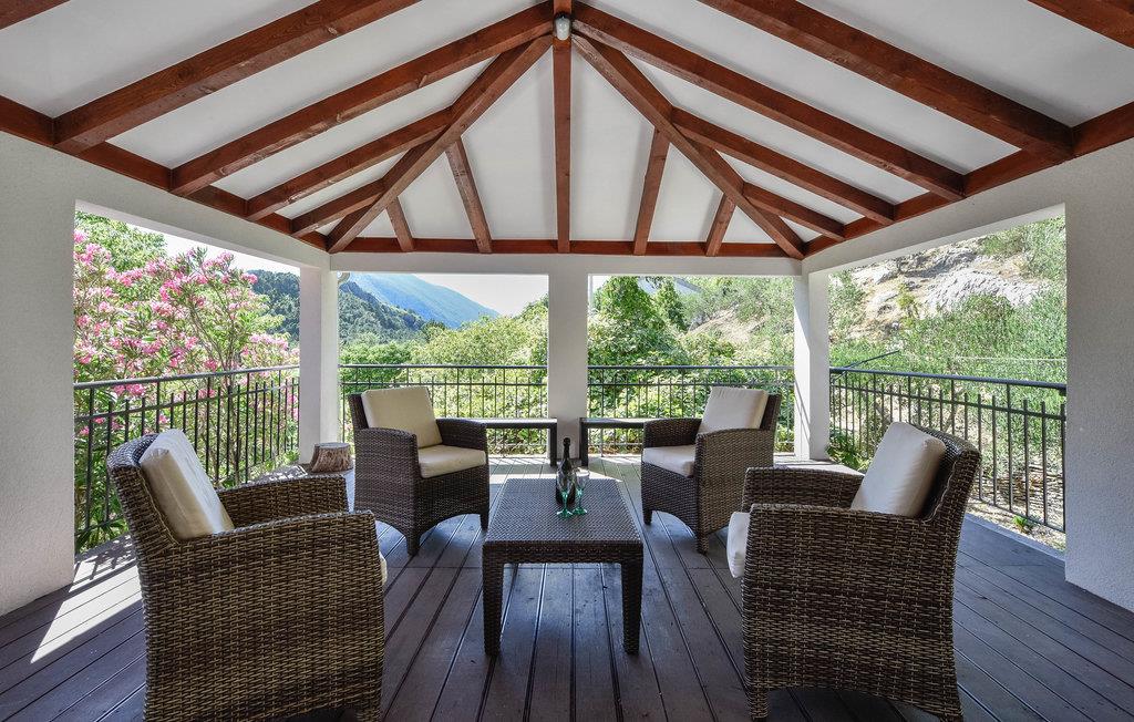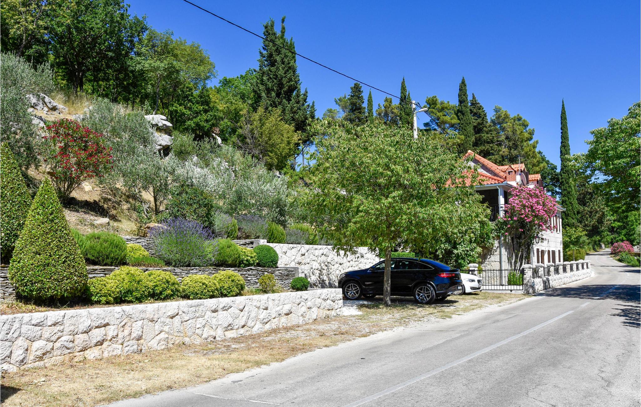 Det ligger ca. 12 km fra Omiš og ca. 35 km fra Makarska og Split. Terrassen bag huset er udstyret med boblebad og sommerkøkken. Huset består i stueetagen af et køkken og spiseplads, der er forbundet med den dalmatiske "Konoba" og et badeværelse. 4 soveværelser, badeværelse og stue er på 1. sal. På loftet er der en hems med en dobbeltseng.